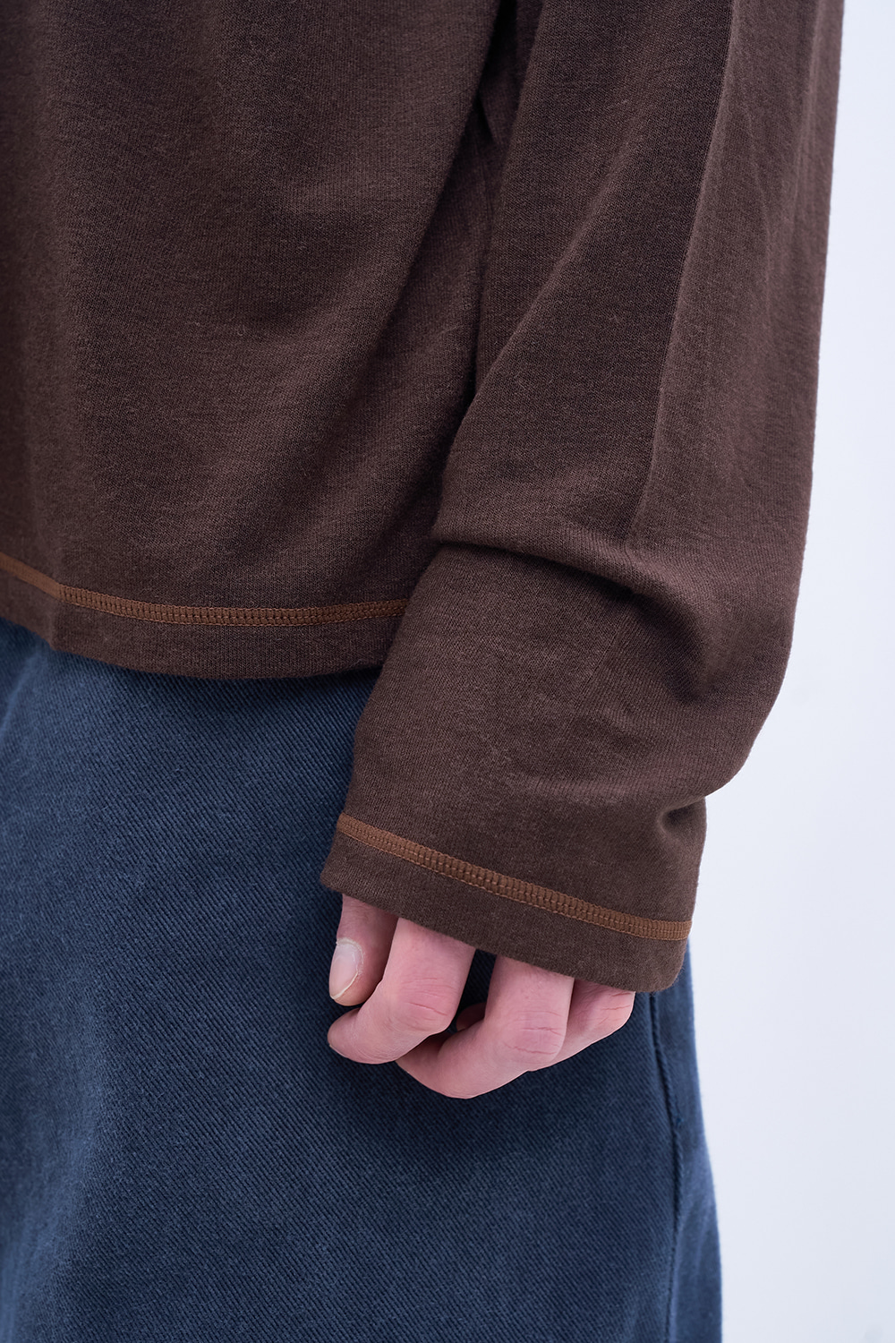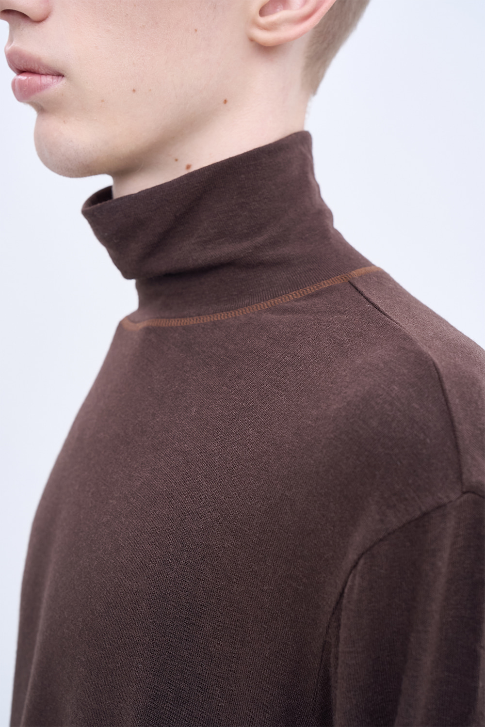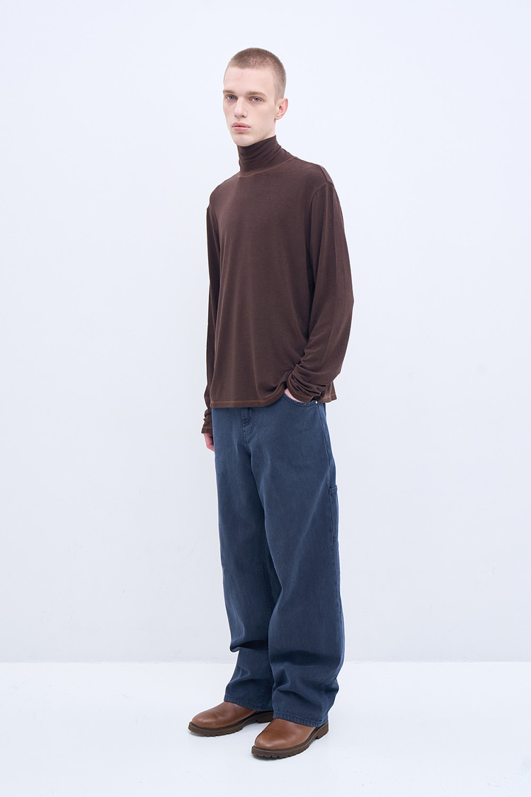 겨울철 레이어링을 위한 실용적이면서 세련된 터틀넥 티셔츠. 포근하고 부드러운 울 혼방 저지 소재로 전하는 유연한 착용감. 절제된 대비 효과로 표현된 스티치 디테일이 은은한 포인트를 형성. 기능과 감성을 모두 갖춘 균형 잡힌 겨울 시즌 베이스웨어.