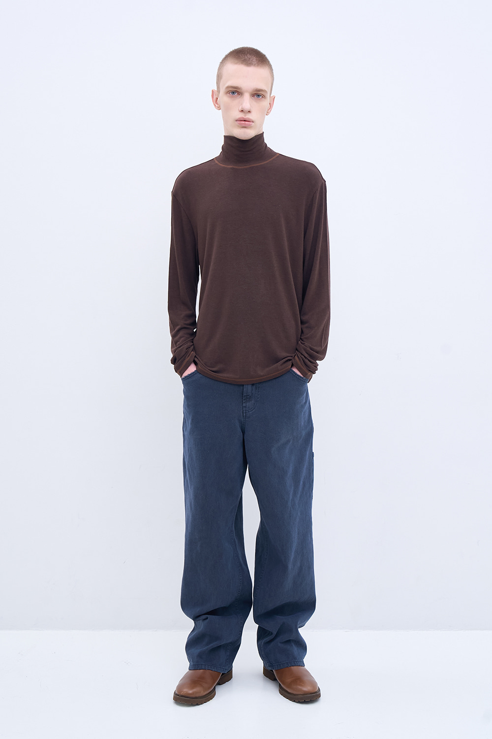 시그니처 울 블렌디드 터틀넥 브라운