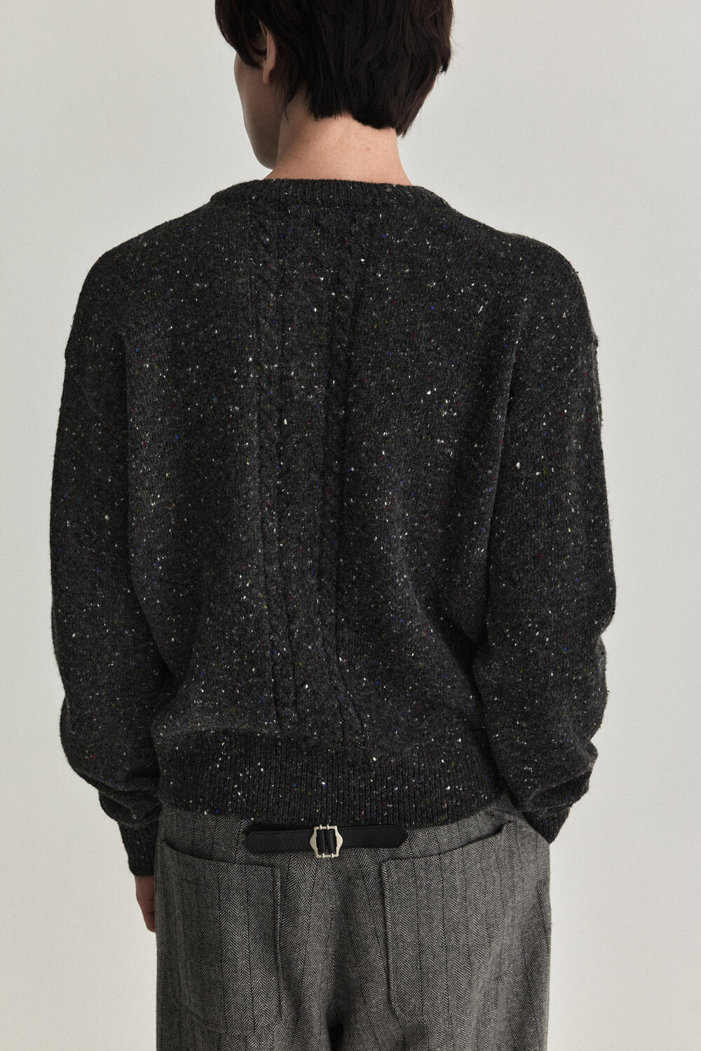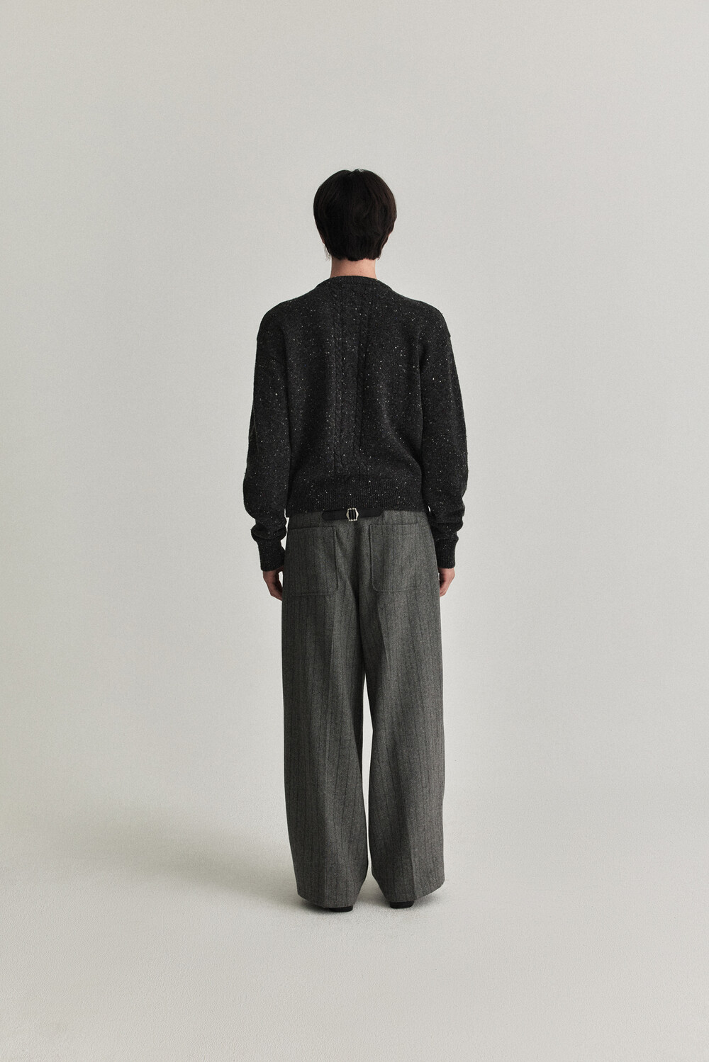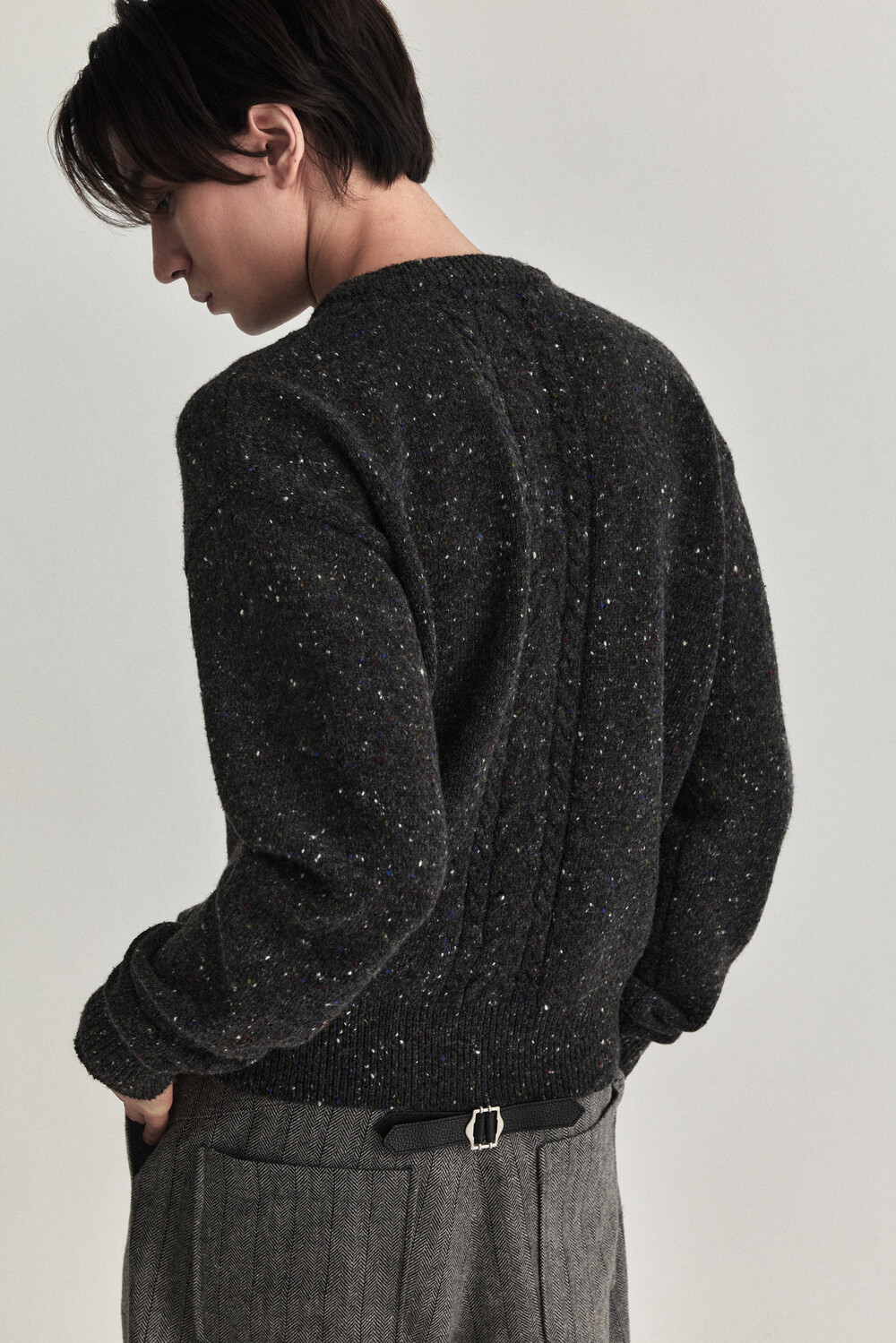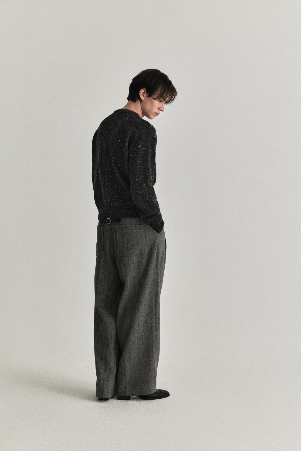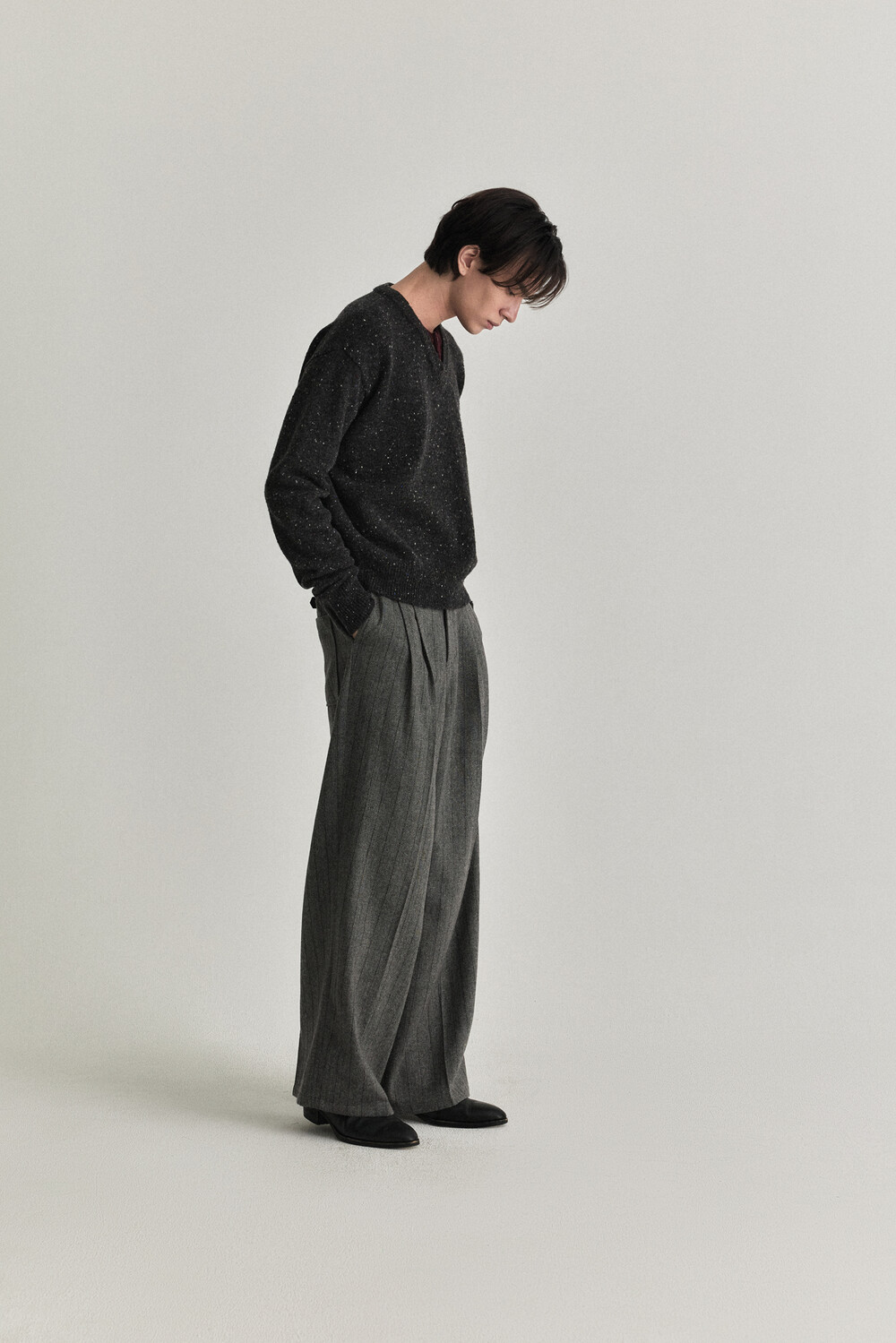 - 울 혼용 니트 패브릭으로 제작된 헨리넥 레이어드 브이넥 디자인