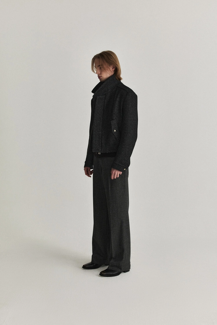 [WAVINESS] High Neck Collar Jacket - Black