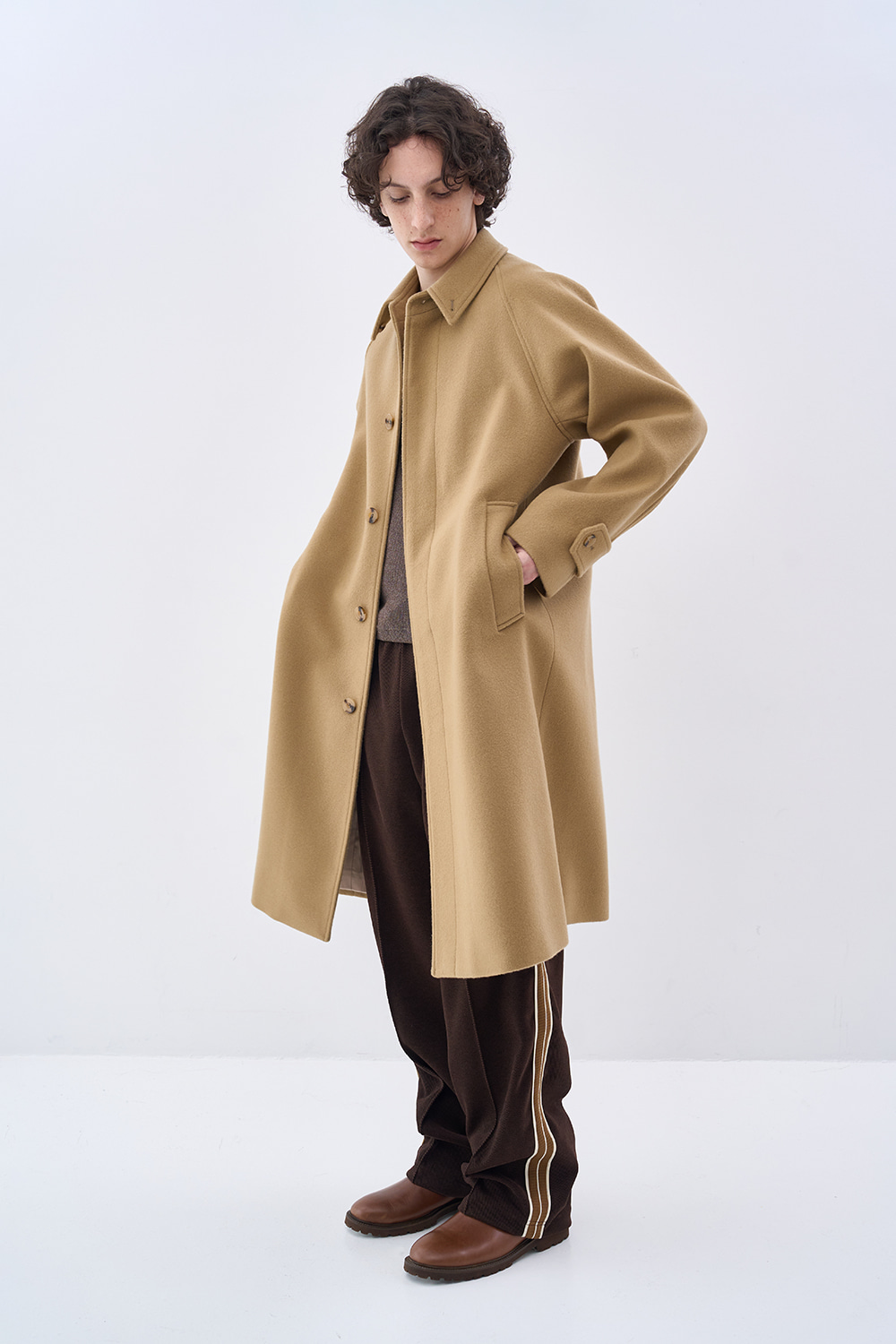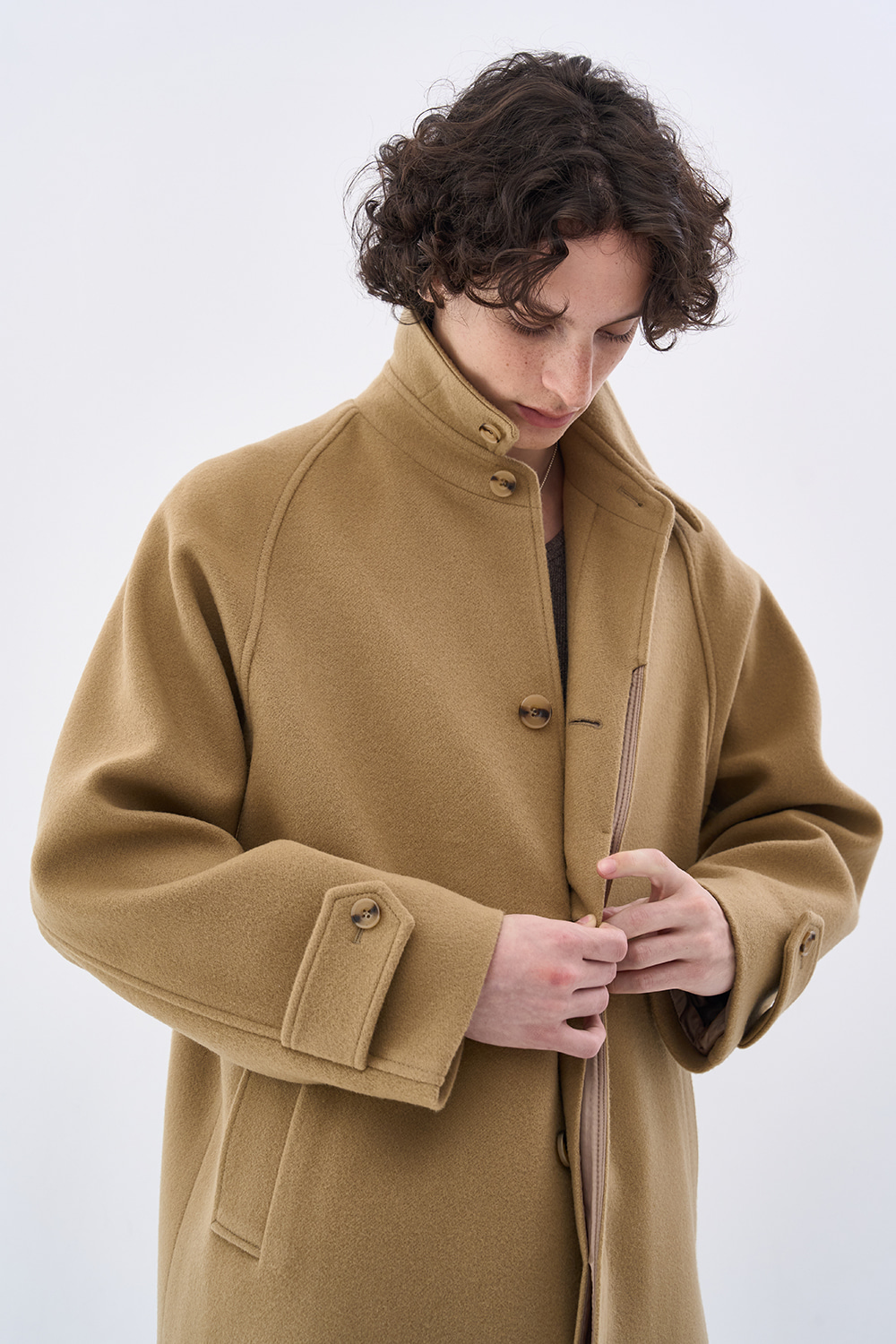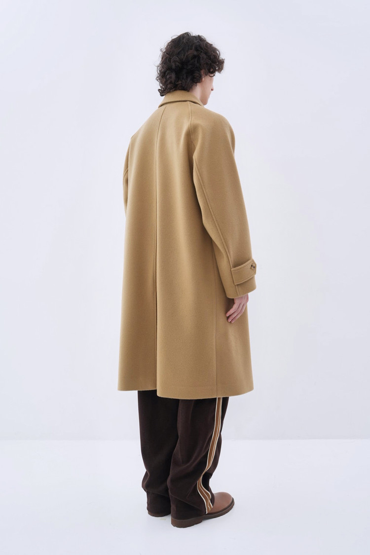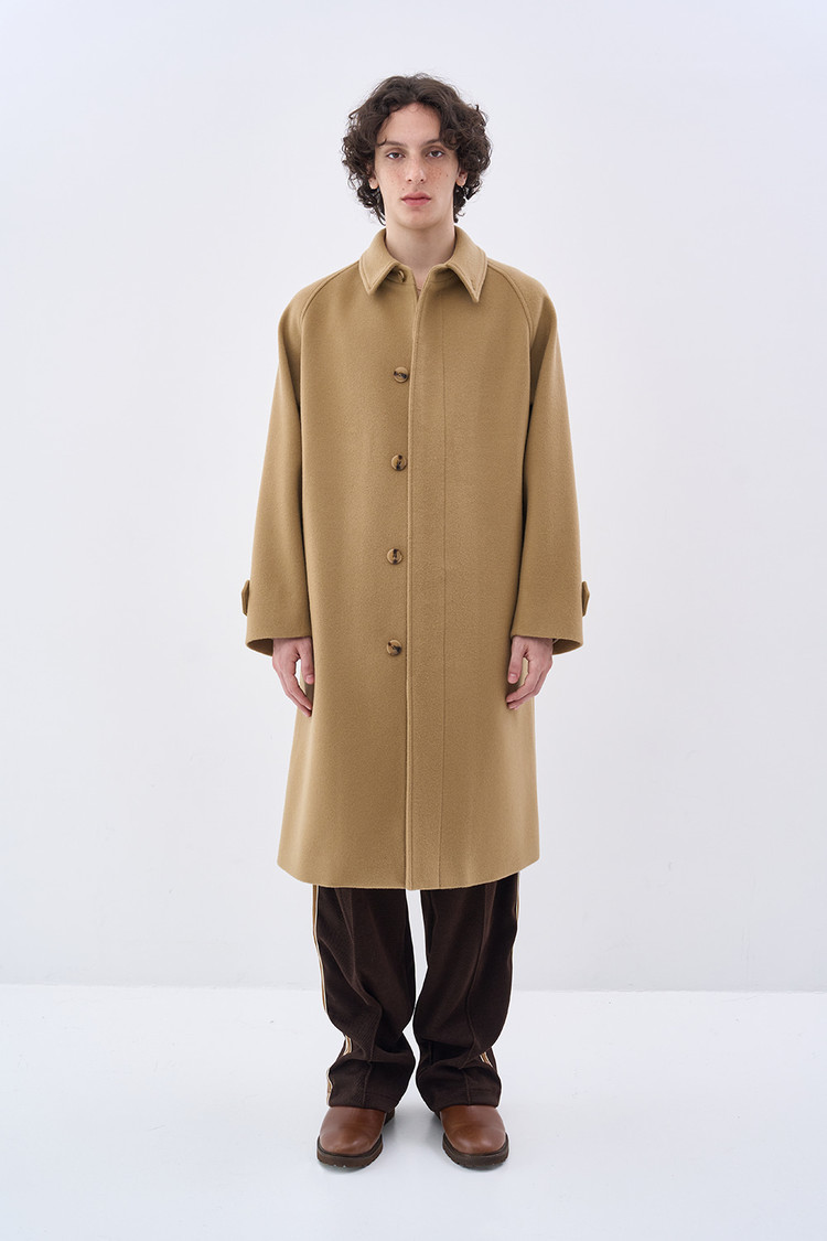 새롭게 선보이는 버진 울 소재의 발마칸 싱글 코트. 부드러운 터치감이 특징인 호주산 22oz 버진 울(대광社) 원단 사용. 스웨덴산 펄프 원료의 VISTER社 안감으로 더한 고급스러운 구성. 래글런 슬리브와 자연스럽게 떨어지는 A라인 실루엣. 밴드 칼라와 넓은 비율의 웰트 포켓으로 완성한 미니멀한 무드.