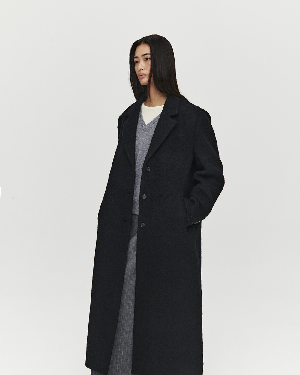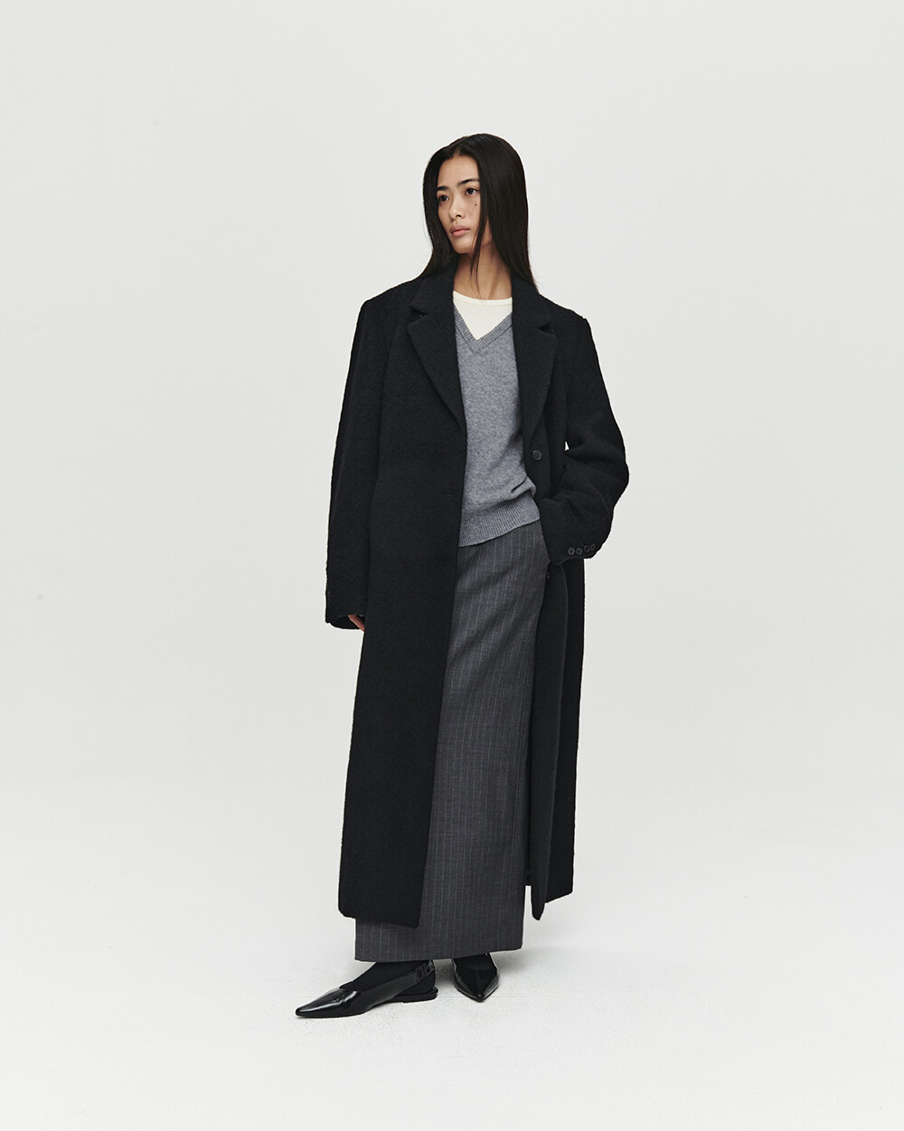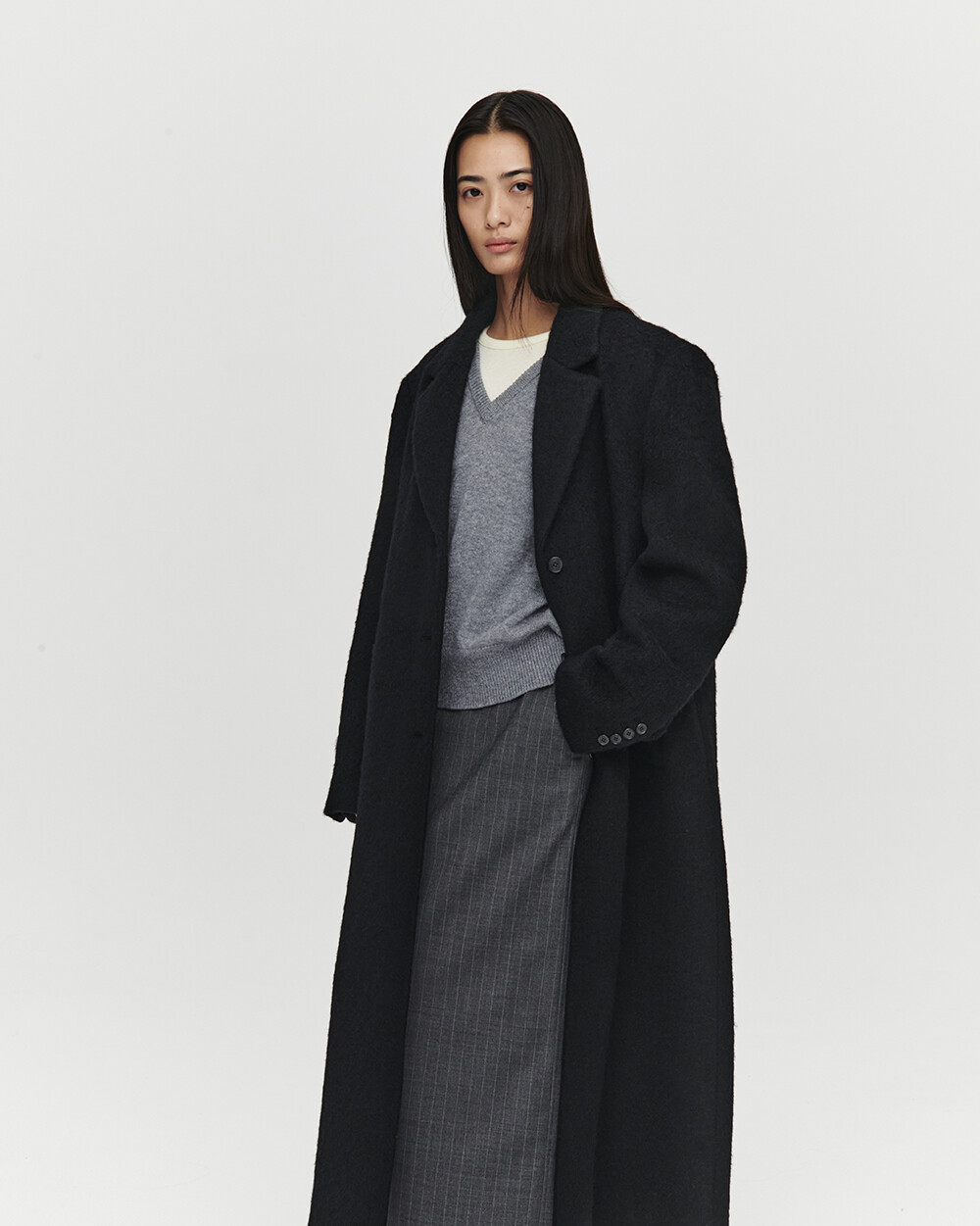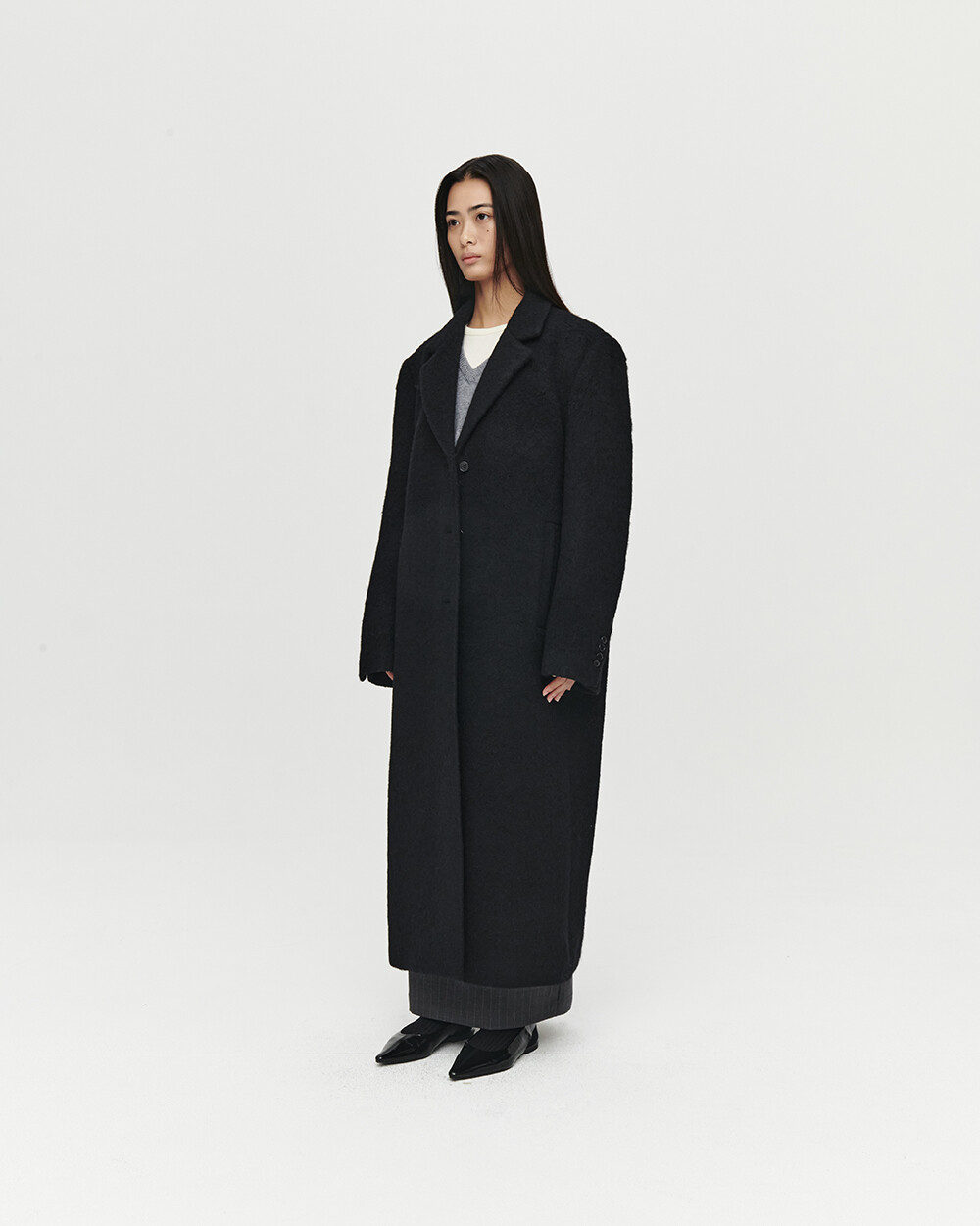 - 여유로운 실루엣의 롱 코트
