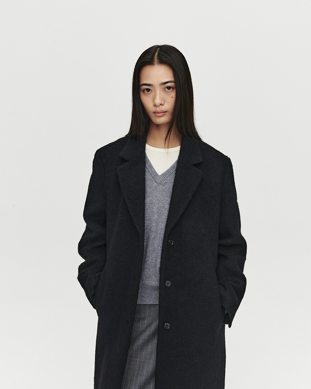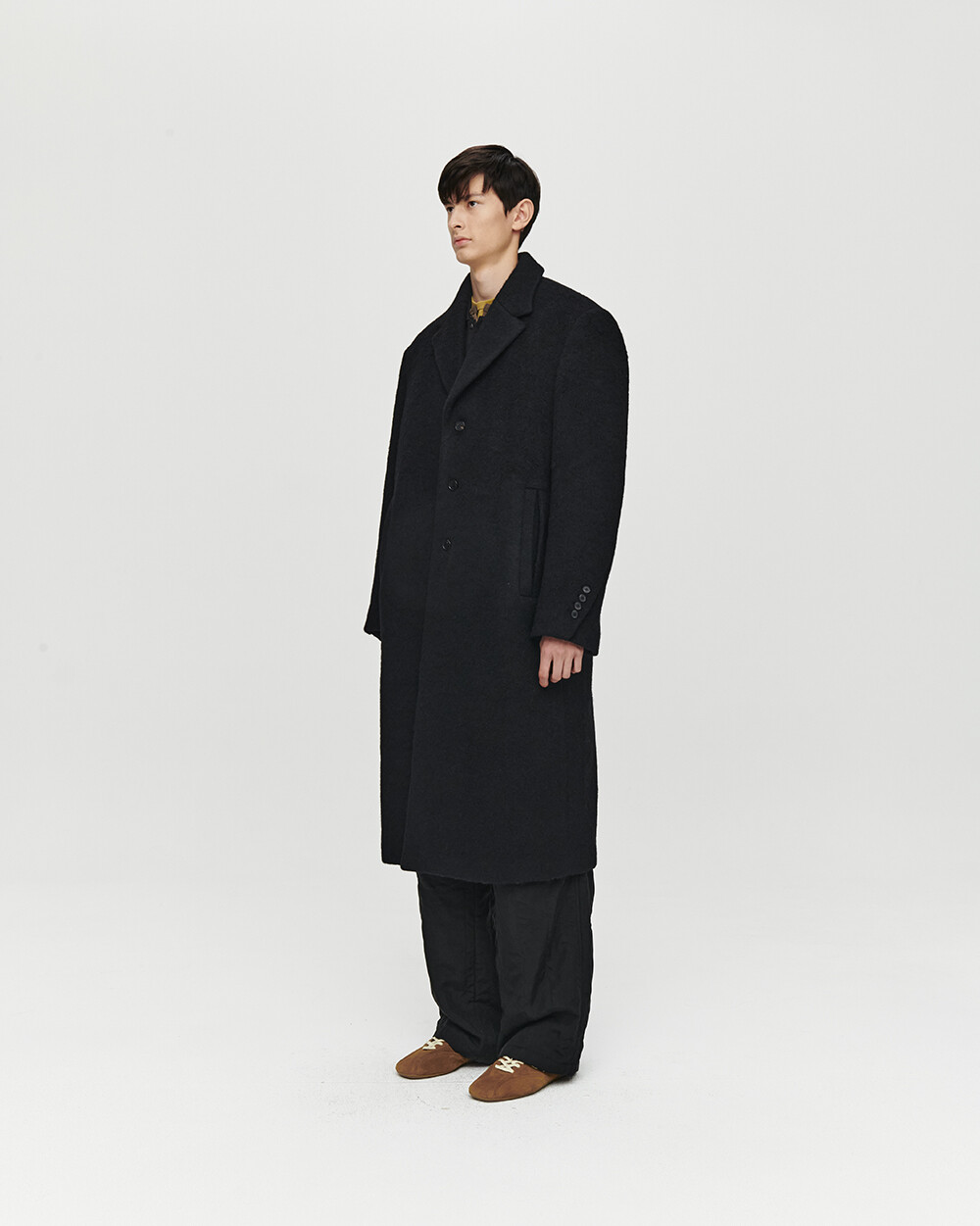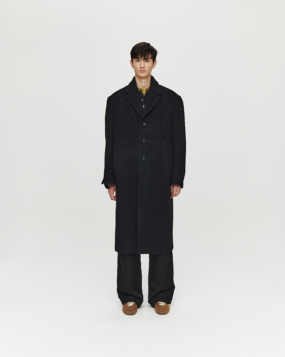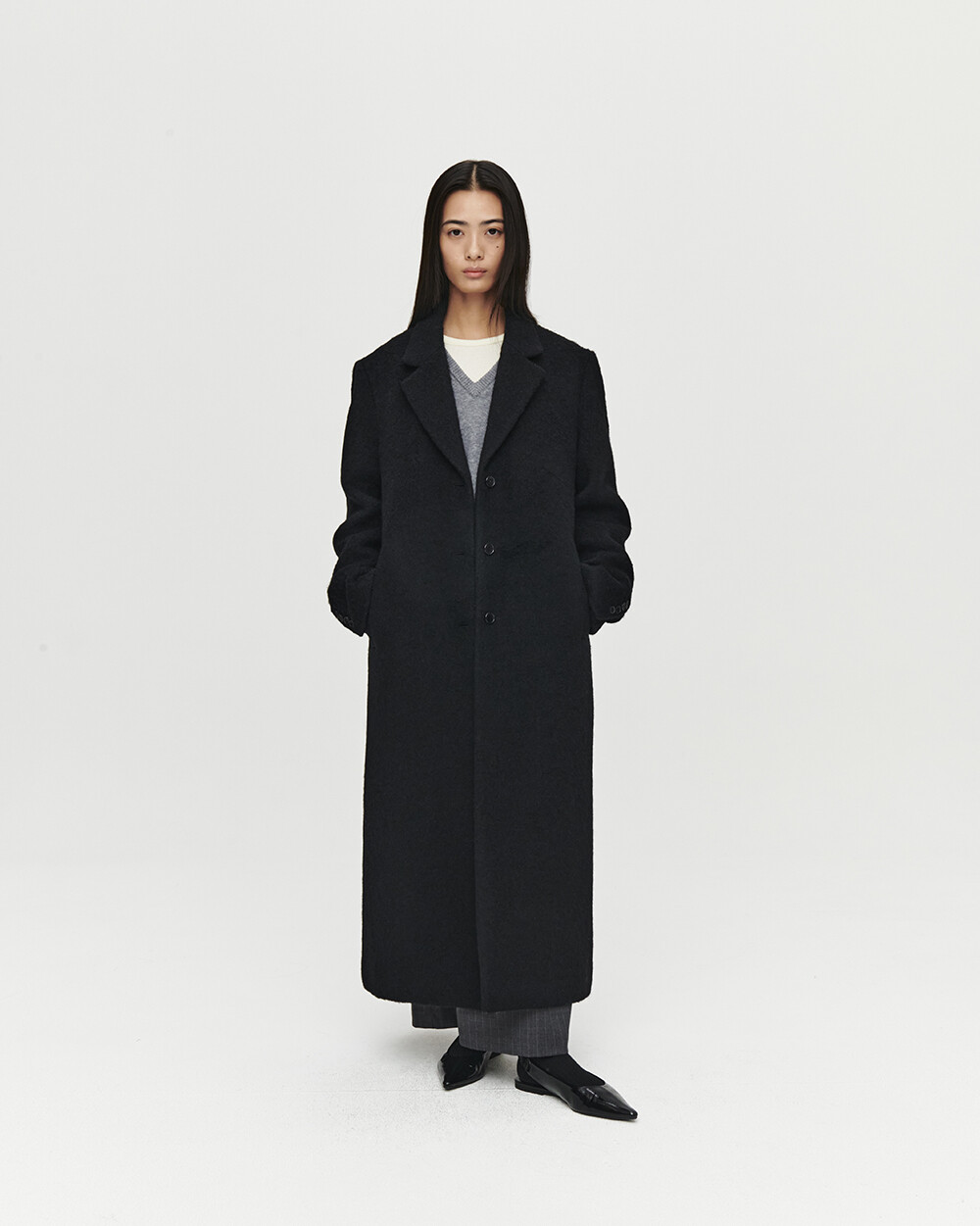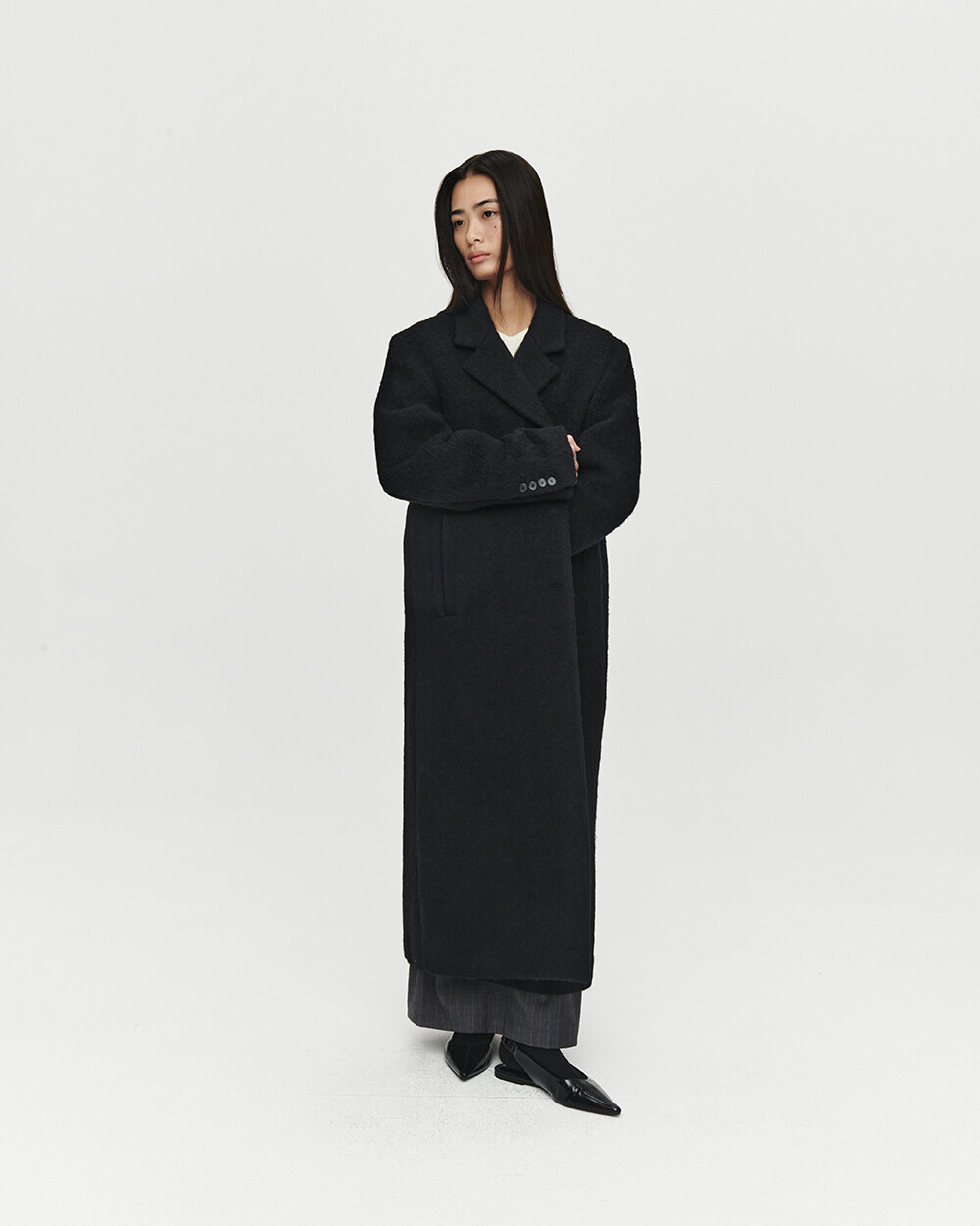 - 여유로운 실루엣의 롱 코트