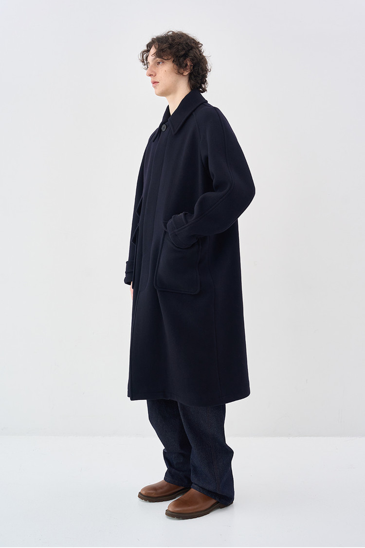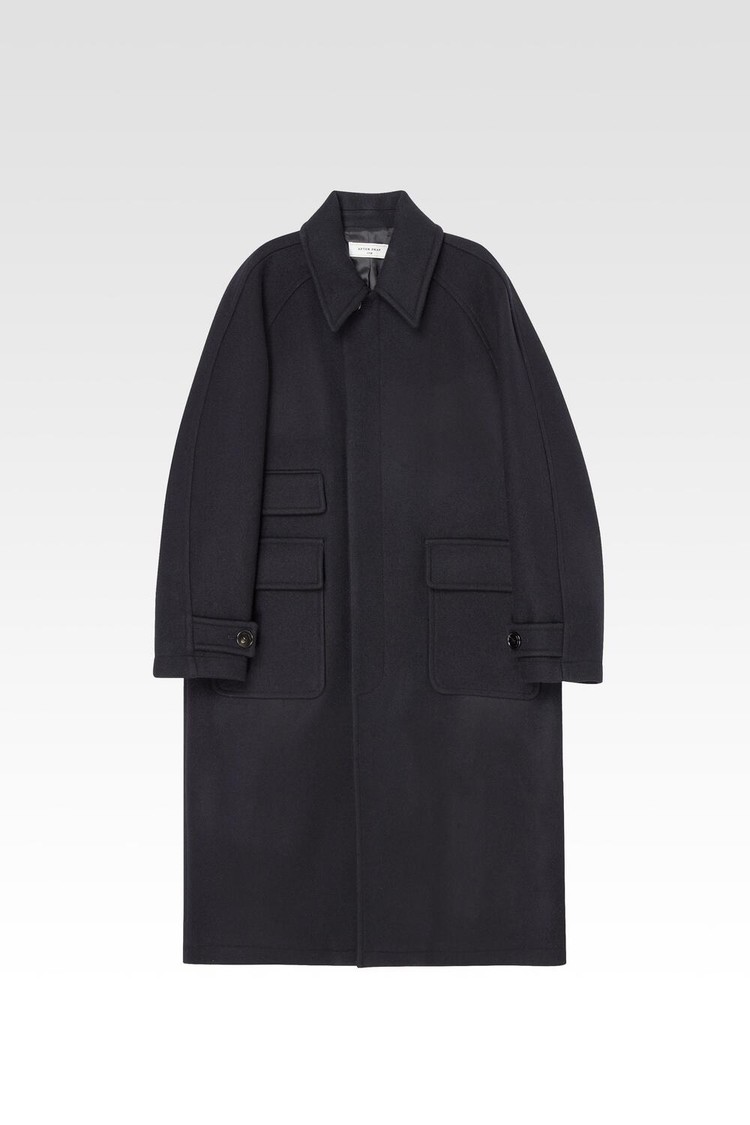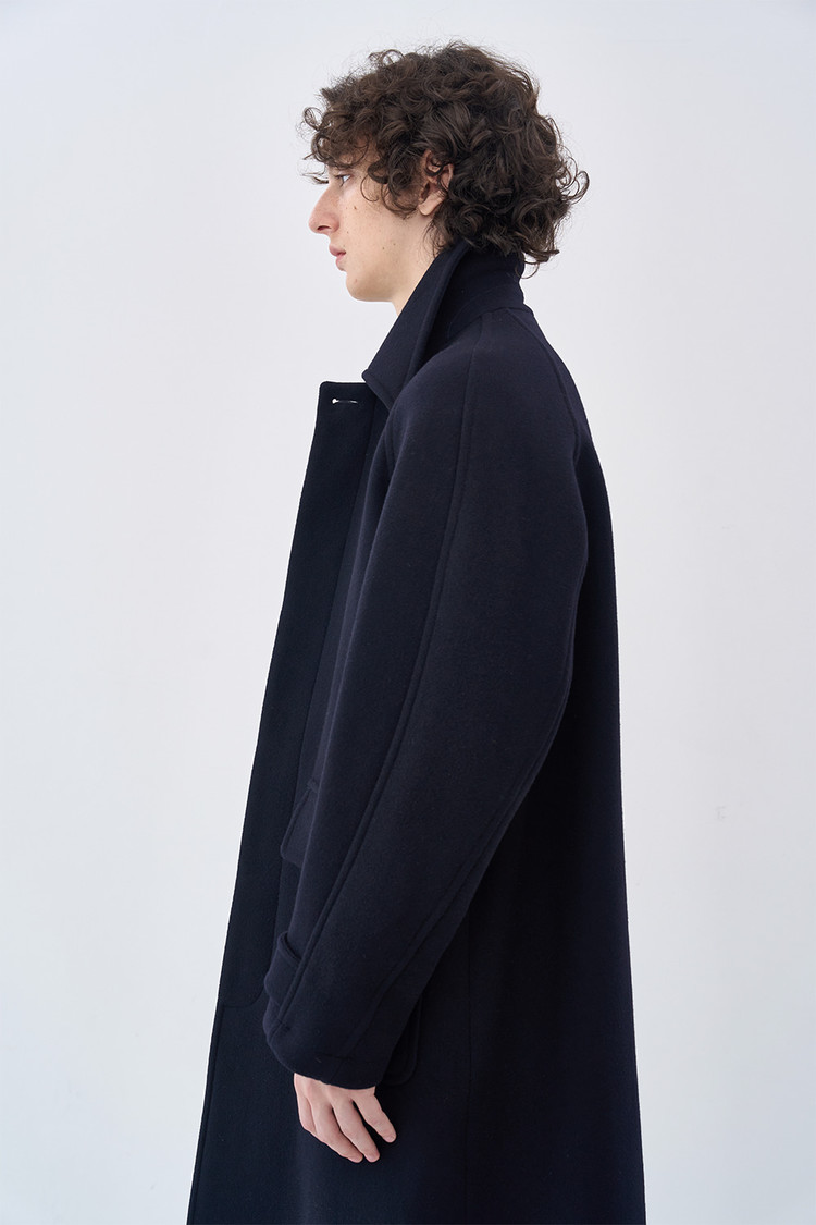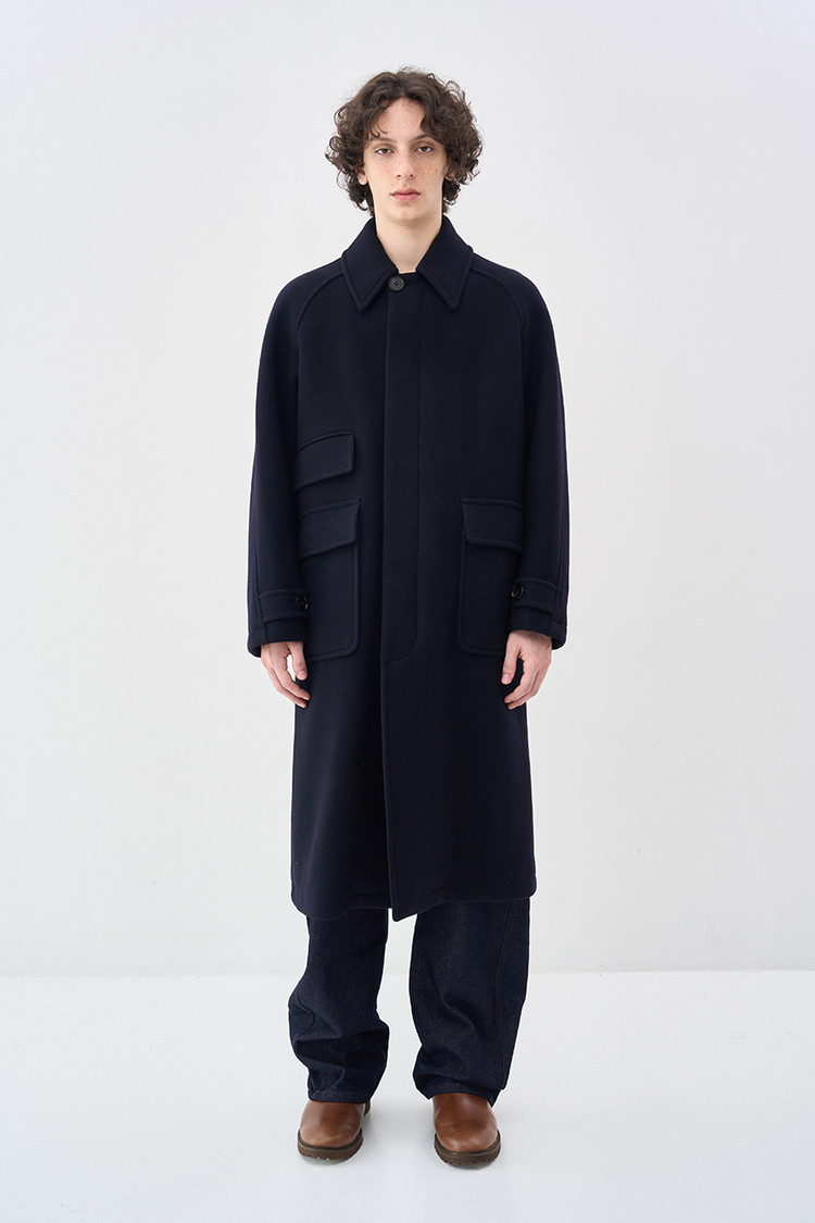 호주산 메리노 울로 직조한 이중 펠트 소재가 전하는 탄탄한 밀도와 우수한 내구성. 애프터프레이가 독자적으로 개발한 인체공학적 래글런 패턴이 그려내는 유려한 숄더 라인. 전면 아웃 포켓과 티켓 포켓이 제공하는 실용적인 수납 구조. 싱글 벤트로 마감된 후면 디테일이 완성하는 여유로운 보폭과 자연스러운 드레이프. 브랜드 로고가 각인된 소뿔 버튼으로 마무리되는 절제된 포인트. 캐주얼한 룩에도 자유롭게 녹아드는, 시간을 초월한 시그니처 코트.