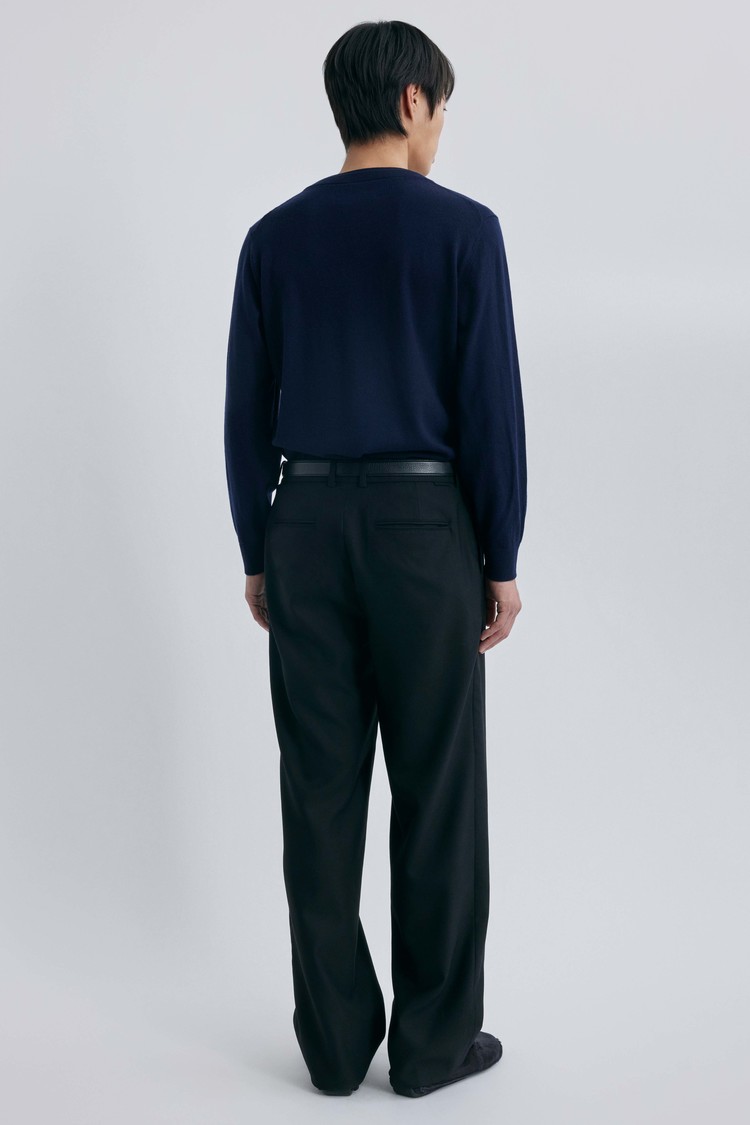 울의 포근함과 코튼의 산뜻함을 50:50 비율로 담아낸 혼방 소재입니다. 원사에 머서라이즈 가공(Mercerized)을 더해 울 특유의 거친 느낌 없이 실크처럼 매끄럽고 부드러운 터치를 구현했습니다. 은은하게 감도는 고급스러운 광택과 정제된 표면감이 특징이며, 체온을 온화하게 유지하면서도 통기성이 우수해 간절기부터 겨울까지 쾌적하게 착용할 수 있습니다. 고급 니트 봉제 방식인 사시 작업을 통해 이음새까지 정교하고 편안하게 마감했습니다.