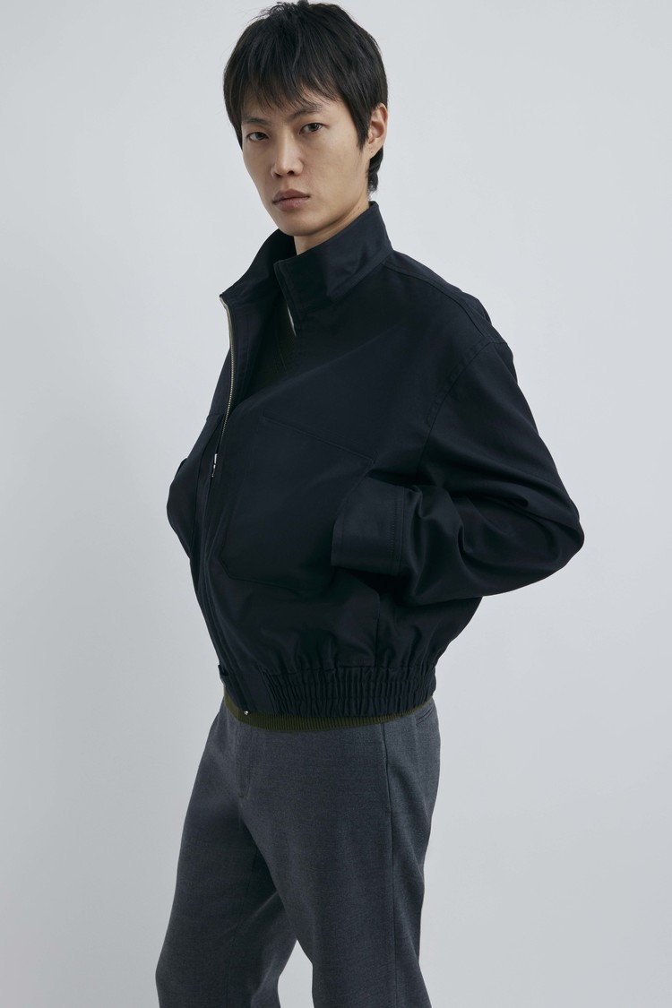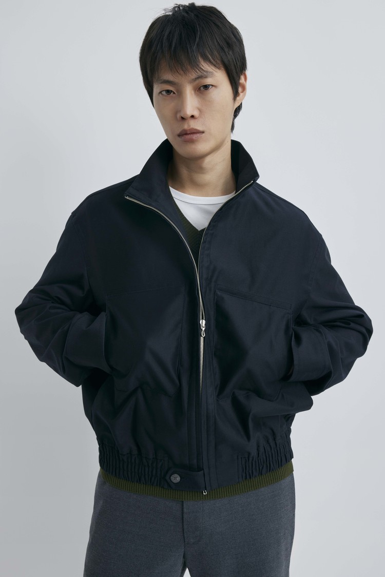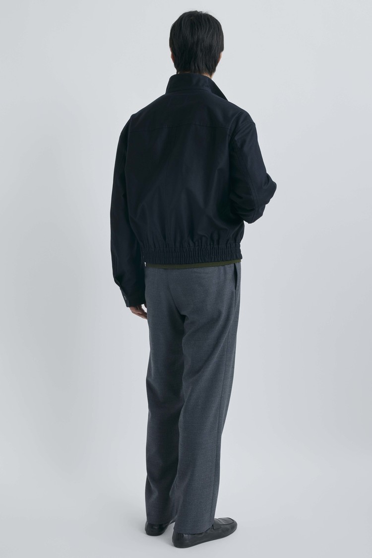 은은한 광택이 감도는 고밀도 코튼 소재로 완성한 하이넥 블루종입니다. 캐주얼한 아이템이지만 표면이 깔끔하게 정돈된 소재를 사용해 전체적인 인상이 단정하고 세련되게 느껴집니다. 크롭된 기장감과 간결한 실루엣이 어우러져 기존의 캐주얼 점퍼보다 한층 정제된 분위기를 연출하며, 하이넥 디자인과 전면 사각 포켓 디테일이 균형 잡힌 포인트를 더합니다. 포터리의 슬랙스와도 자연스럽게 어우러지는 범용성 높은 자켓입니다.