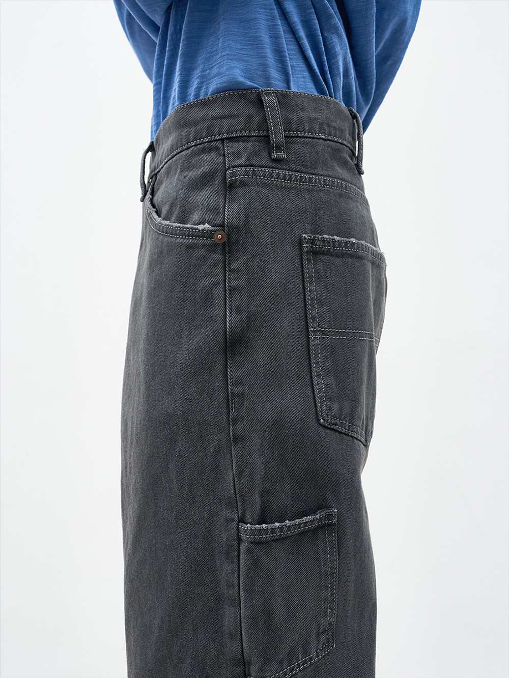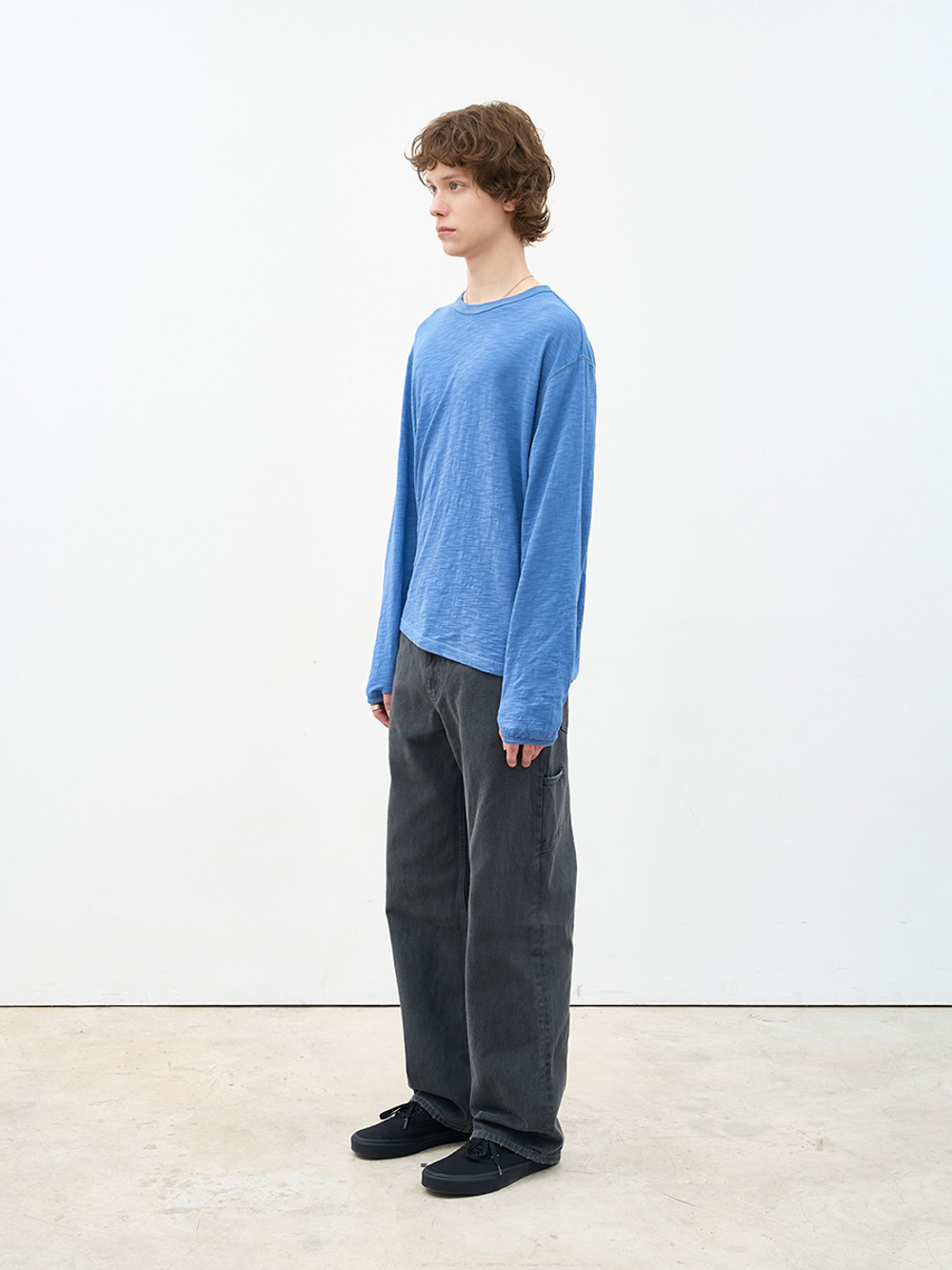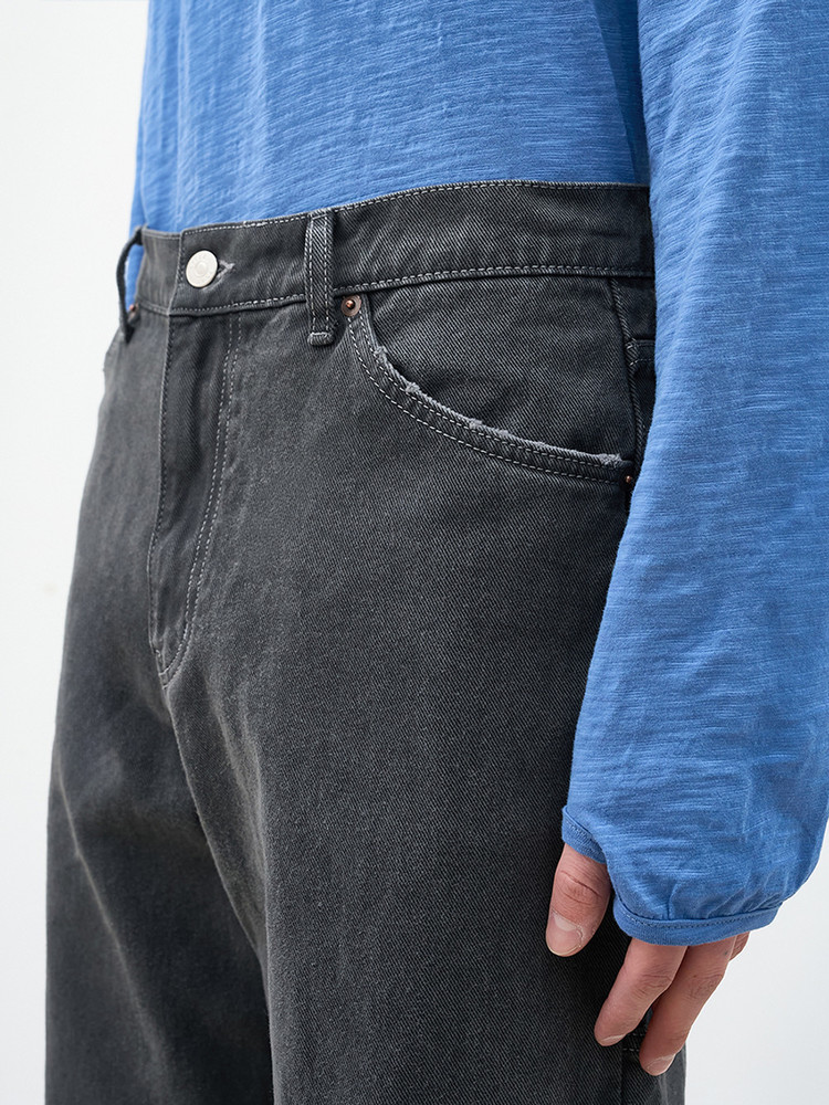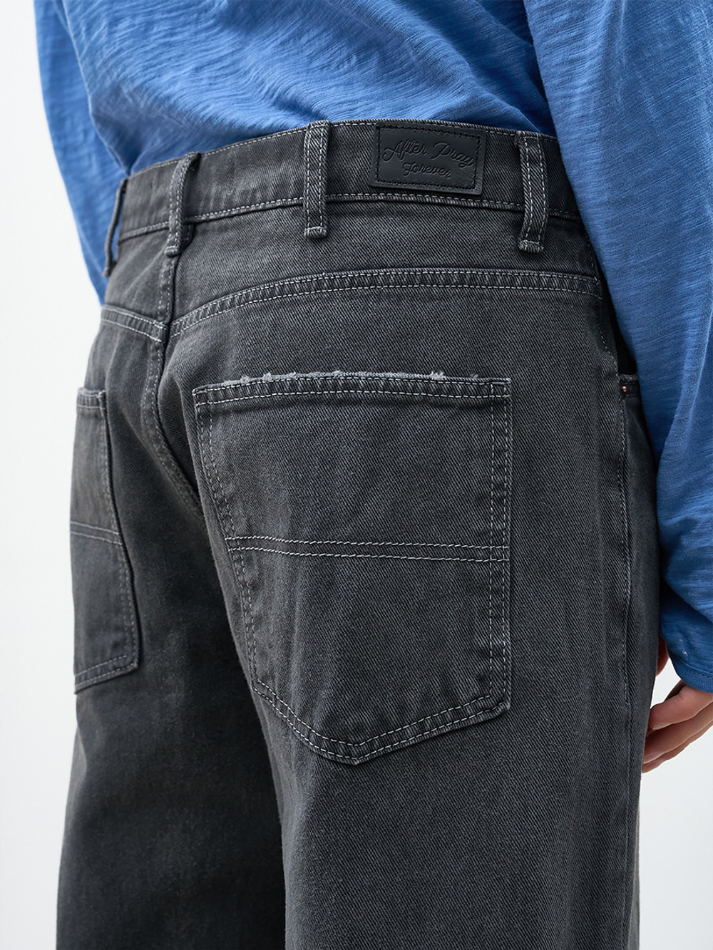 애프터프레이의 아카이브를 현대적으로 재해석한 더스티드 데님 진스. 설퍼 다잉 공법의 깊이 있는 색감과 7수 면사로 직조한 12.5oz 고밀도 데님의 견고한 텍스처. 황동 리벳으로 완성한 절제된 감성과 숙련된 손길의 감각적인 핸드 디스트로이 가공. 브랜드의 정체성을 담은 카우 레더 포에버 라벨과 레귤러 핏의 유연한 실루엣. 워크웨어 헤리티지를 투영해 일상의 착장에 세련된 존재감을 더하는 에센셜 피스.