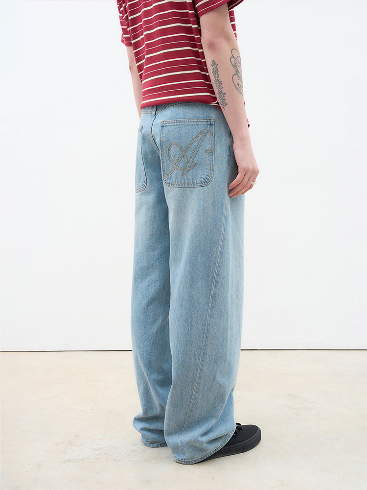 [AFTER PRAY] 리컬렉션 트위스트 데님 진스 라이트 인디고