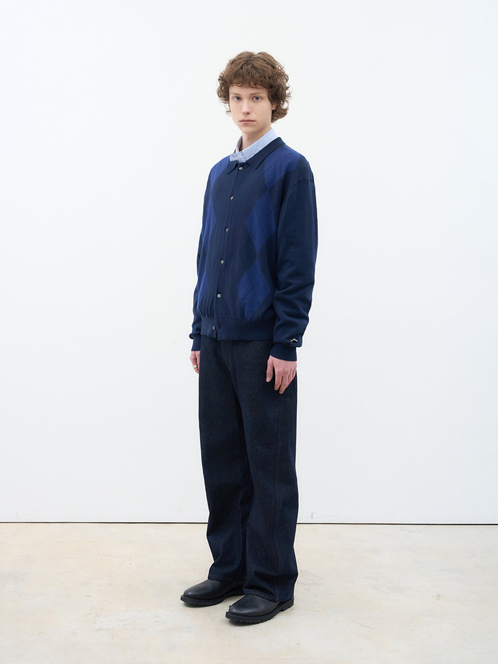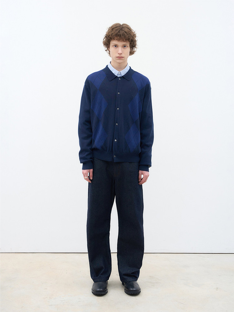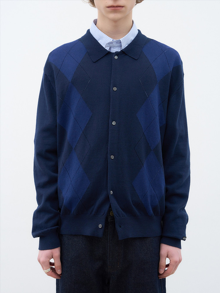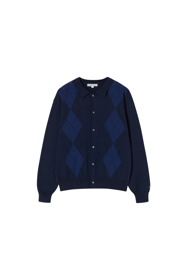 [AFTER PRAY] 포엠 아가일 니트 카디건 네이비