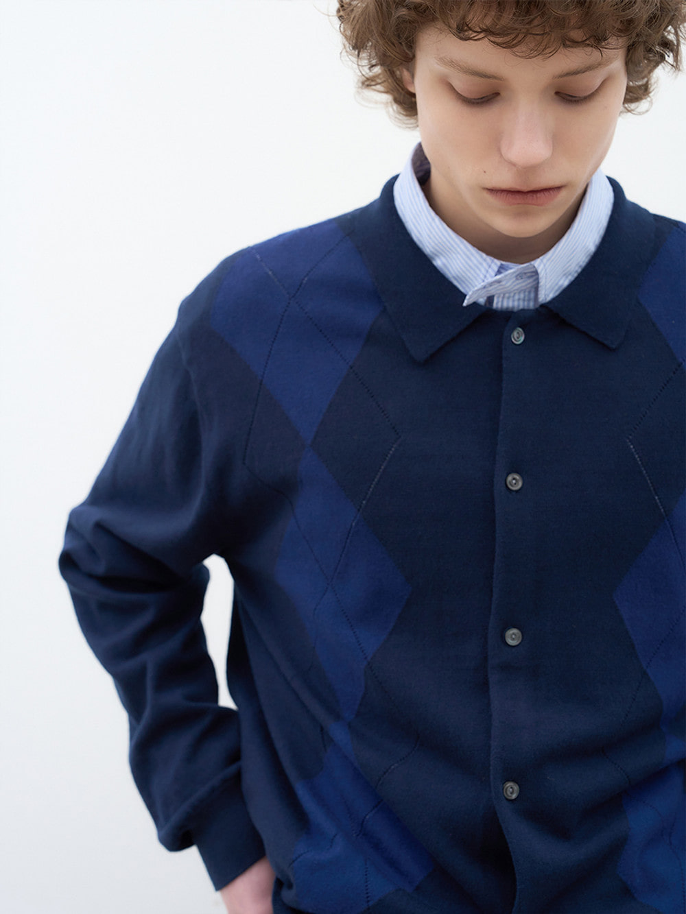 톤온톤 컬러 위로 아가일 패턴을 은은하게 풀어내 클래식한 무드를 절제된 방식으로 재해석한 니트 가디건. 하이 게이지(14게이지 1합) 코튼 울 원사를 사용해 가볍고 탄탄한 조직감과 부드러운 터치감을 동시에 구현. 아가일 위에 더해진 펀칭 라인 디테일로 은은한 입체감을 완성했으며, 전체 성형 편직과 사시 마감으로 높은 완성도를 구현. 캐주얼부터 포멀까지 자연스럽게 어우러지는 타임리스 니트웨어.