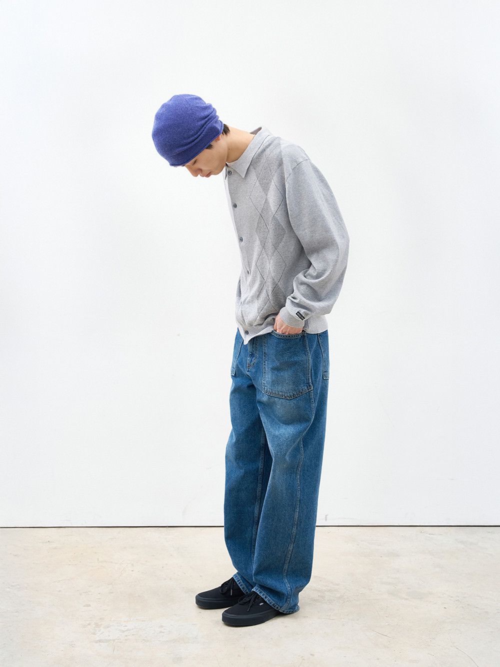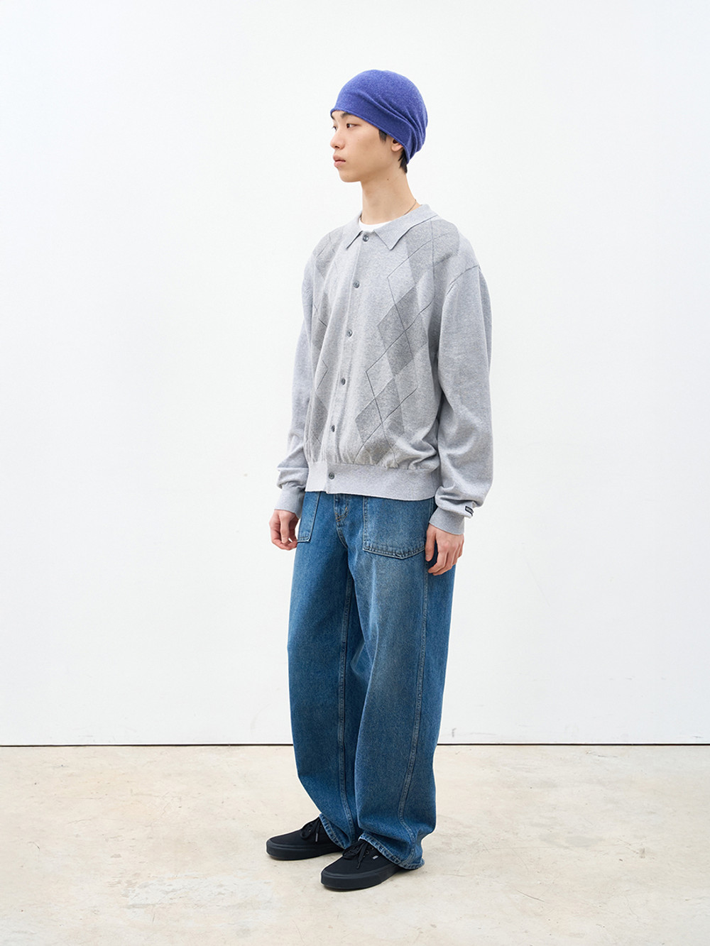 톤온톤 컬러 위로 아가일 패턴을 은은하게 풀어내 클래식한 무드를 절제된 방식으로 재해석한 니트 가디건. 하이 게이지(14게이지 1합) 코튼 울 원사를 사용해 가볍고 탄탄한 조직감과 부드러운 터치감을 동시에 구현. 아가일 위에 더해진 펀칭 라인 디테일로 은은한 입체감을 완성했으며, 전체 성형 편직과 사시 마감으로 높은 완성도를 구현. 캐주얼부터 포멀까지 자연스럽게 어우러지는 타임리스 니트웨어.