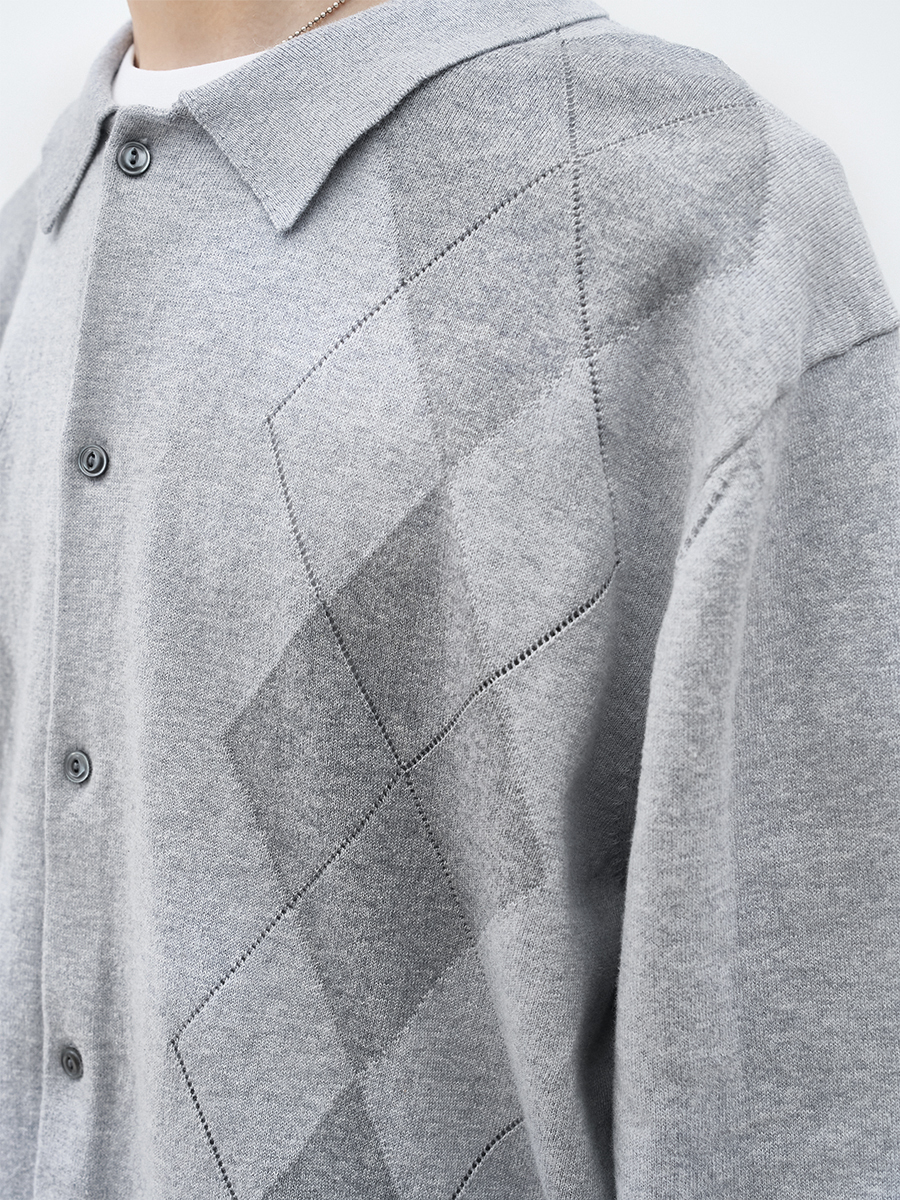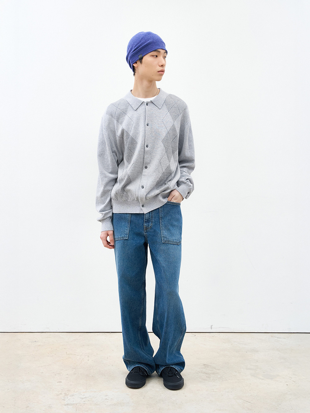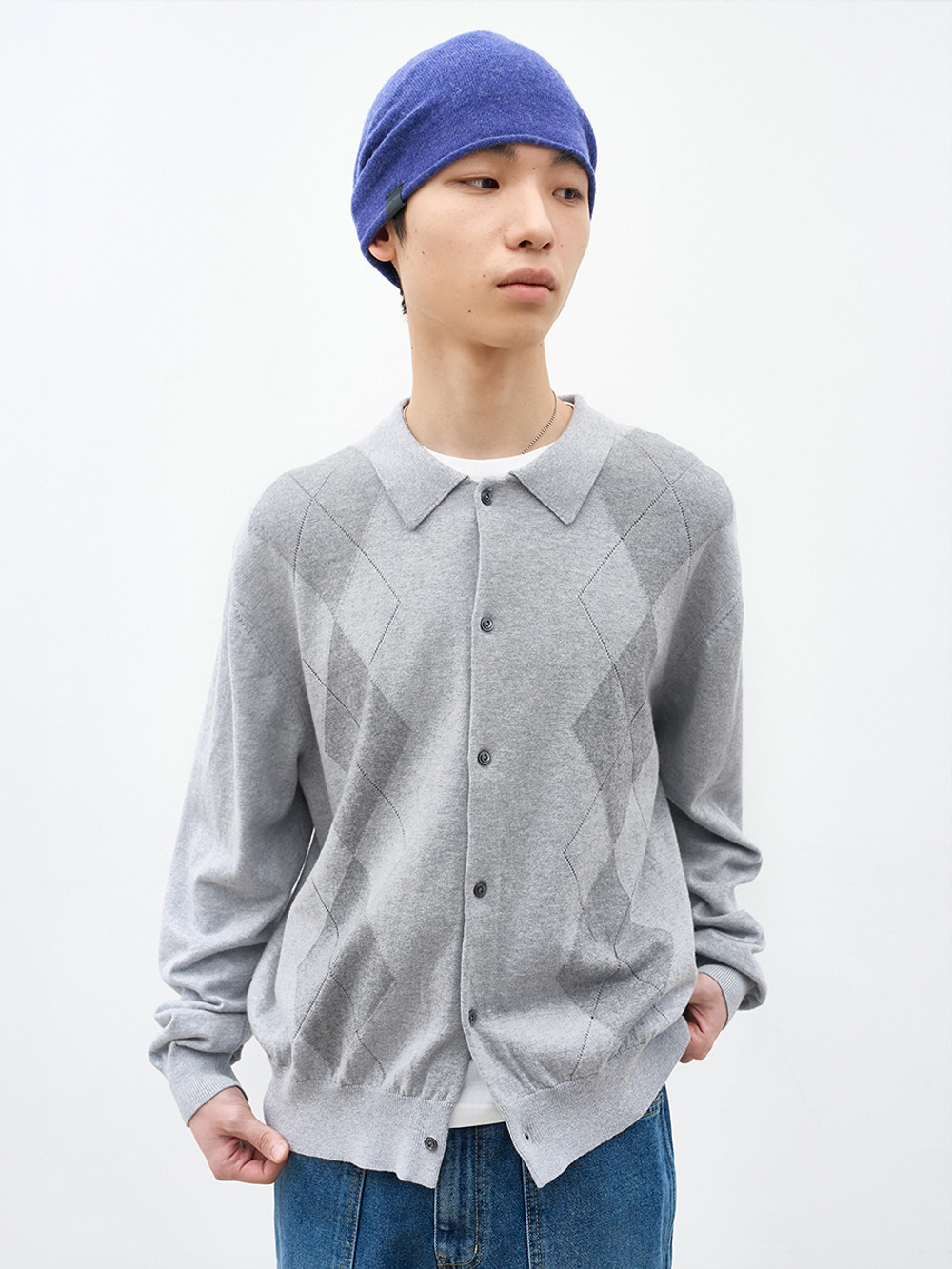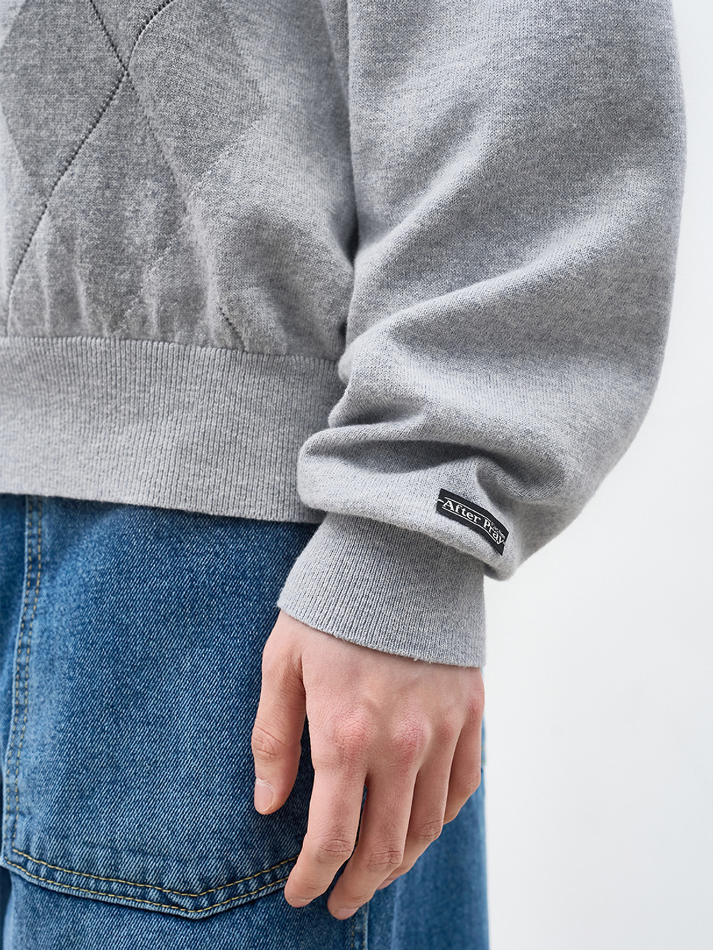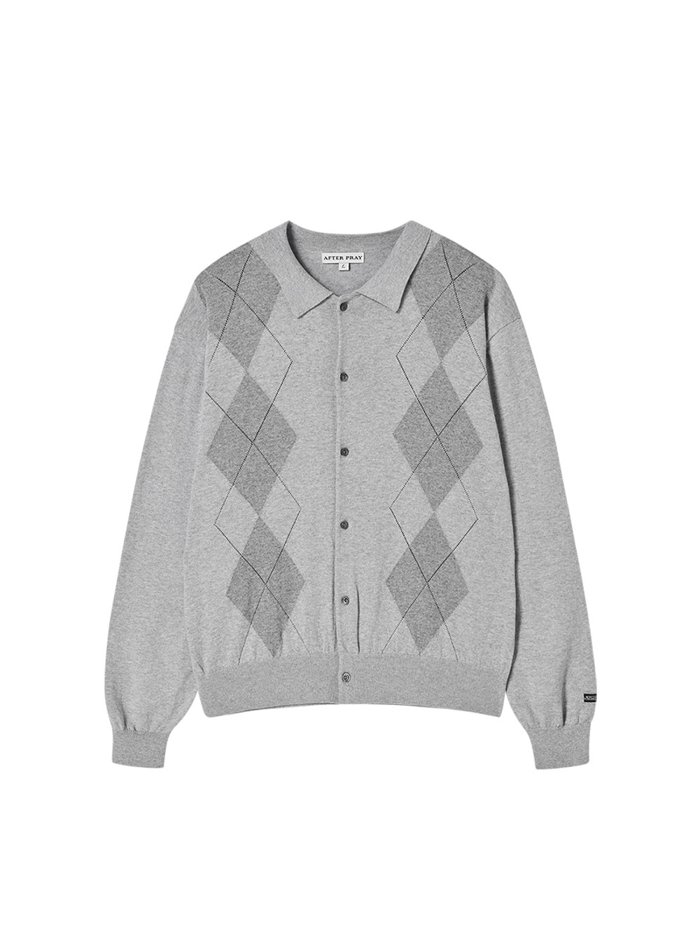[AFTER PRAY] 포엠 아가일 니트 카디건 멜란지 그레이