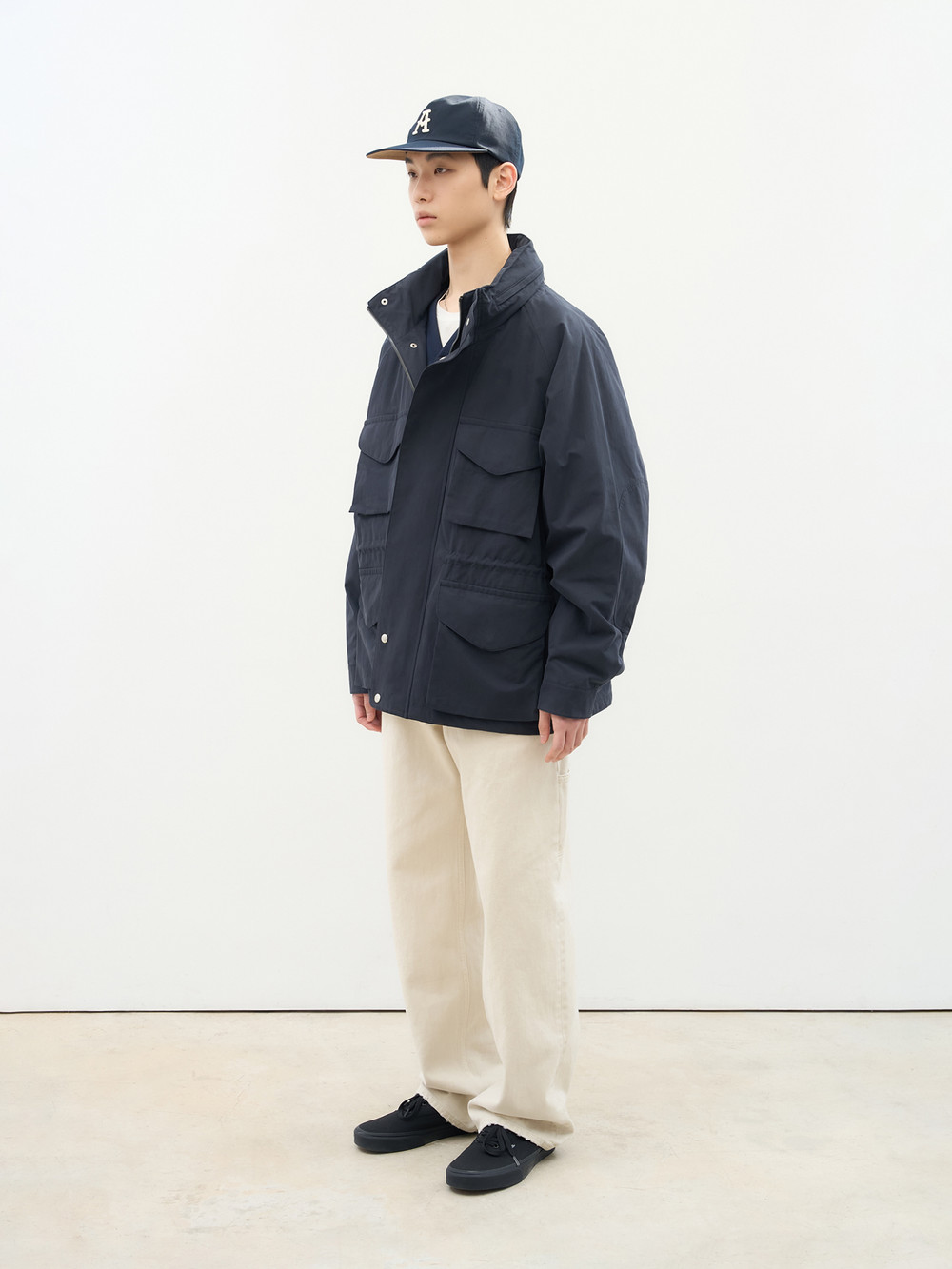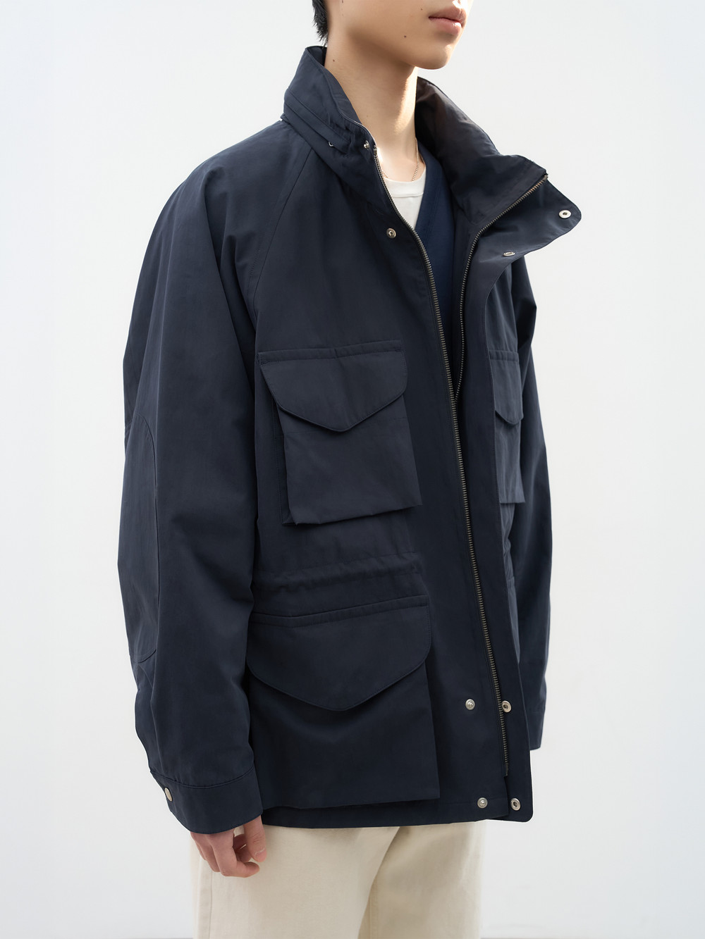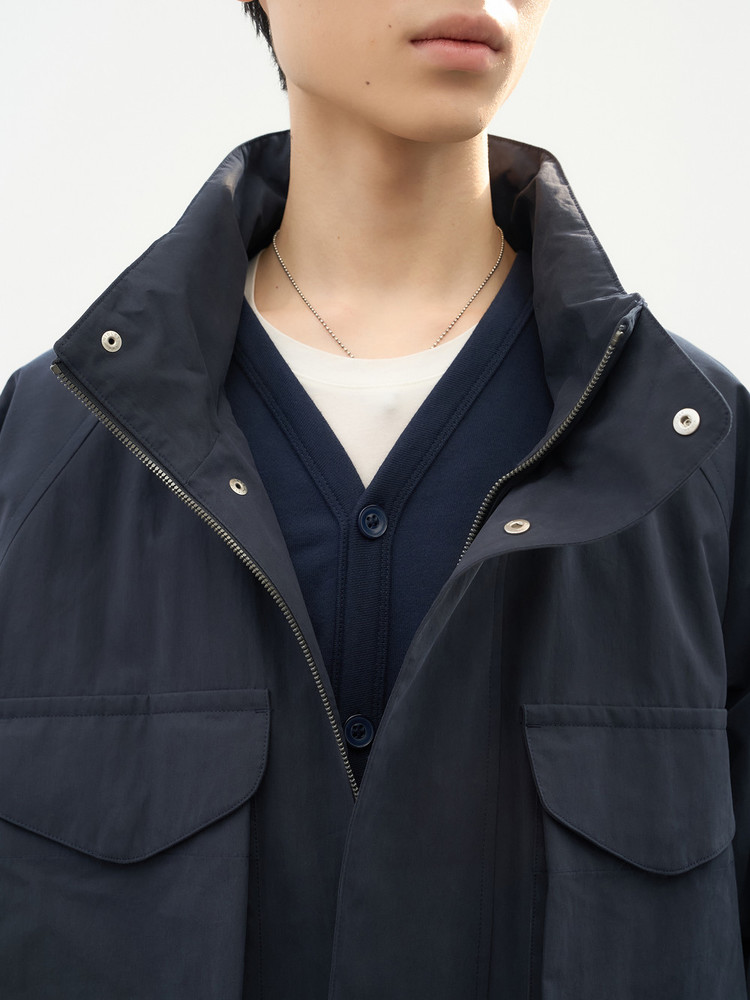 스카우트 파카의 간절기 시즌의 미학을 담아 새롭게 선보이는 익스클루시브 아이템. 피치 가공 및 바이오 워싱 30수 코튼 나일론 혼방 소재 위로 흐르는 은은한 광택과 부드러운 터치감. 콘트라스트 디테일로 모던한 감각을 더하는 내부의 섬세한 깅엄 체크 라이닝. 구조적인 입체 포켓과 후드가 숨겨진 하이 칼라의 정교한 밸런스. 섬머 아우터 초여름의 공기까지 여유롭게 수용하는 감각적인 기능성의 정수.