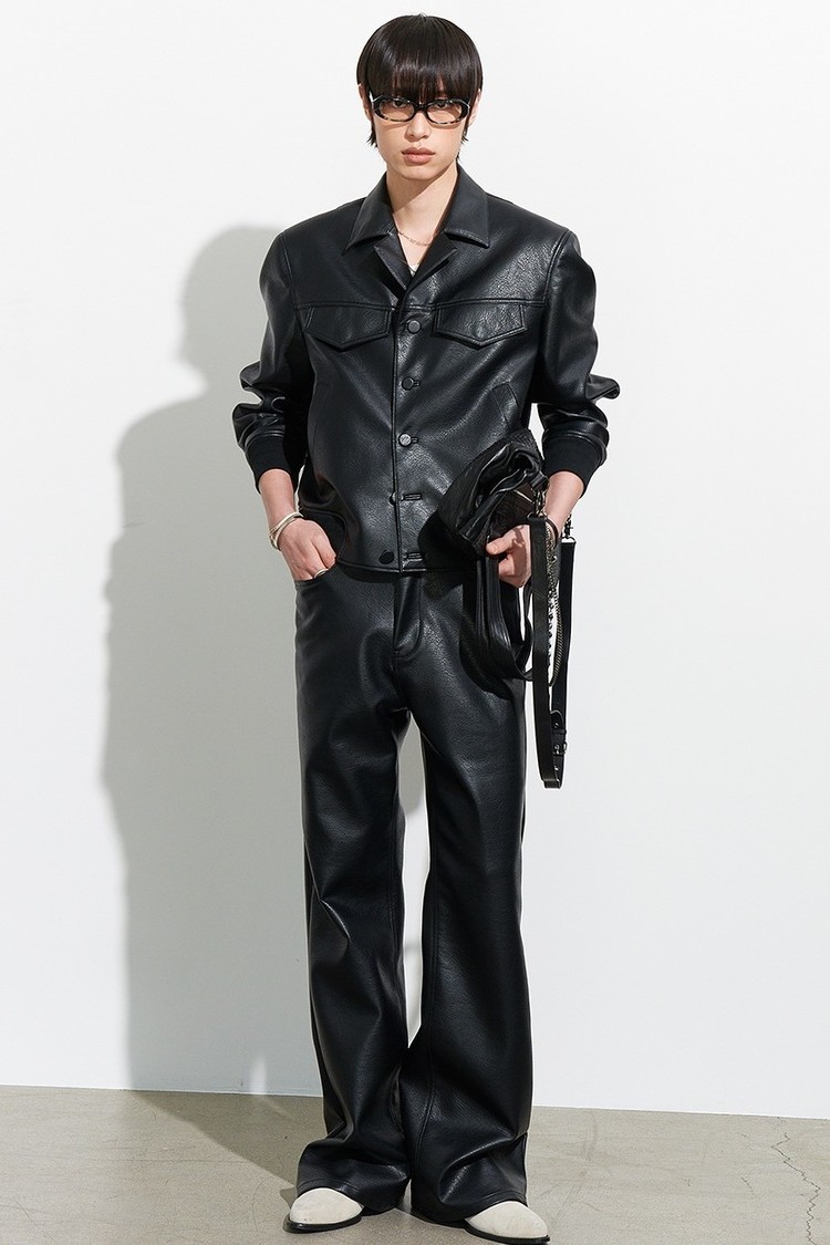 FAUX LEATHER OPEN COLLAR BLOUSON BLACK (XJ107)