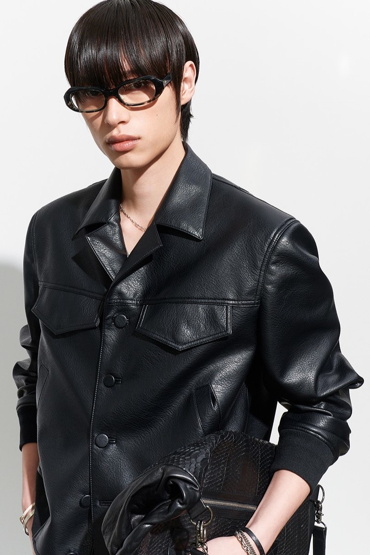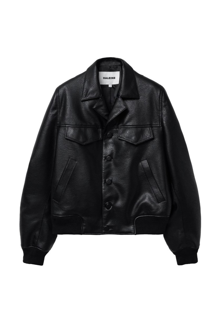 [HALEINE] FAUX LEATHER OPEN COLLAR BLOUSON BLACK (XJ107)