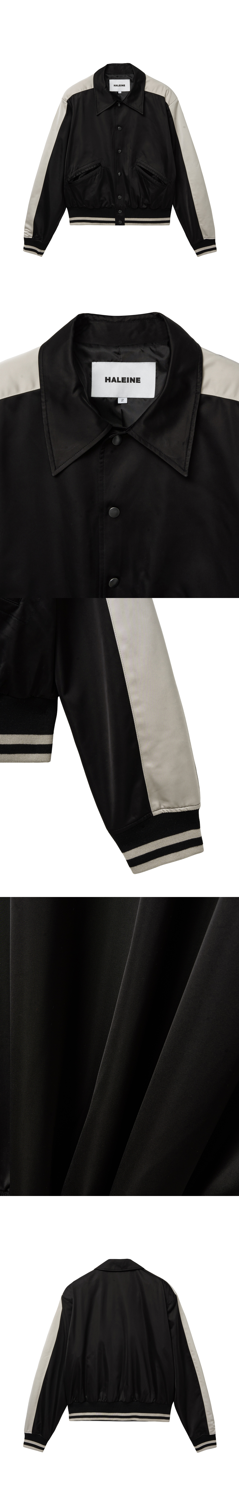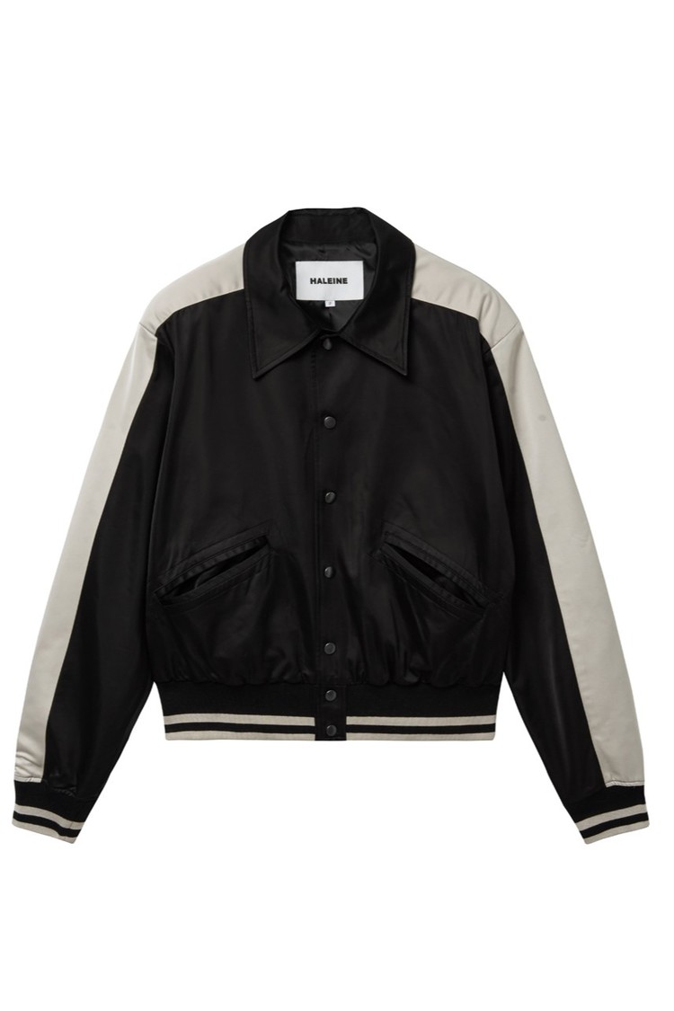 [HALEINE] SATIN VARSITY PANEL JACKET BLACK (XJ102)SOLDOUT