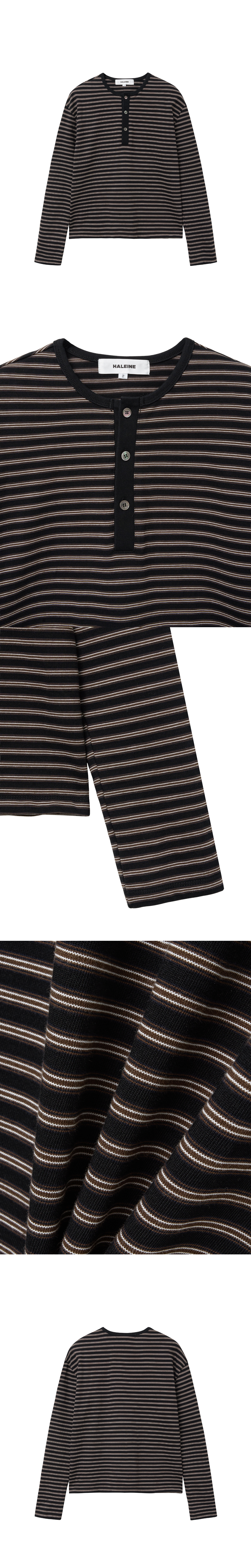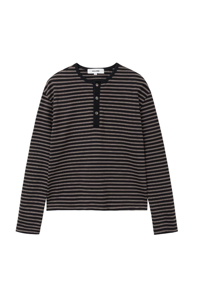 [HALEINE] STRIPE CROPPED HENLEY BLACK (XT104)SOLDOUT