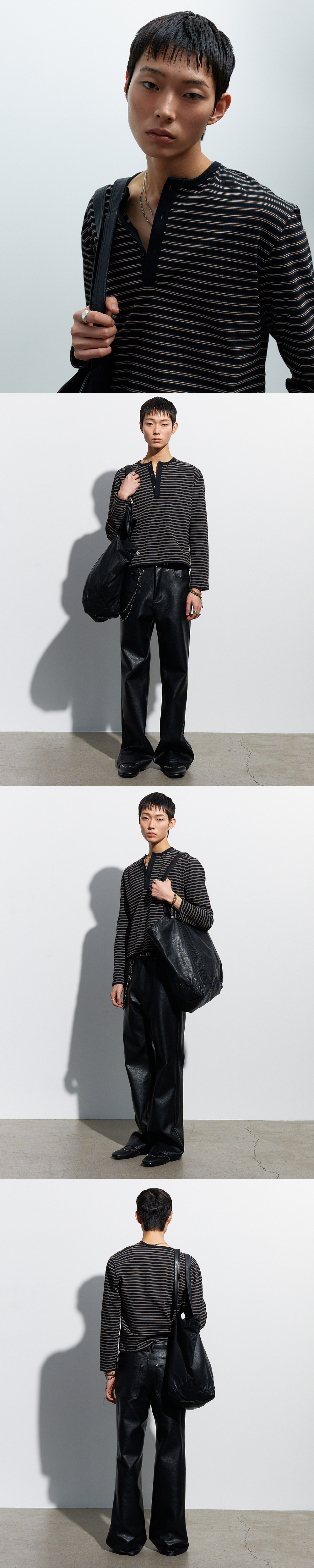 크롭한 기장으로 트렌디한 실루엣을 완성했으며, 심플한 스트라이프 패턴이 전체적인 디자인의 중심을 완성합니다.