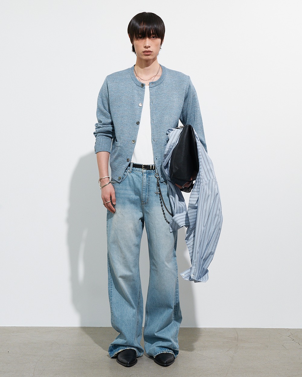 래귤러한 바디 밸런스에 크롭한 기장을 더해 단정하면서도 경쾌한 실루엣을 형성합니다.