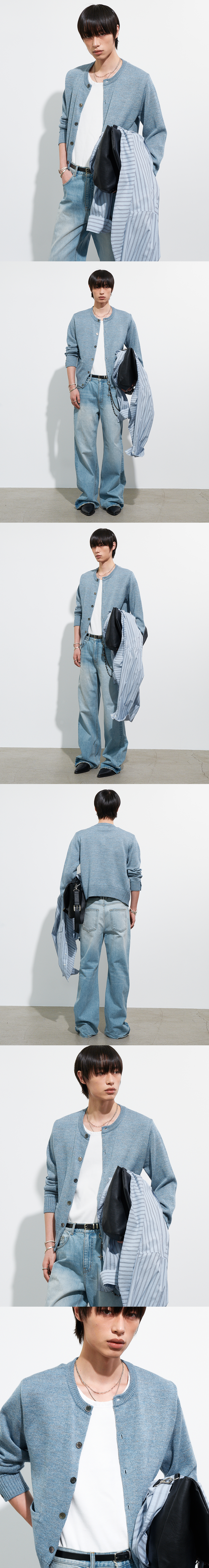 [HALEINE] MELANGE ROUND NECK CARDIGAN BLUE (XT108)