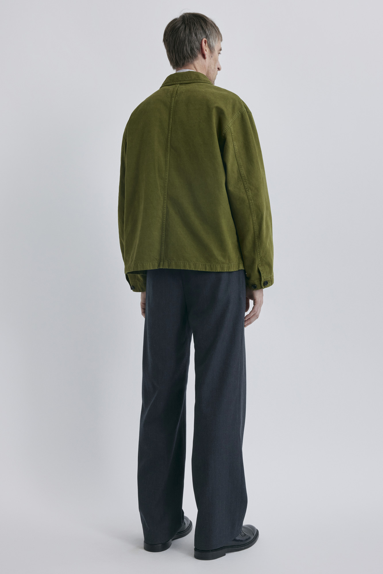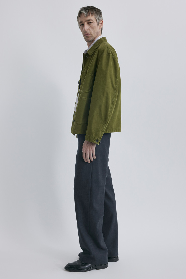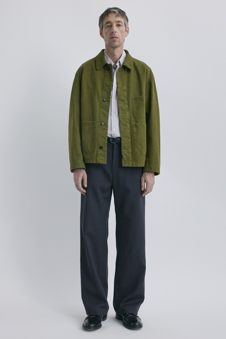 프랑스군 치노 팬츠에서 영감을 받은 고밀도 드릴 코튼 원단을 사용한 워크자켓입니다. 빈티지 감성이 살아있는 컬러들을 썰파 다잉(Sulfur dyeing)으로 구현하여 컬러마다 고유한 깊이감과 질감을 표현하였고, 더블 스티치가 들어간 부위에는 시간이 지날수록 멋스럽게 에이징되며, 클래식한 워크웨어에 감도 있는 무드를 더해줍니다. 몸판은 여유롭게, 소매는 구조적으로 설계되어 착용 시 자연스럽게 흐르는 실루엣이 완성됩니다. 슬림한 슬랙스나 워크 팬츠 어디에도 잘 어울리며, 단독으로도 레이어링 아이템으로도 활용도 높은 아우터입니다.