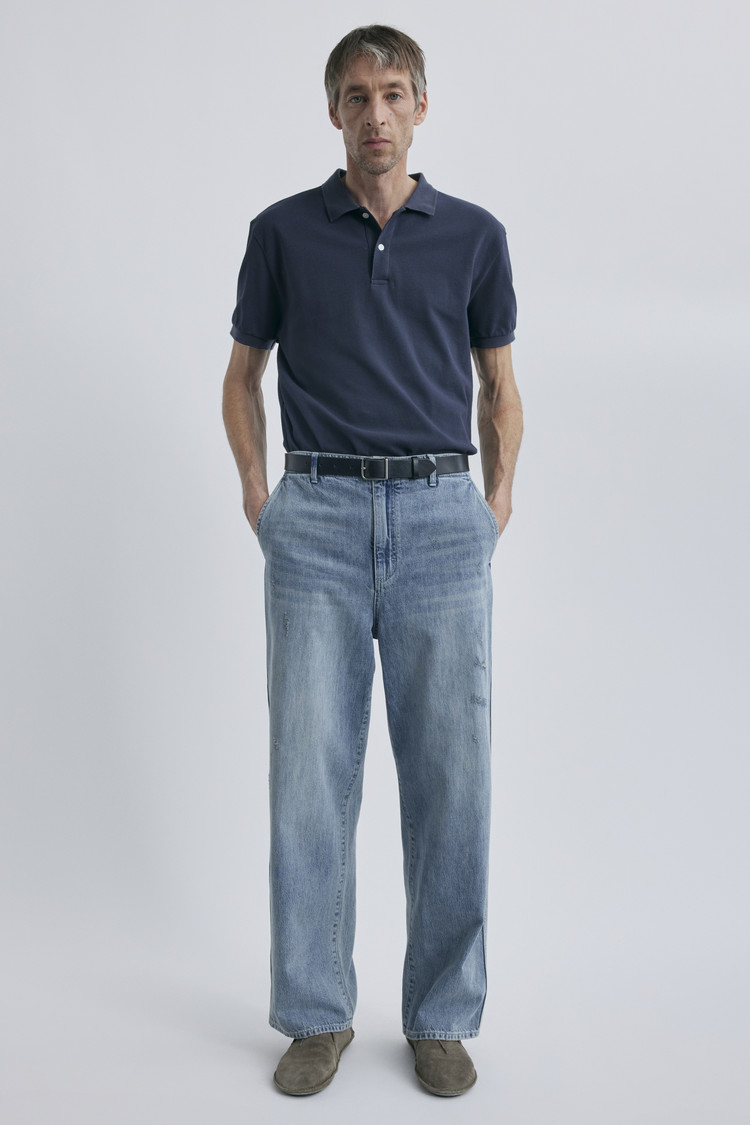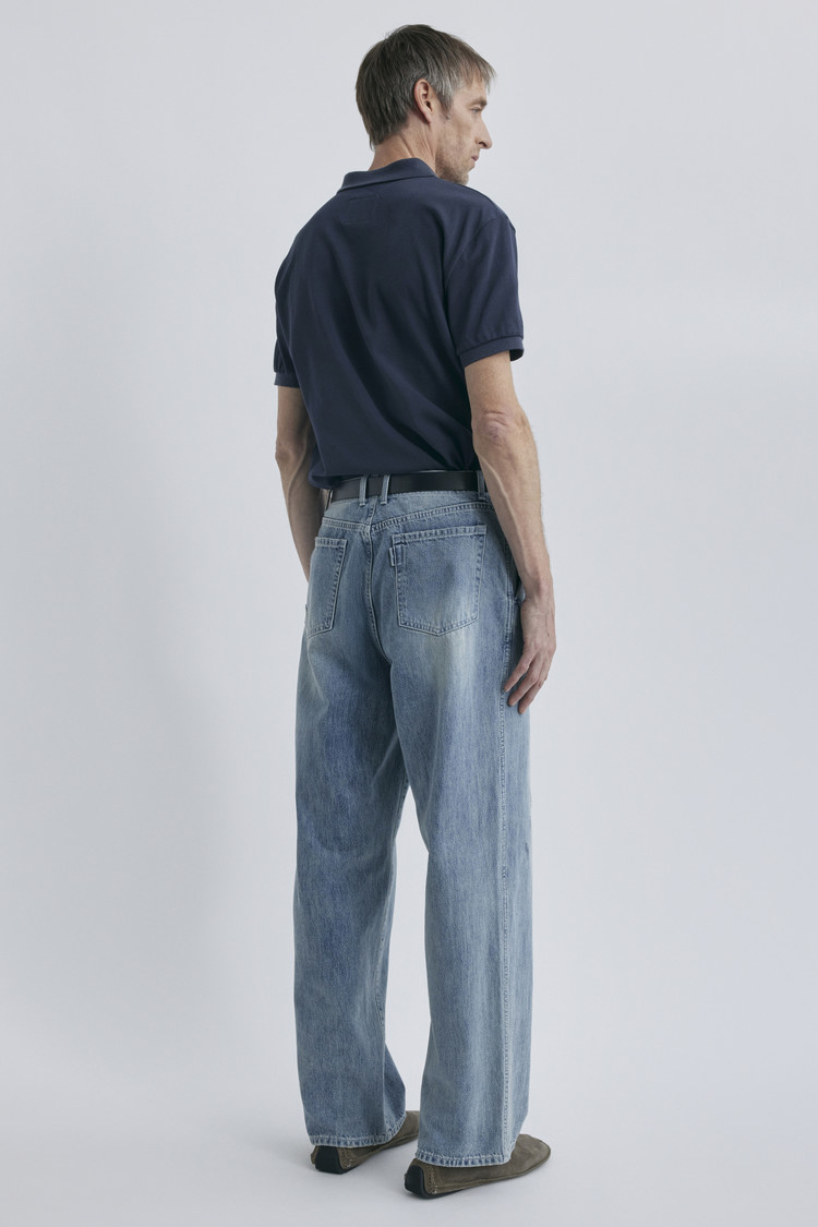 확실한 실루엣 차이가 돋보이는 원워시드 와이드 데님입니다. 기존 테이퍼드 와이드 핏보다 전체적인 통과 밑단을 한층 넓게 설계해, 다리 라인이 여유롭게 드러나는 와이드 배기 실루엣을 완성했습니다. 힙부터 밑단까지 자연스럽게 이어지는 볼륨감 있는 라인이 특징이며, 데님 스타일 간의 차이를 분명하게 보여주는 새로운 실루엣으로 데일리 룩에 힘을 더해줍니다.