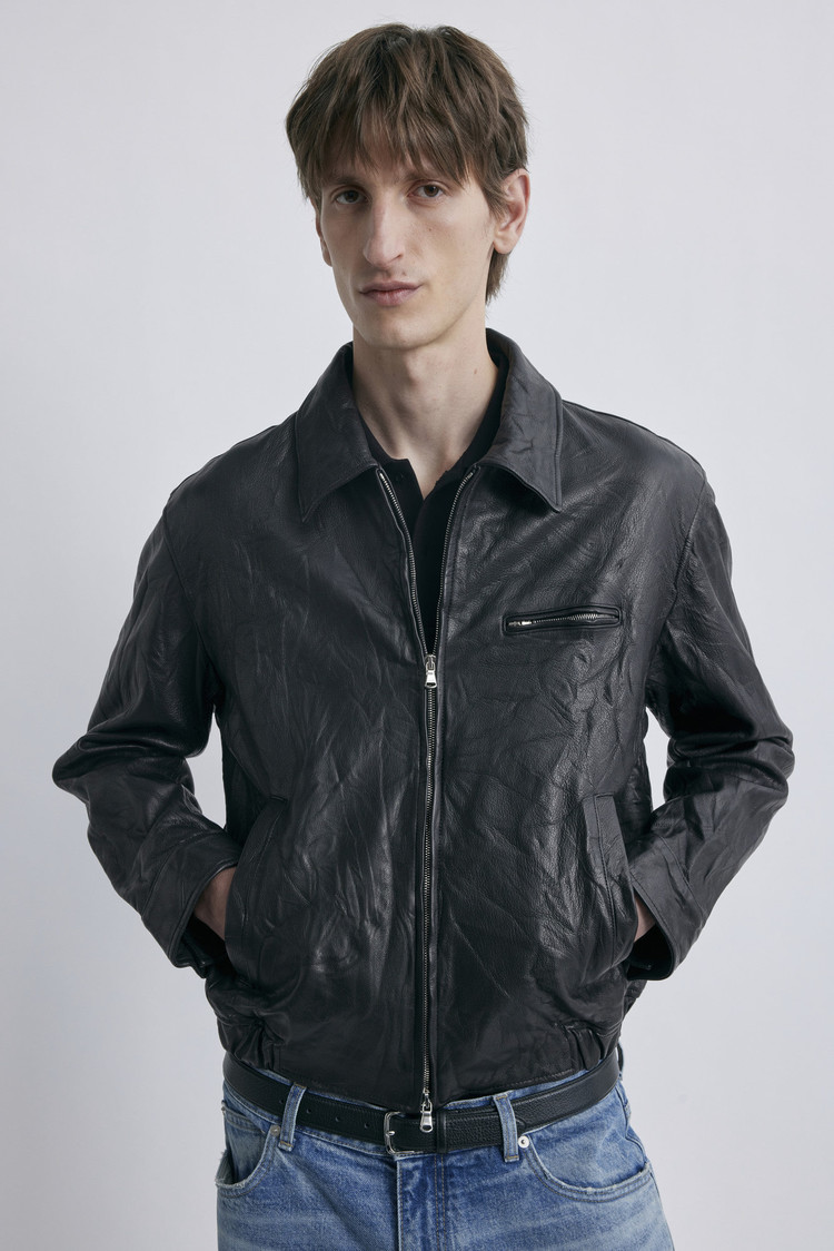 파키스탄산 고트스킨을 사용해 견고하면서도 내추럴한 질감을 살린 레더 자켓입니다.