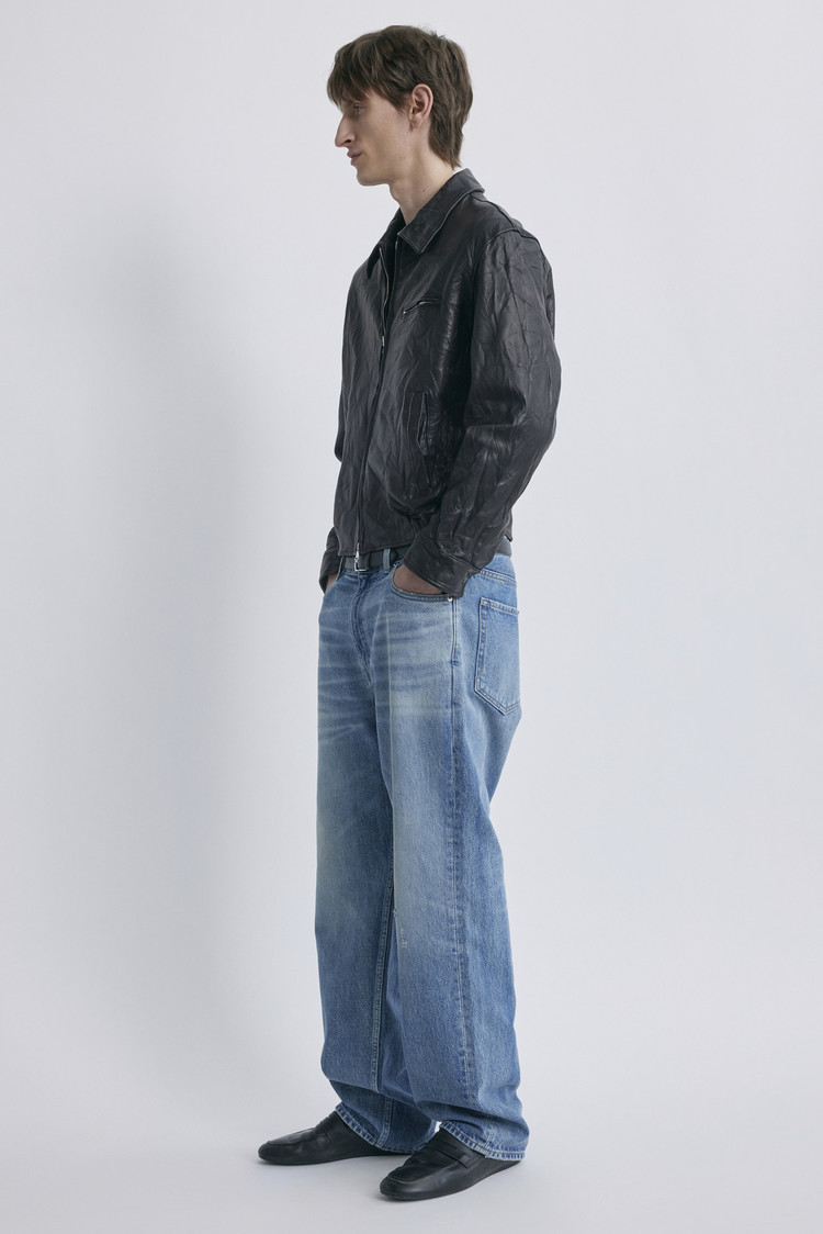 파키스탄산 고트스킨을 사용해 견고하면서도 네추럴한 표면감이 살아있는 가죽 소재입니다. 완성된 제품에 가먼트 워싱 가공을 더해 자연스러운 주름과 은은한 광택을 입혔으며, 시간이 흐를수록 더욱 멋스럽게 변화하는 에이징이 매력입니다. 안감은 뱀버그 큐프라 100%를 사용해 뛰어난 통기성과 흡습성으로 쾌적한 착용감을 선사합니다.