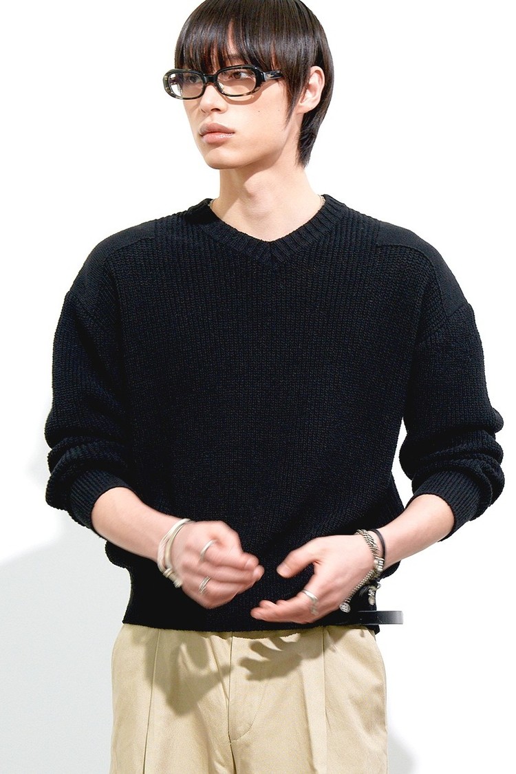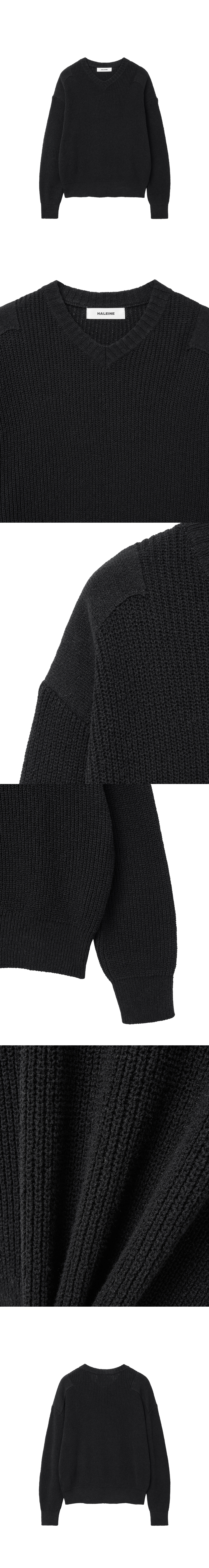 [HALEINE] CROPPED V-NECK RELAXED KNIT BLACK (XT110)