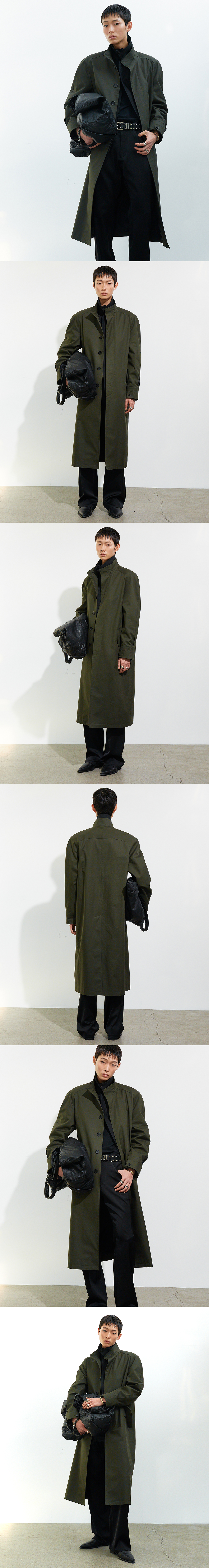 코튼과 리오셀 혼방 소재로 제작된 롱 기장의 밀리터리 코트입니다.