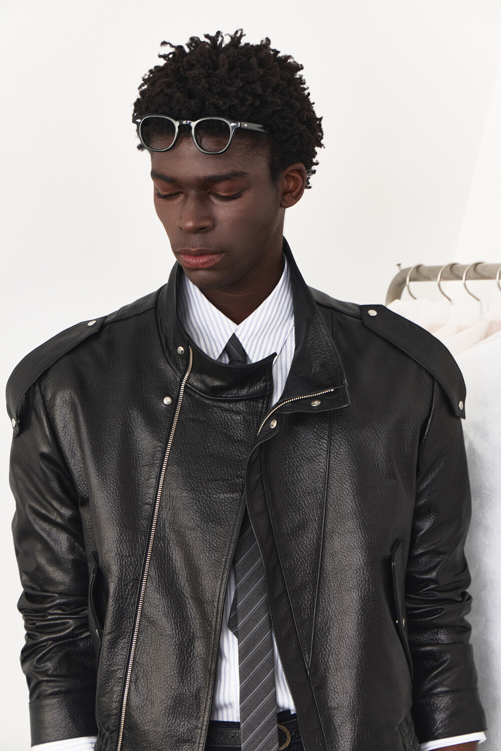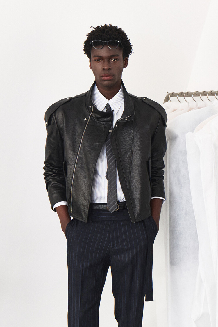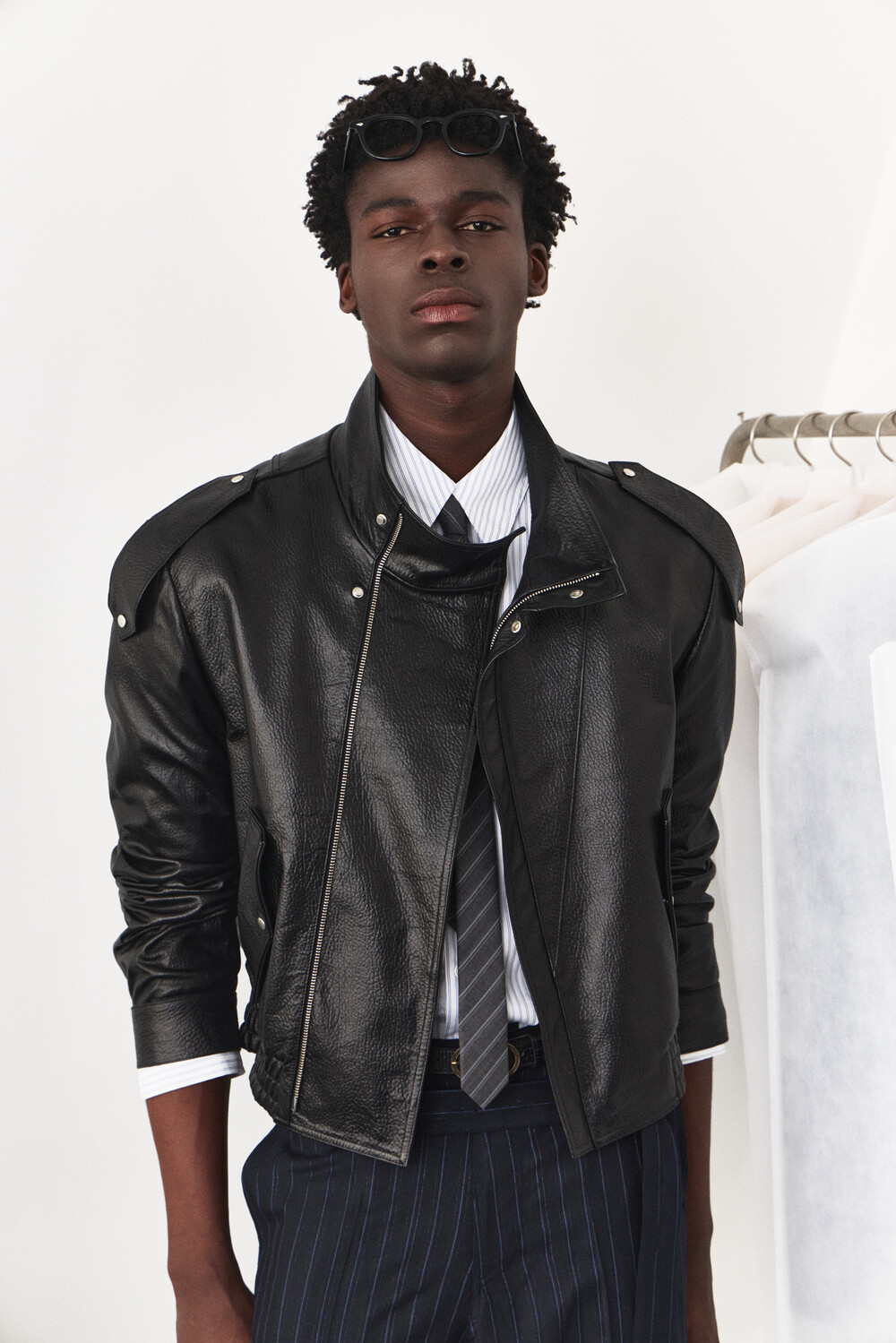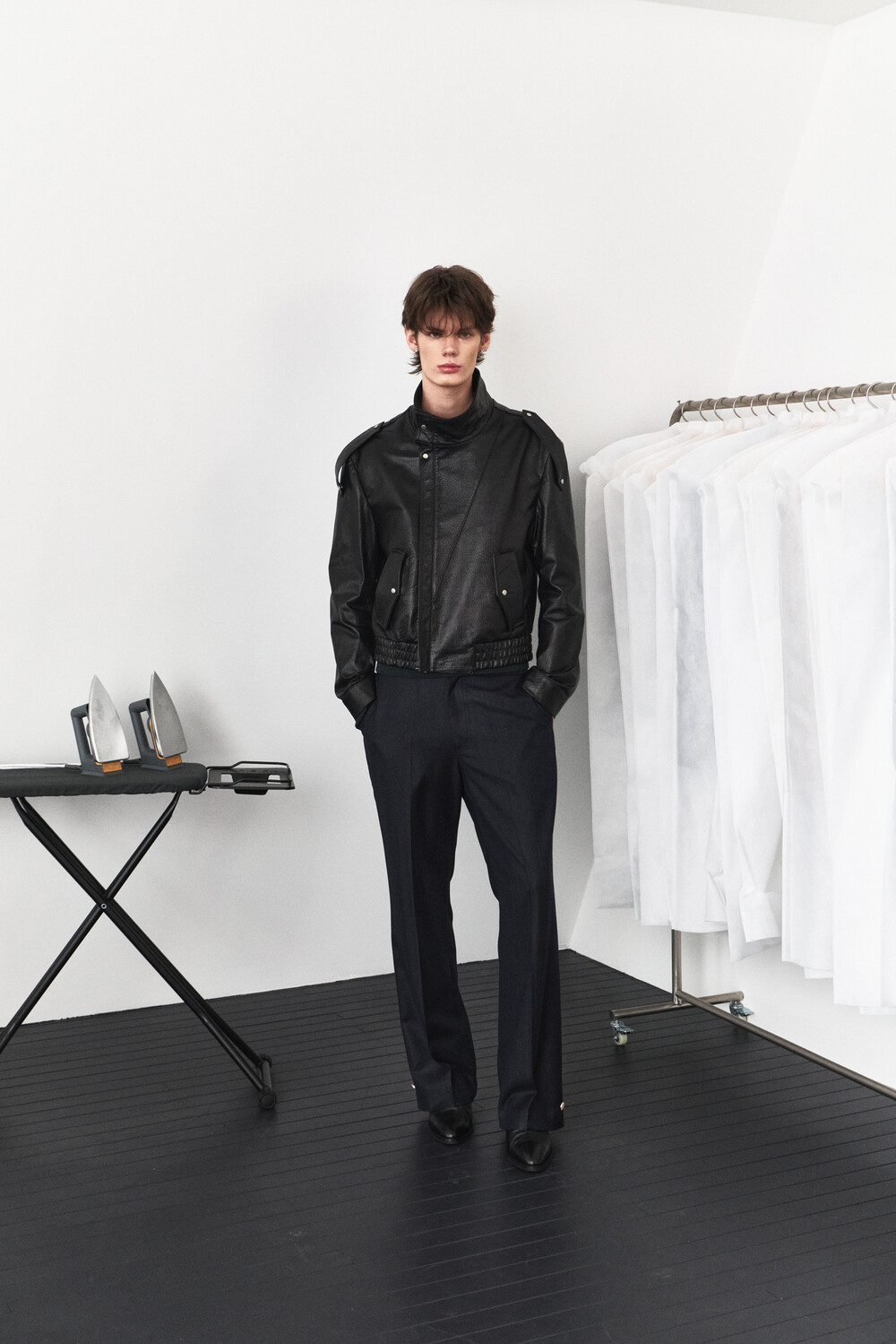 - 램 스킨 가죽을 활용한 하이넥 레더 자켓 디자인
