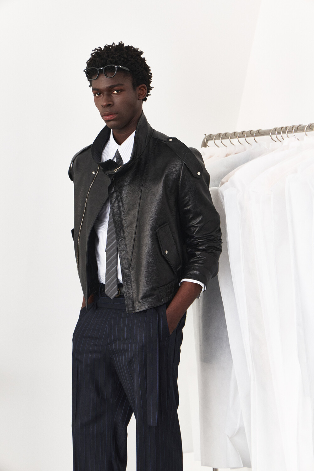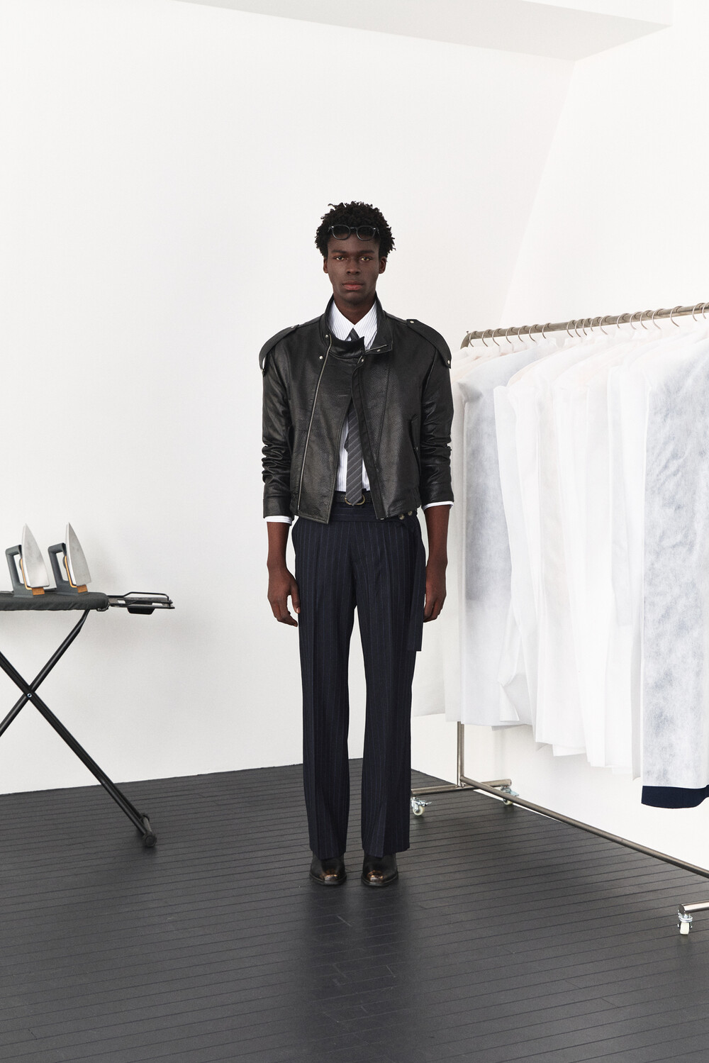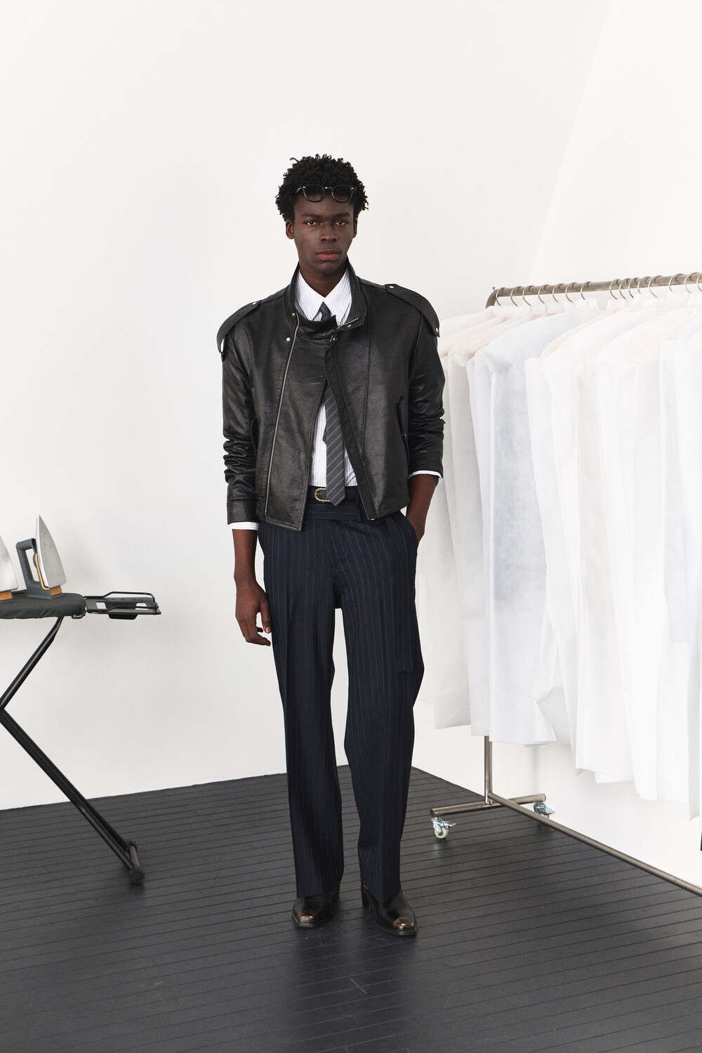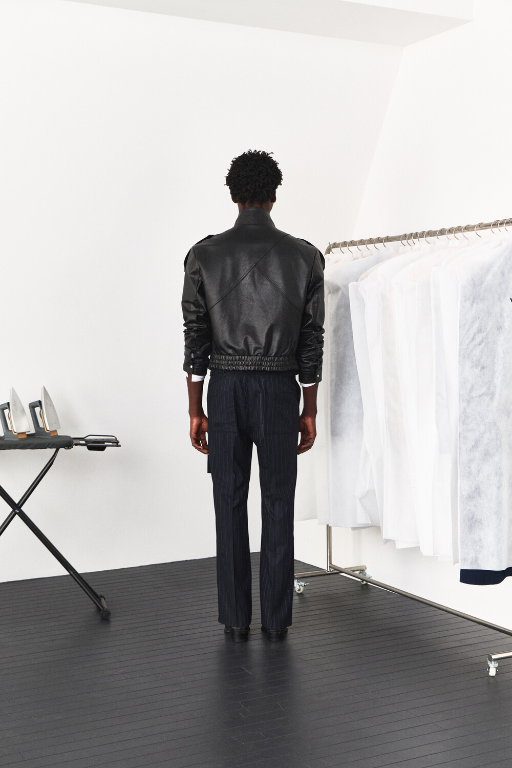 - 램 스킨 가죽을 활용한 하이넥 레더 자켓 디자인