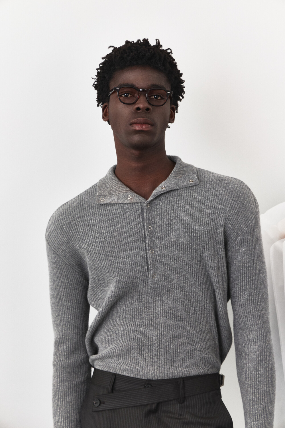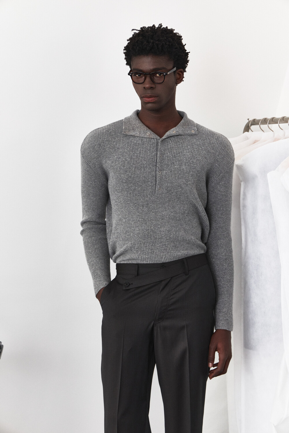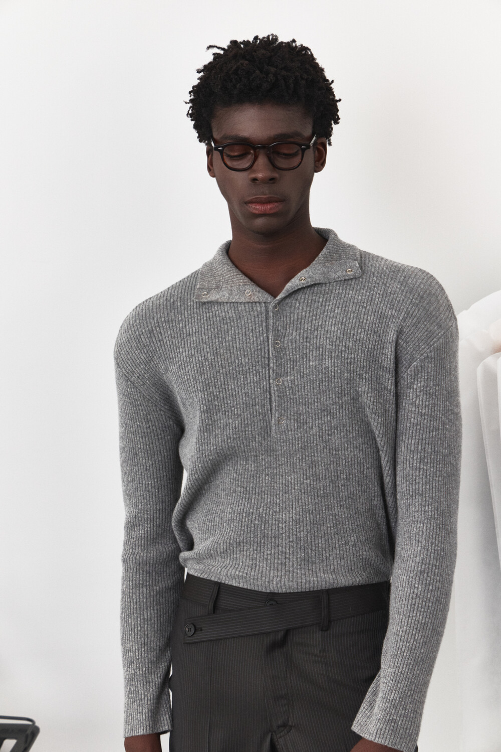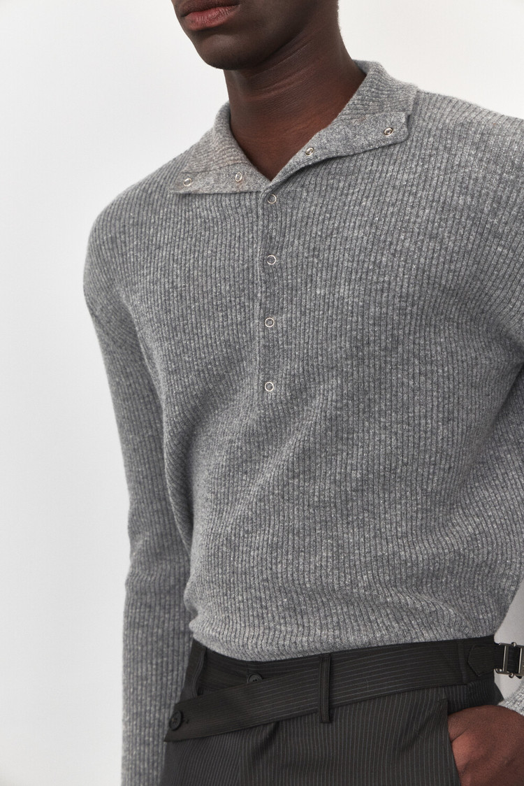 [WAVINESS] Mockneck Snap Rib Knit - Grey