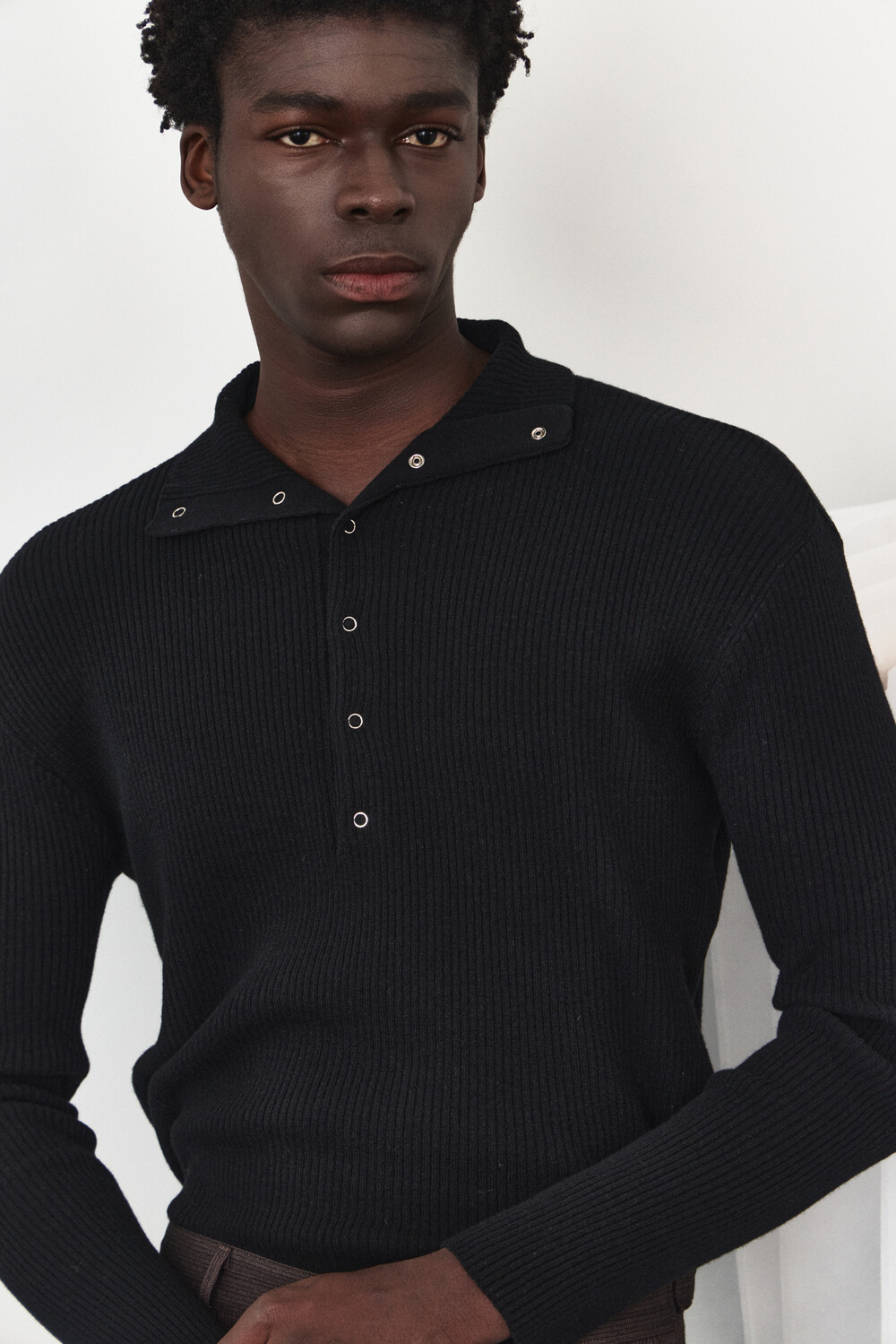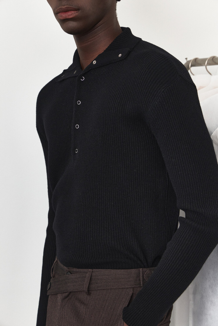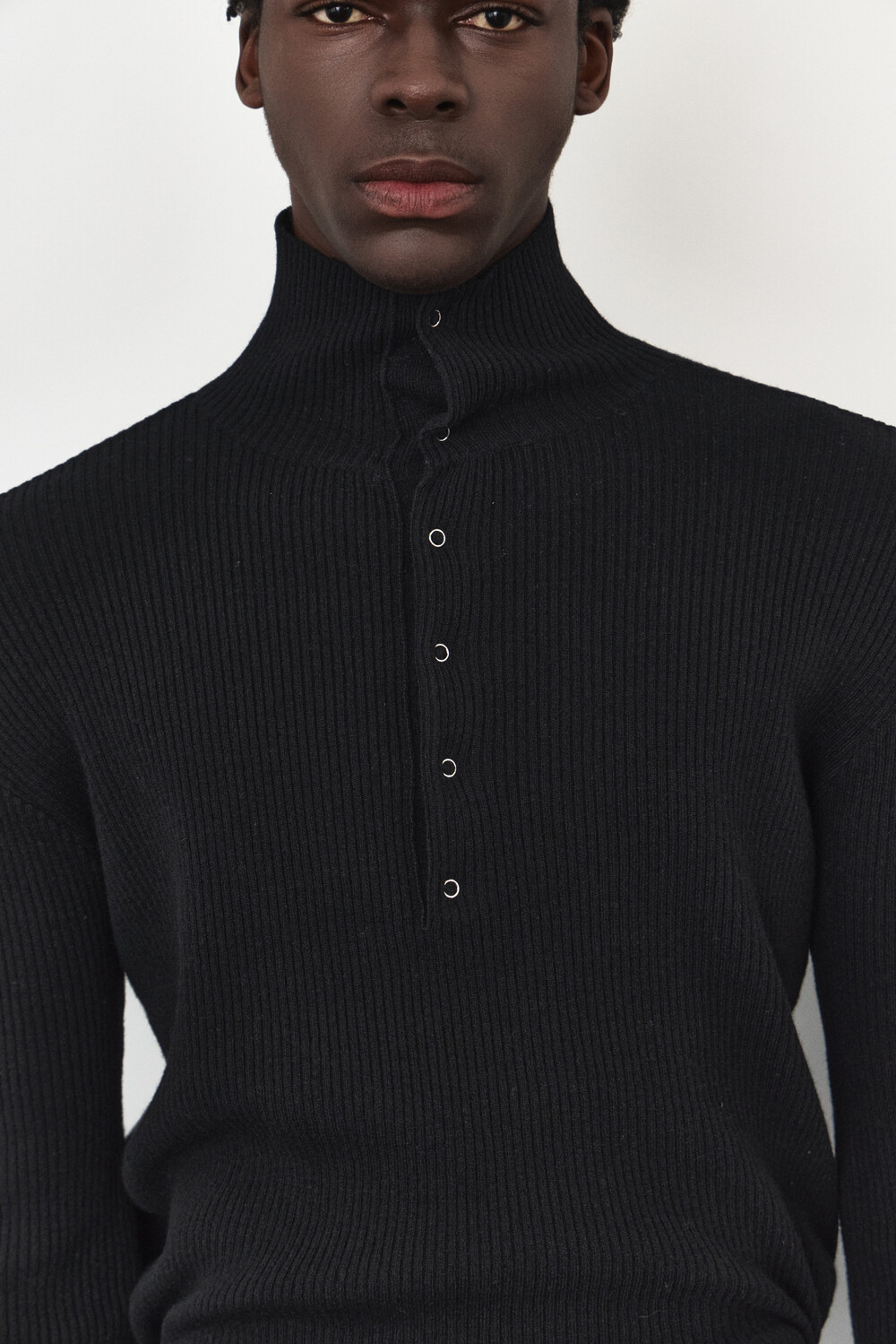 [WAVINESS] Mockneck Snap Rib Knit - Black