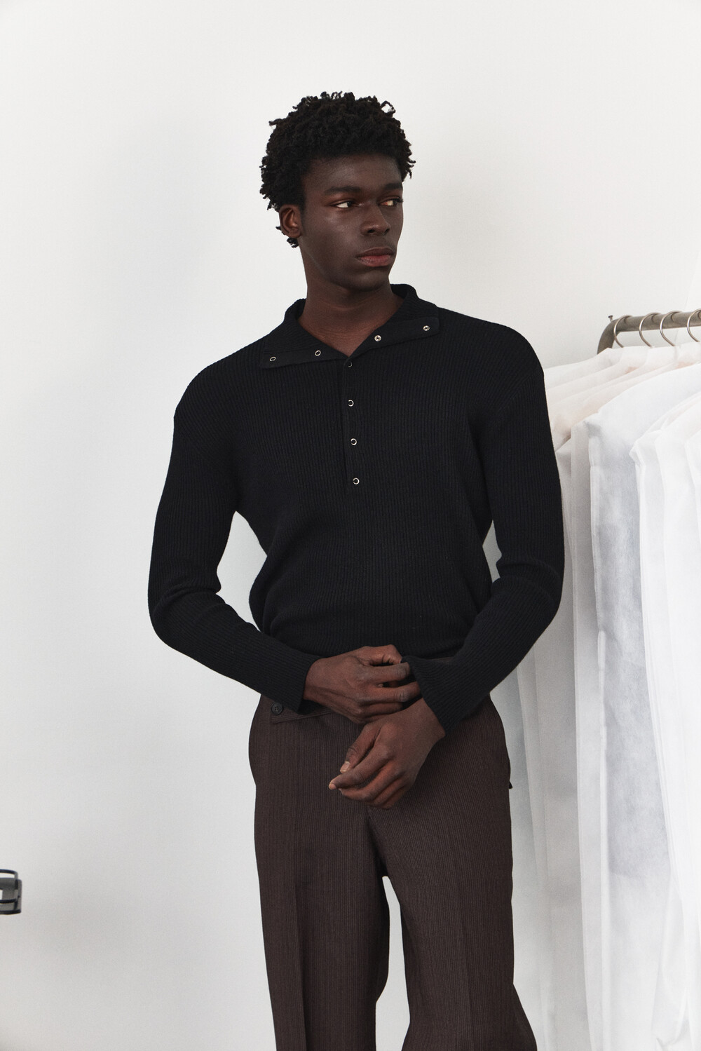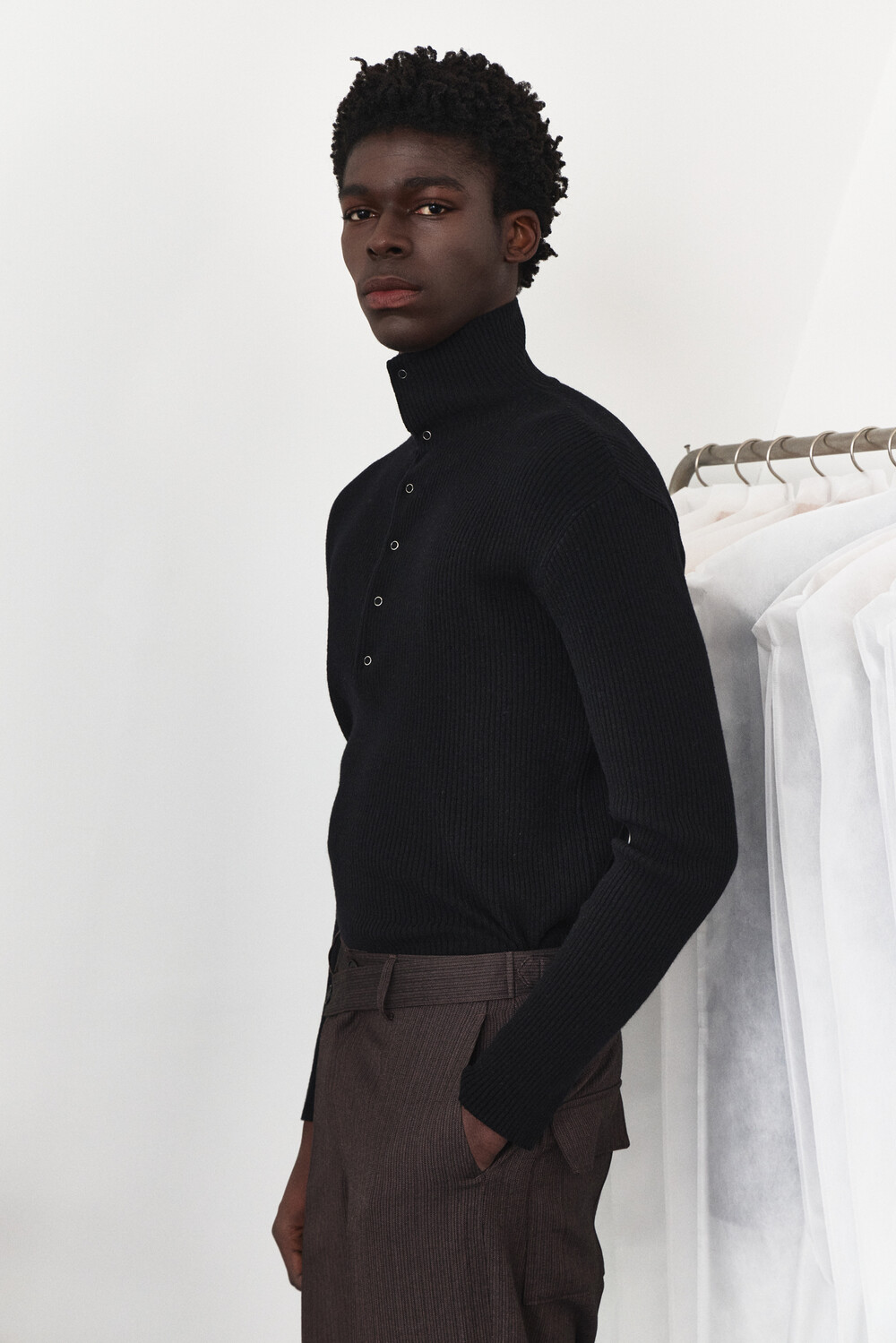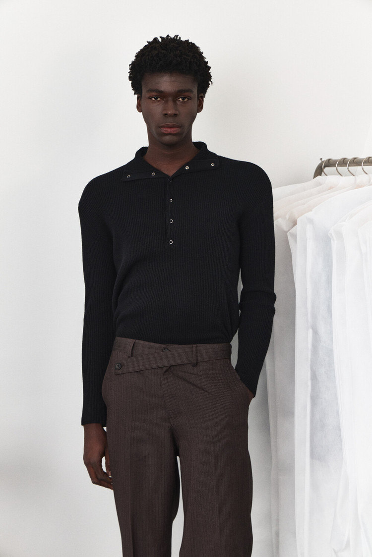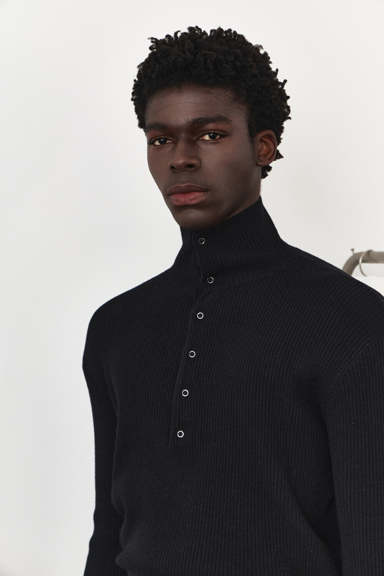 [WAVINESS] Mockneck Snap Rib Knit - Black