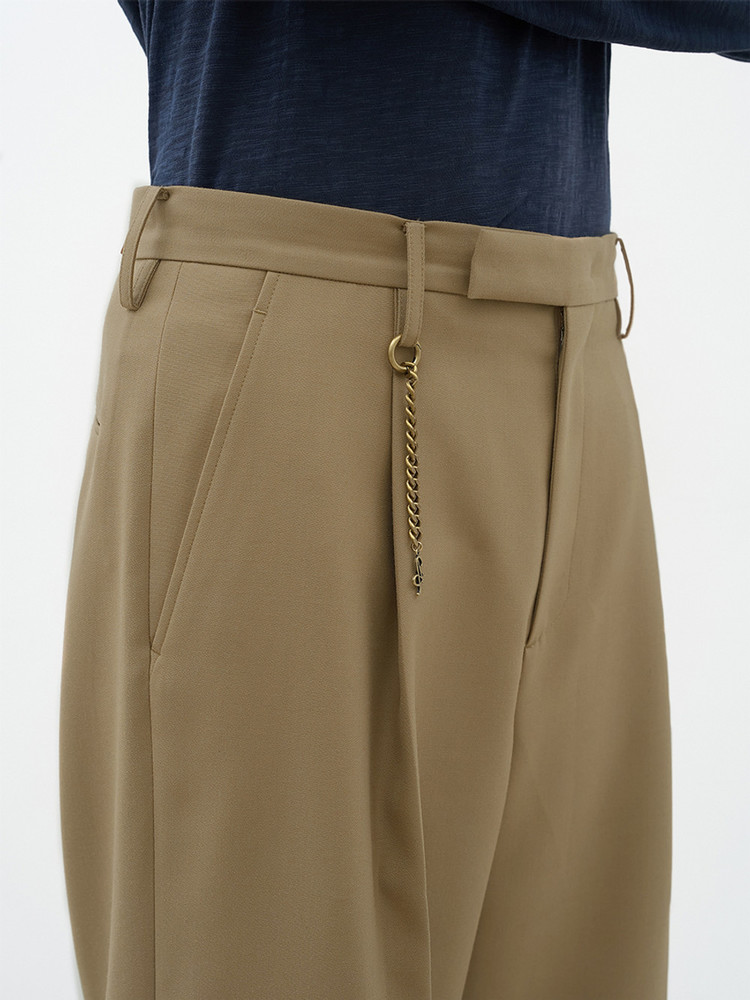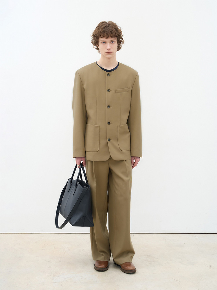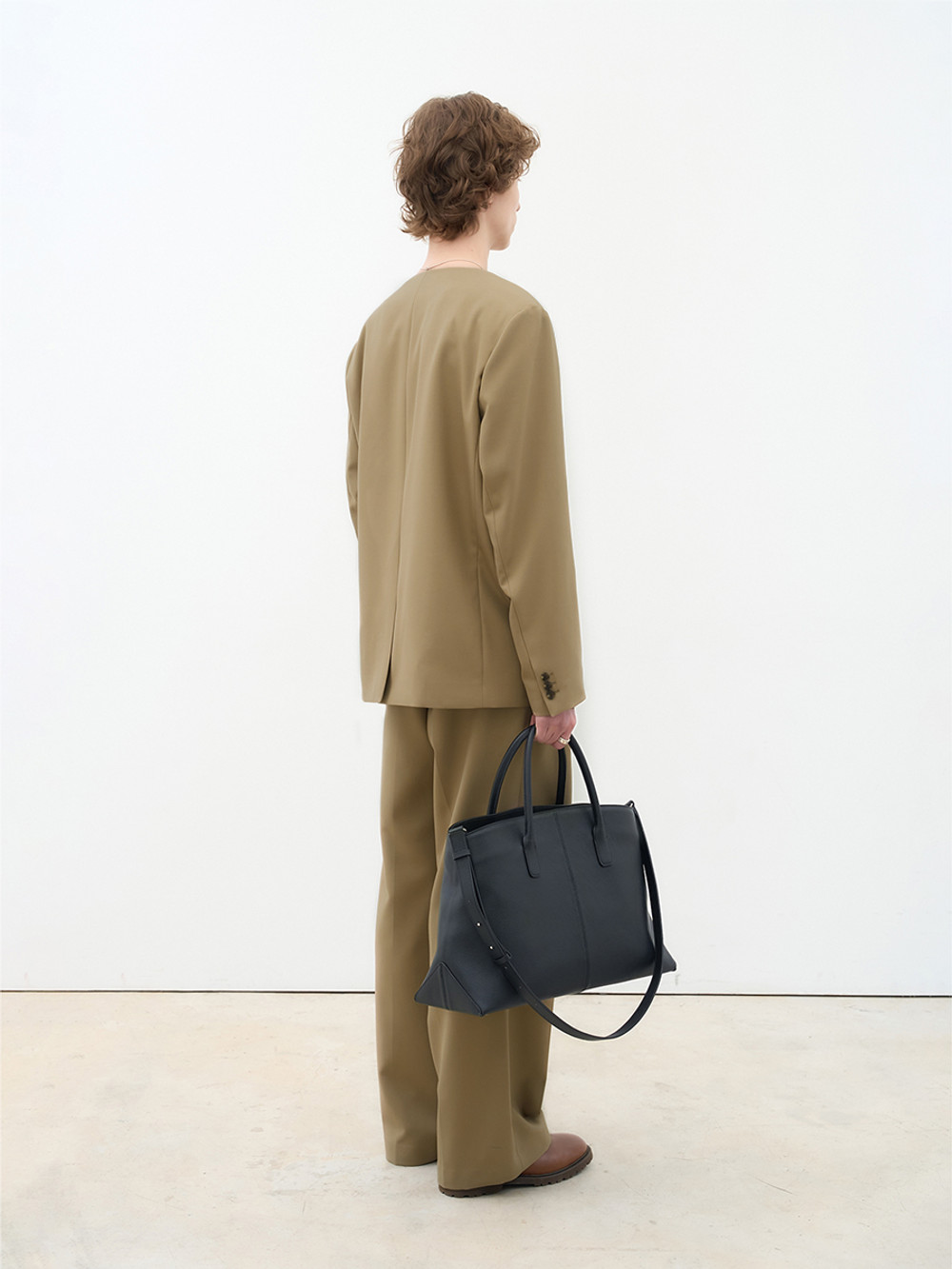 어린 시절 아버지의 트라우저를 연상케 하는 클래식한 무드의 파더 울 트라우저. 탄탄하고 밀도 높은 울 소재로 완성한 여유로운 와이드 핏 실루엣. 원턱과 핀턱 디테일을 적용해 풍성한 볼륨감과 자연스럽게 흐르는 드레이프 구현. 탈부착 가능한 체인 디테일과 데님 진스의 헤리티지를 차용한 레더 라벨을 더해 포멀함과 유연한 스타일링을 모두 아우르는 높은 활용도의 아이템.