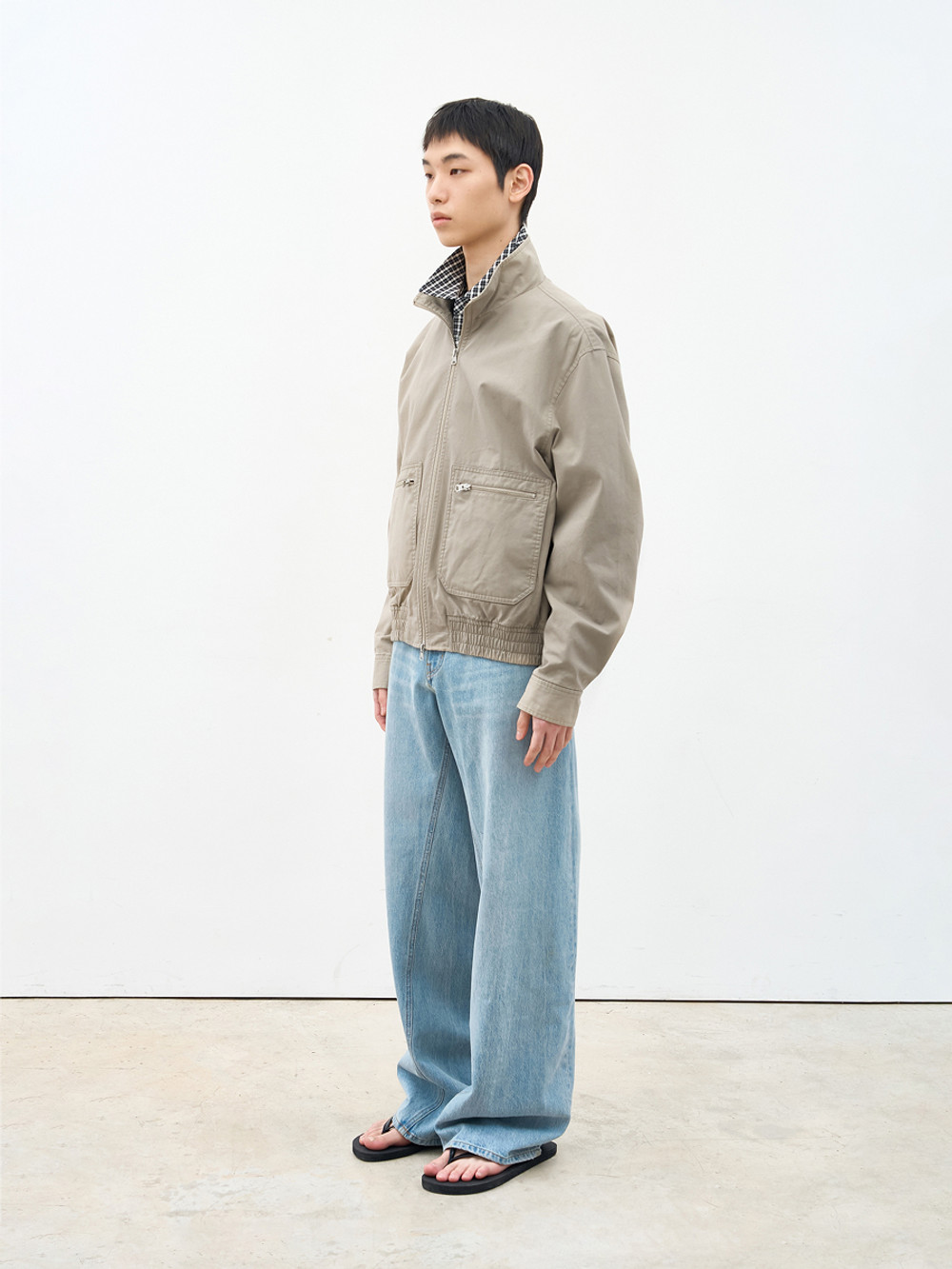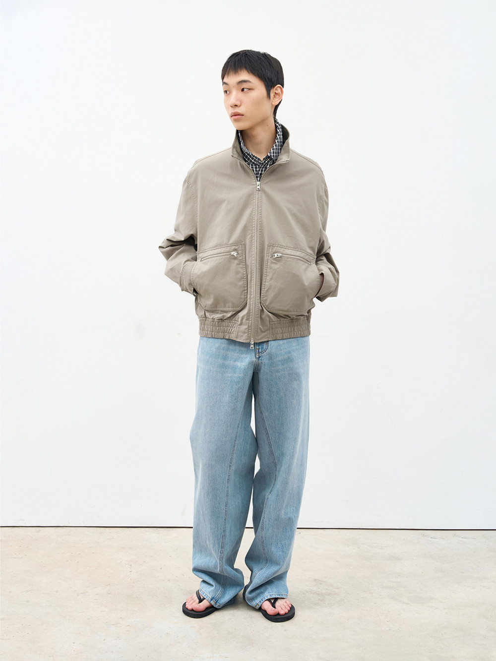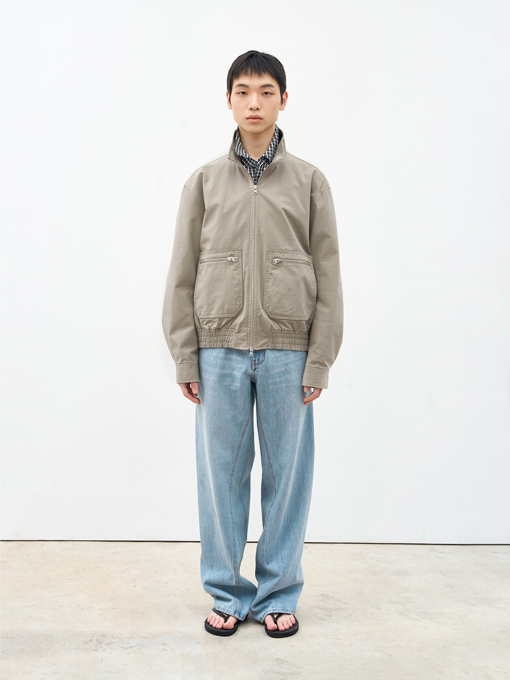 구조적이고 묵직한 분위기를 담아낸 집업 블루종. 바이오 워싱 공정을 거쳐 매끈한 터치감과 탄탄한 밀도감을 구현한 고밀도 코튼 소재. YKK 지퍼를 적용한 이중 구조의 프론트 포켓으로 실용성과 시각적 미학의 정교한 밸런스 완성. 짧은 기장과 여유로운 실루엣의 조화로 현대적인 스타일 감각을 선명하게 드러내는 매력적인 아이템.