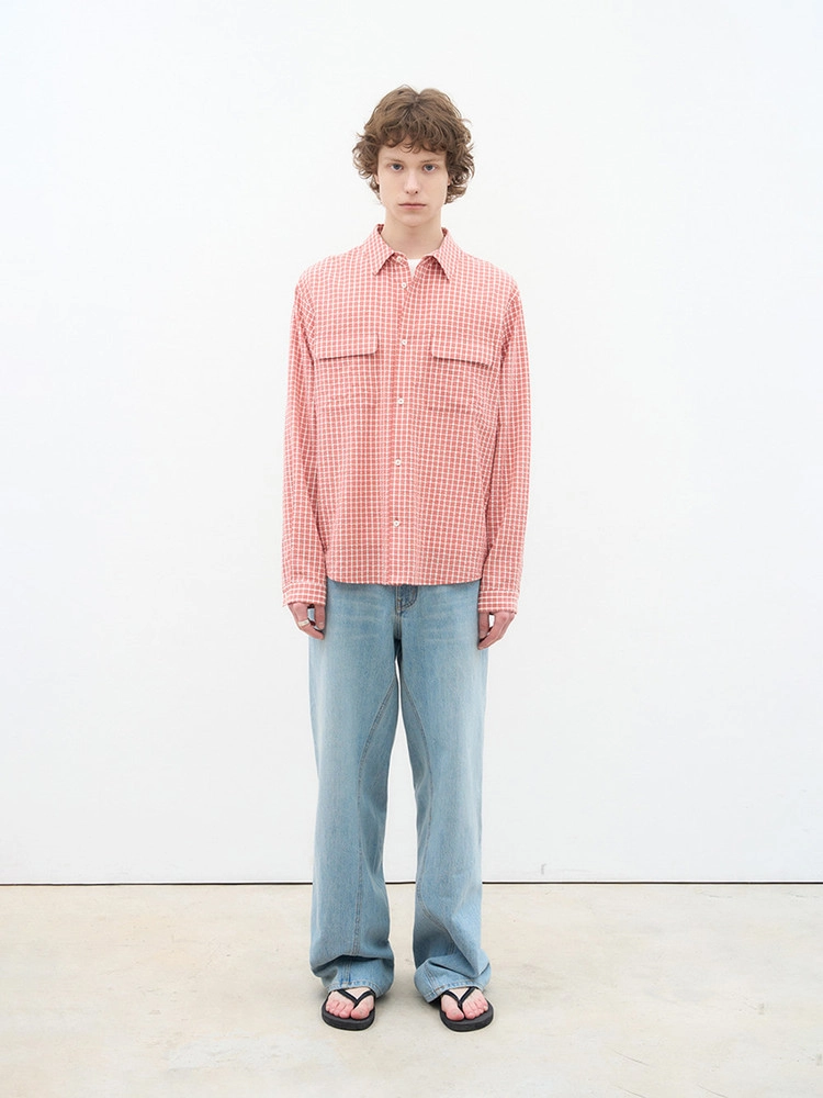 [AFTER PRAY] 깅엄 체크 네스티드 포켓 셔츠 레드