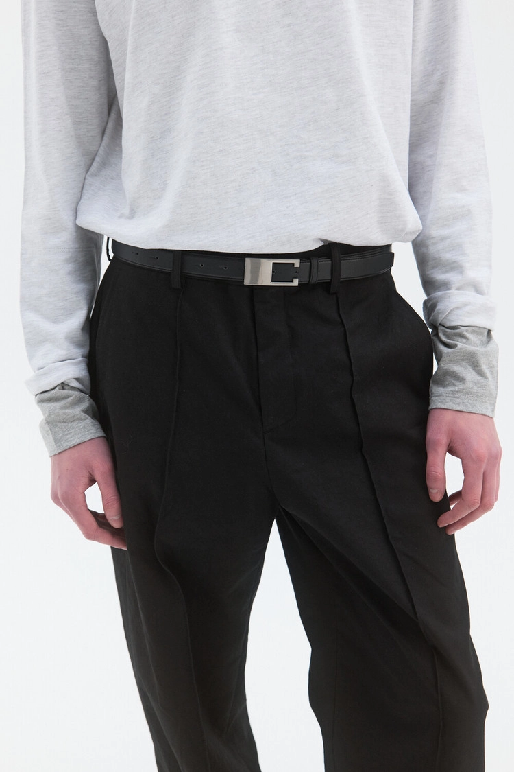 [WINDER] FRAME BUCKLE LEATHER BELT - BLACK