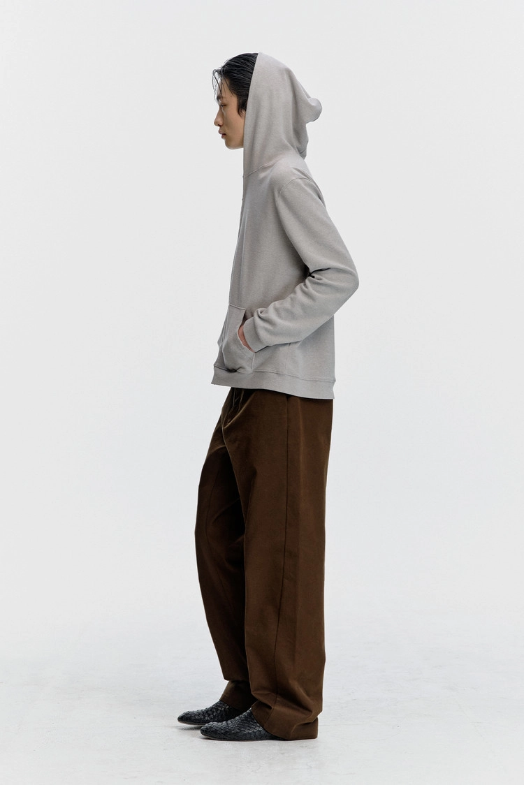 HAND-STITCHED SLIM HOODED ZIP-UP GRAY