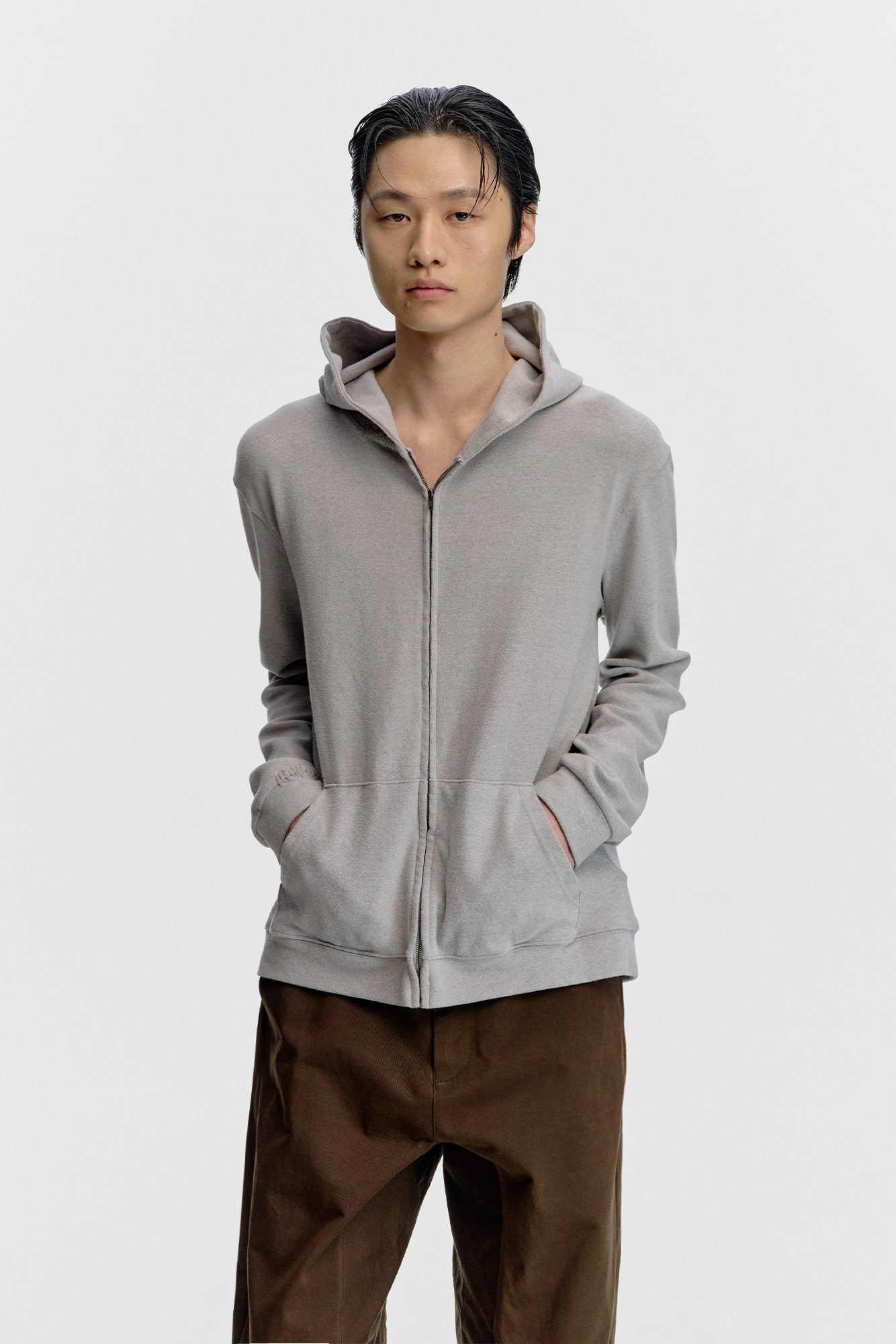 [SURFACE EDITION] HAND-STITCHED SLIM HOODED ZIP-UP GRAY