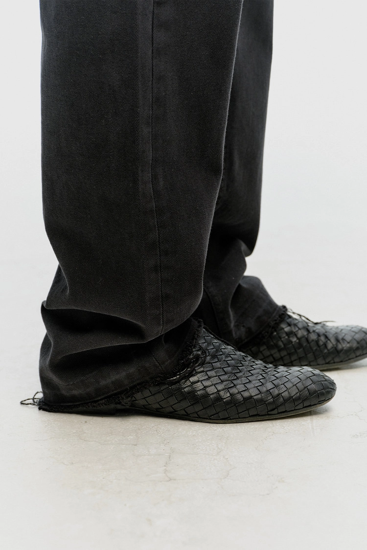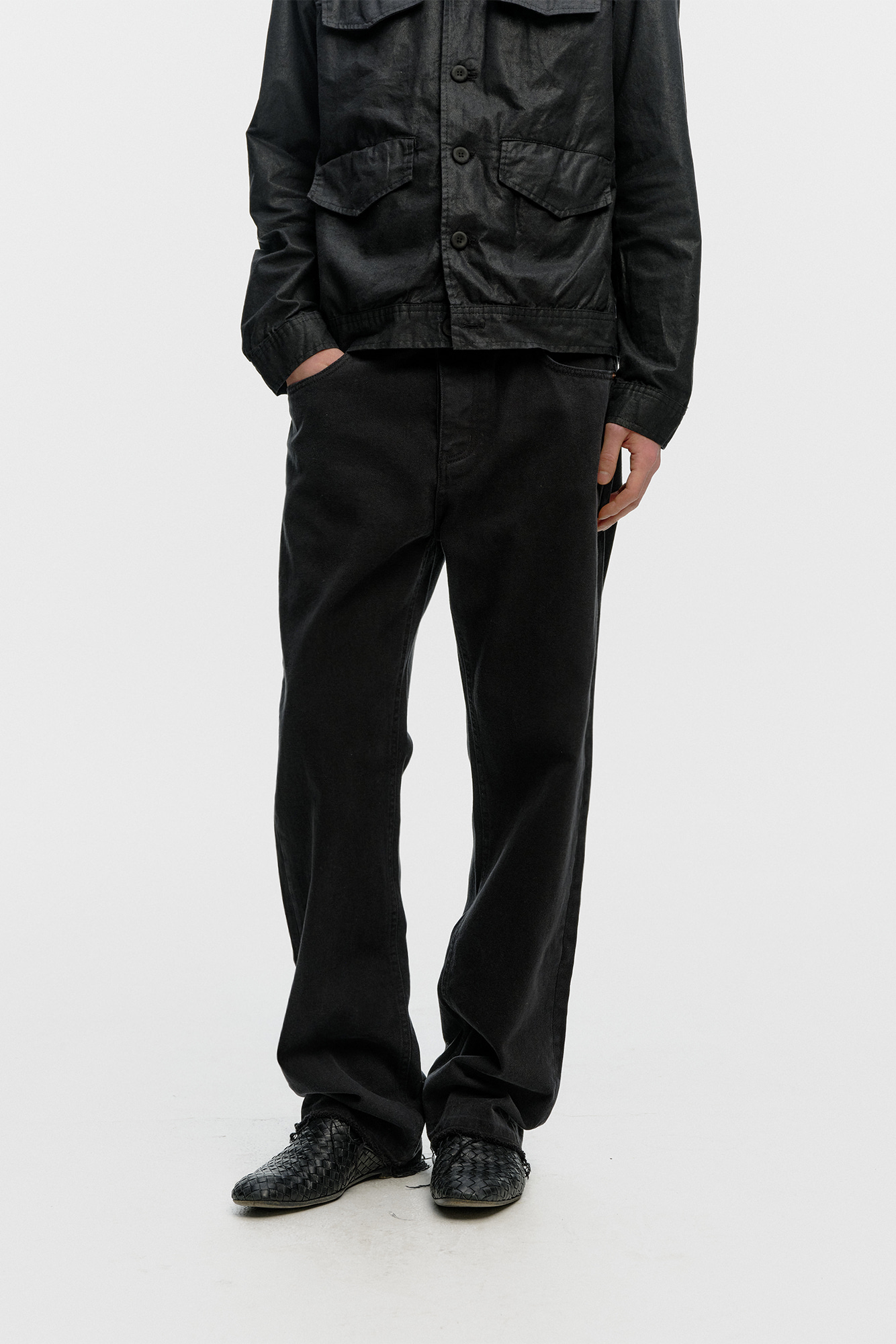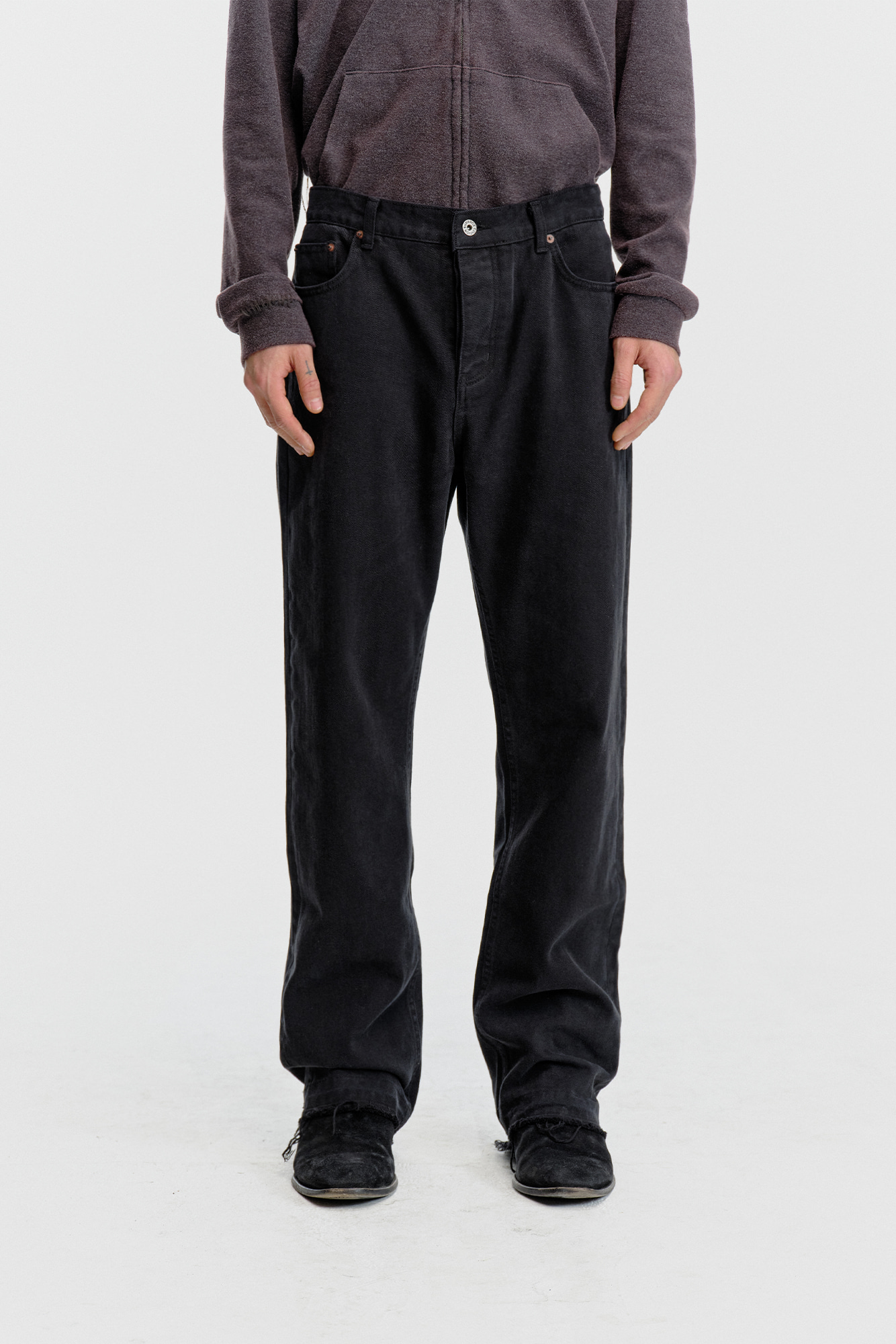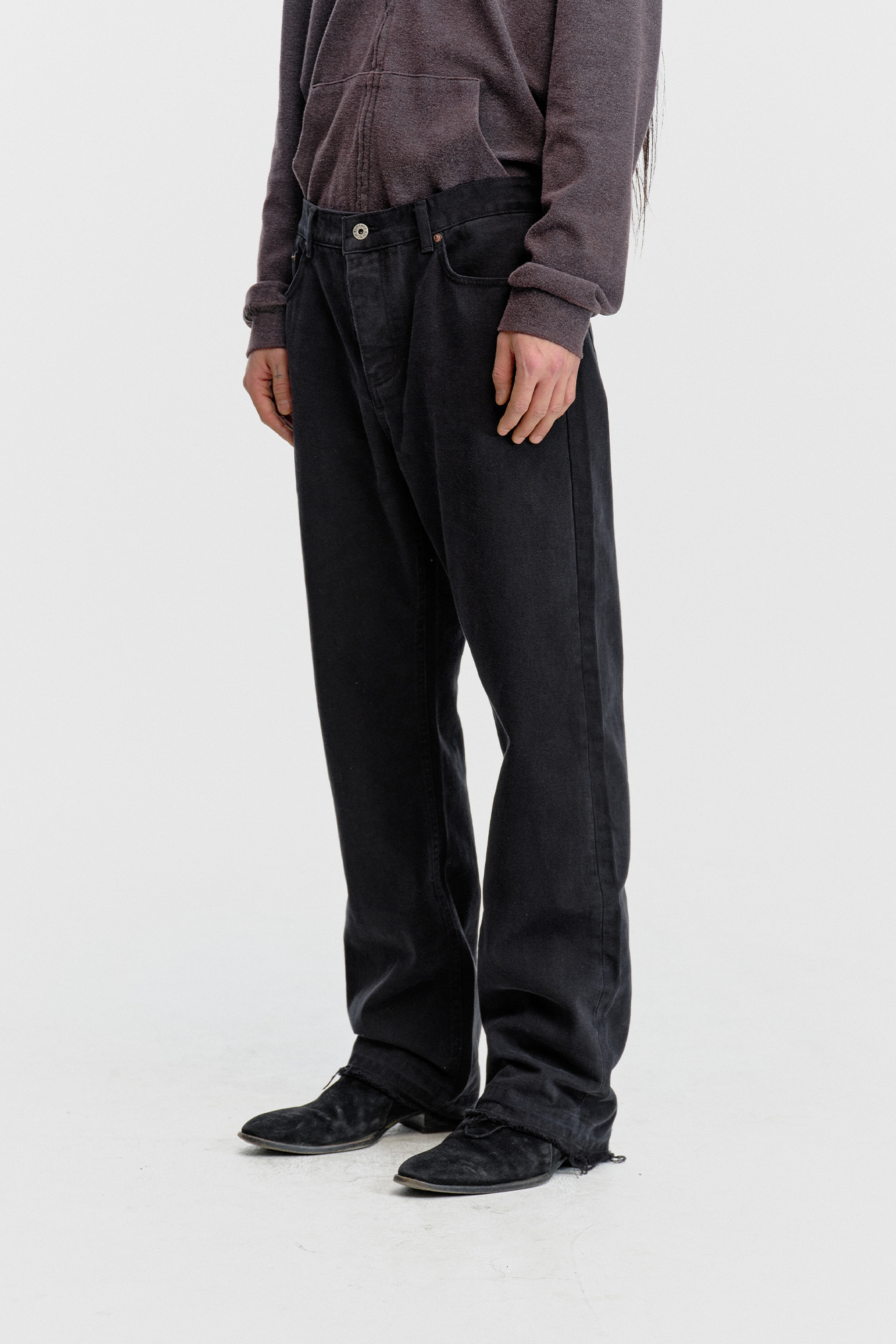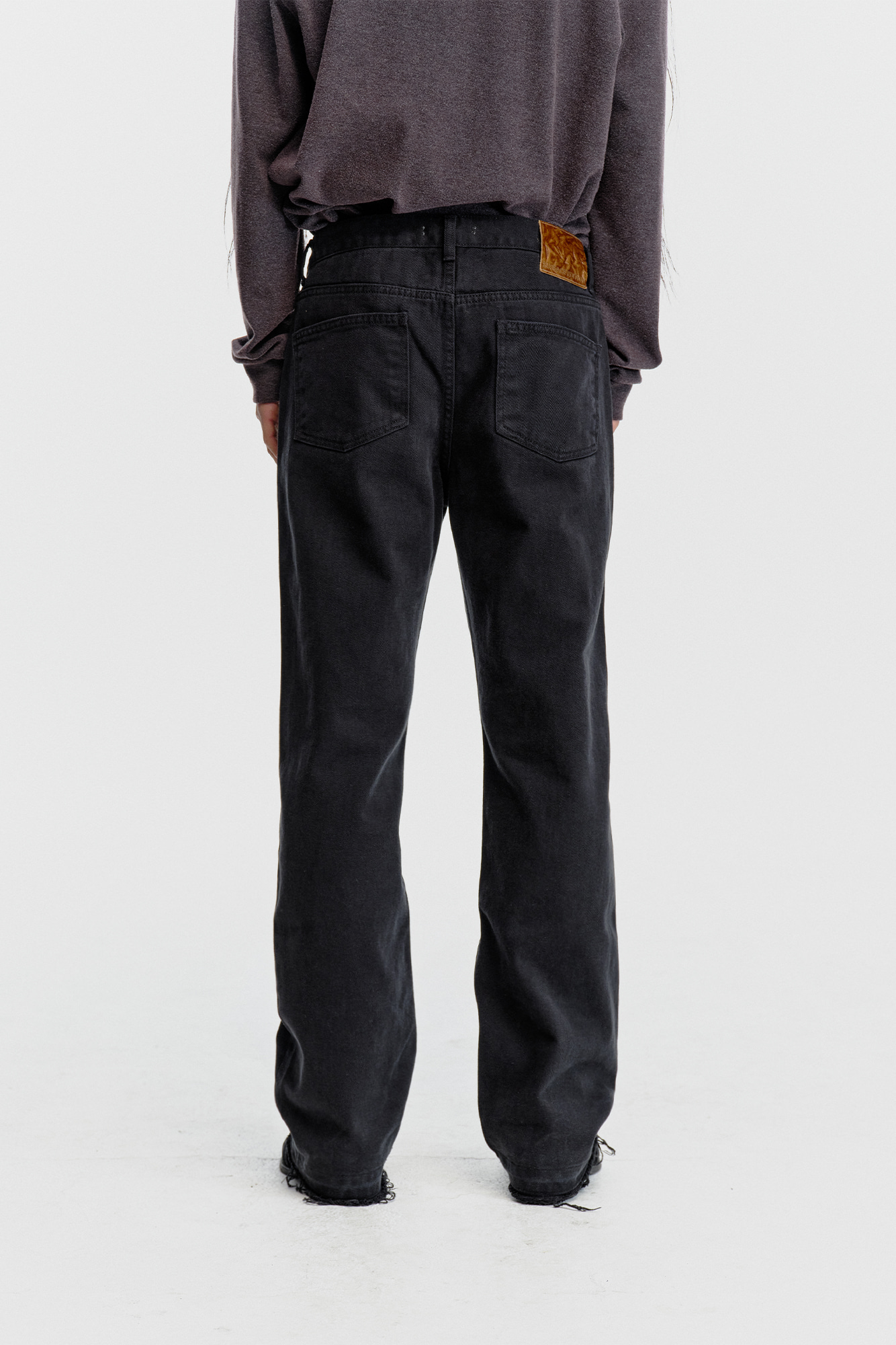 [SURFACE EDITION] TORN STRAIGHT COTTON TWILL PANTS BLACK