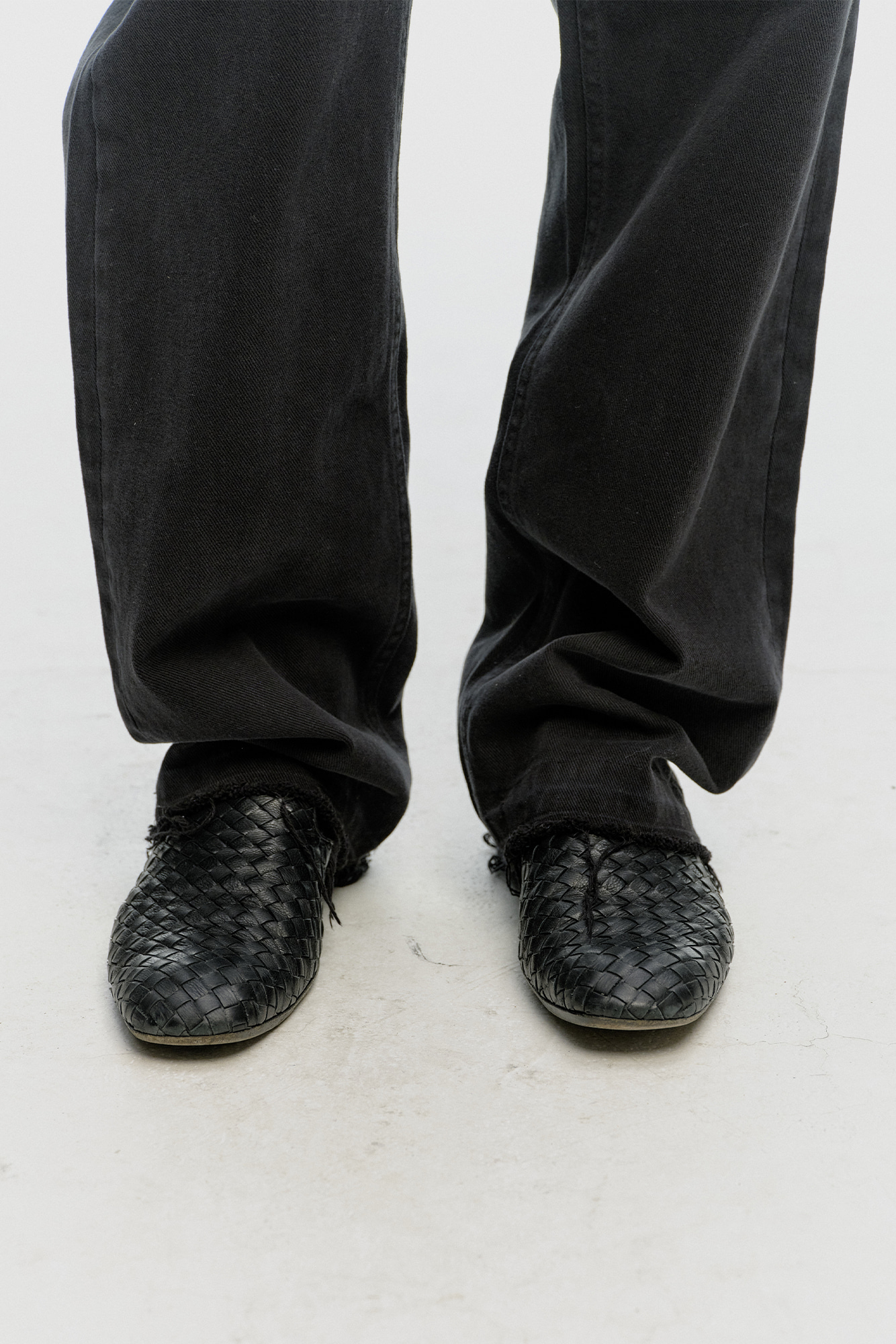 밑단은 해체적인 디테일로 마감해 시간이 흐른 듯한 빈티지한 외관을 연출했으며, 후면에는 크링클 가공된 소가죽 라벨 탭을 더해 절제된 포인트를 완성했습니다.
