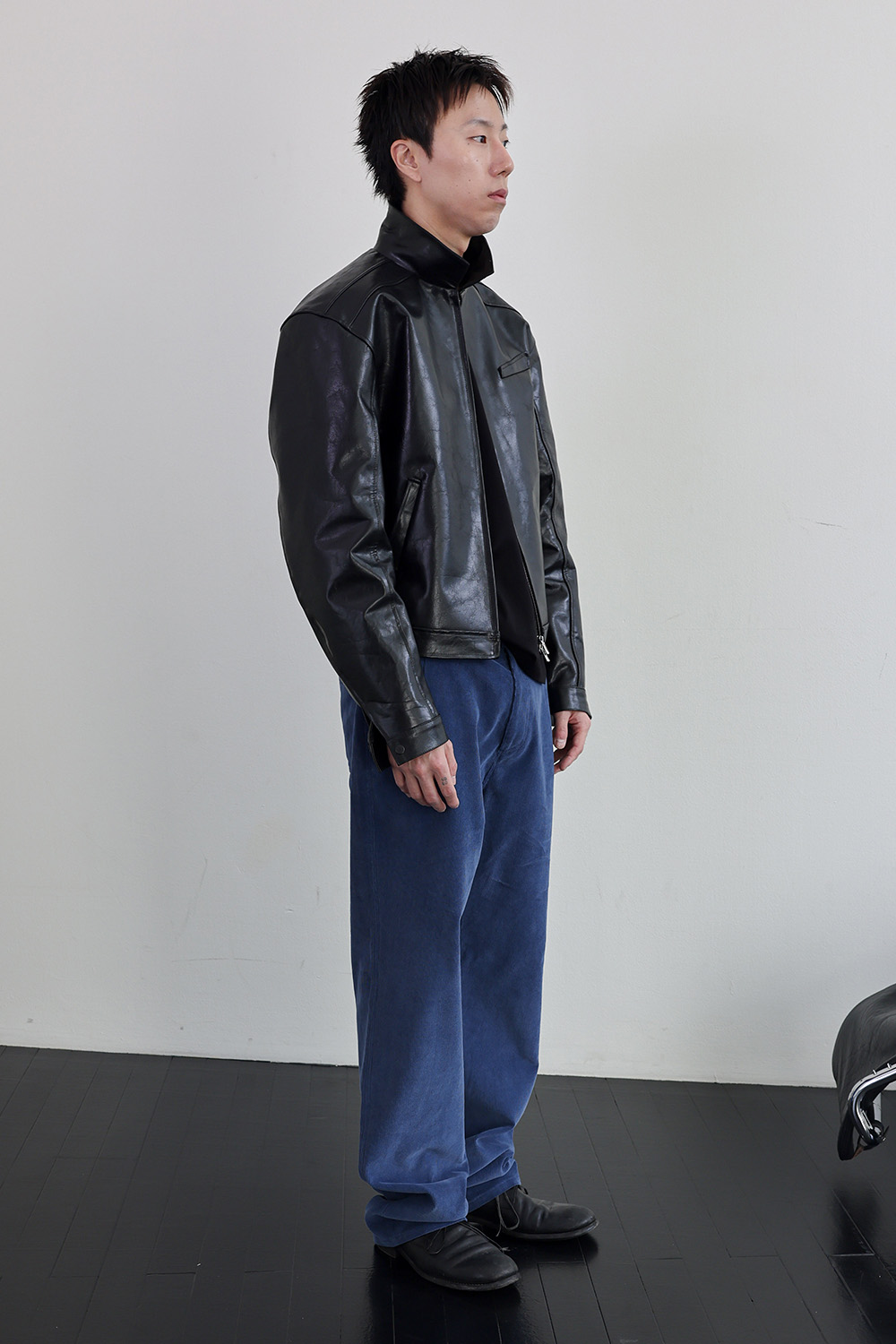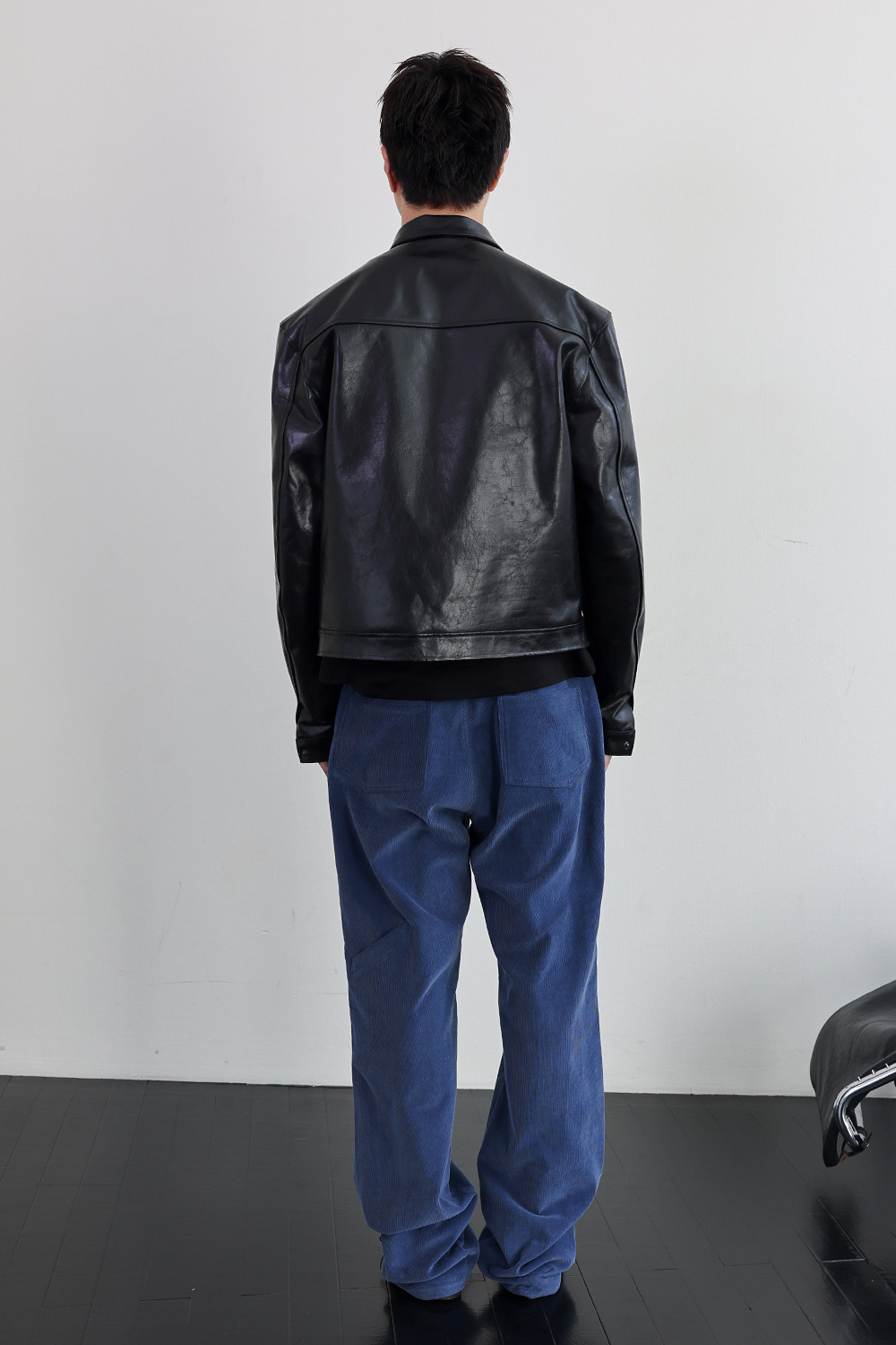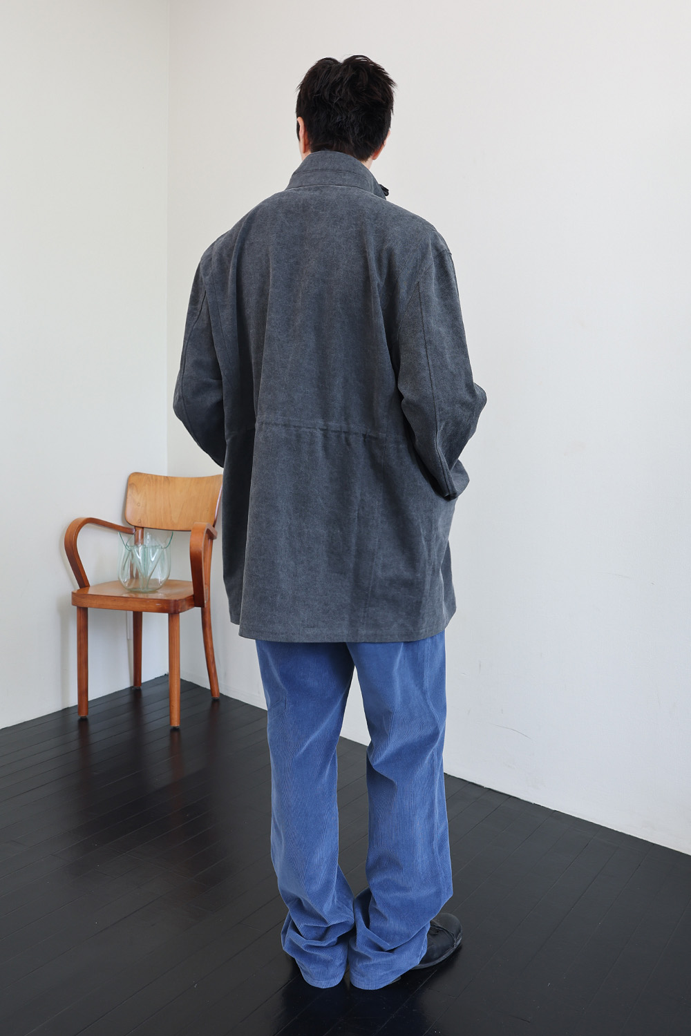 뒤판 종아리 부근에 위치한 포인트 포켓 디테일은 위트 있는 조형미를 보여줍니다.