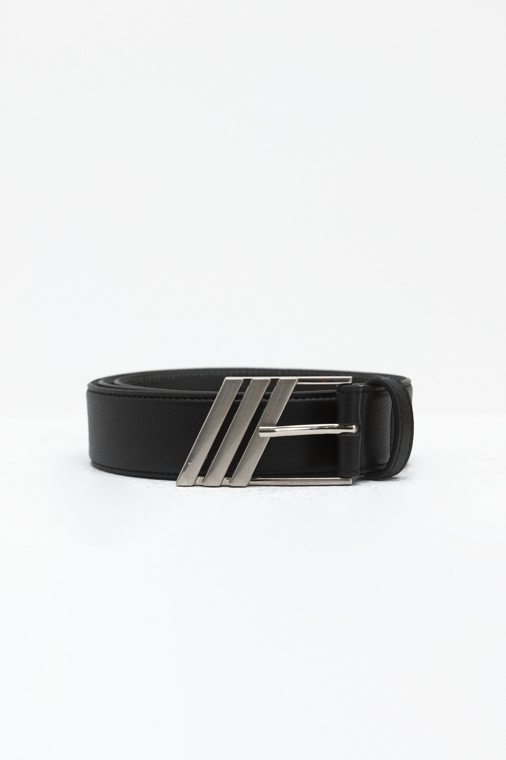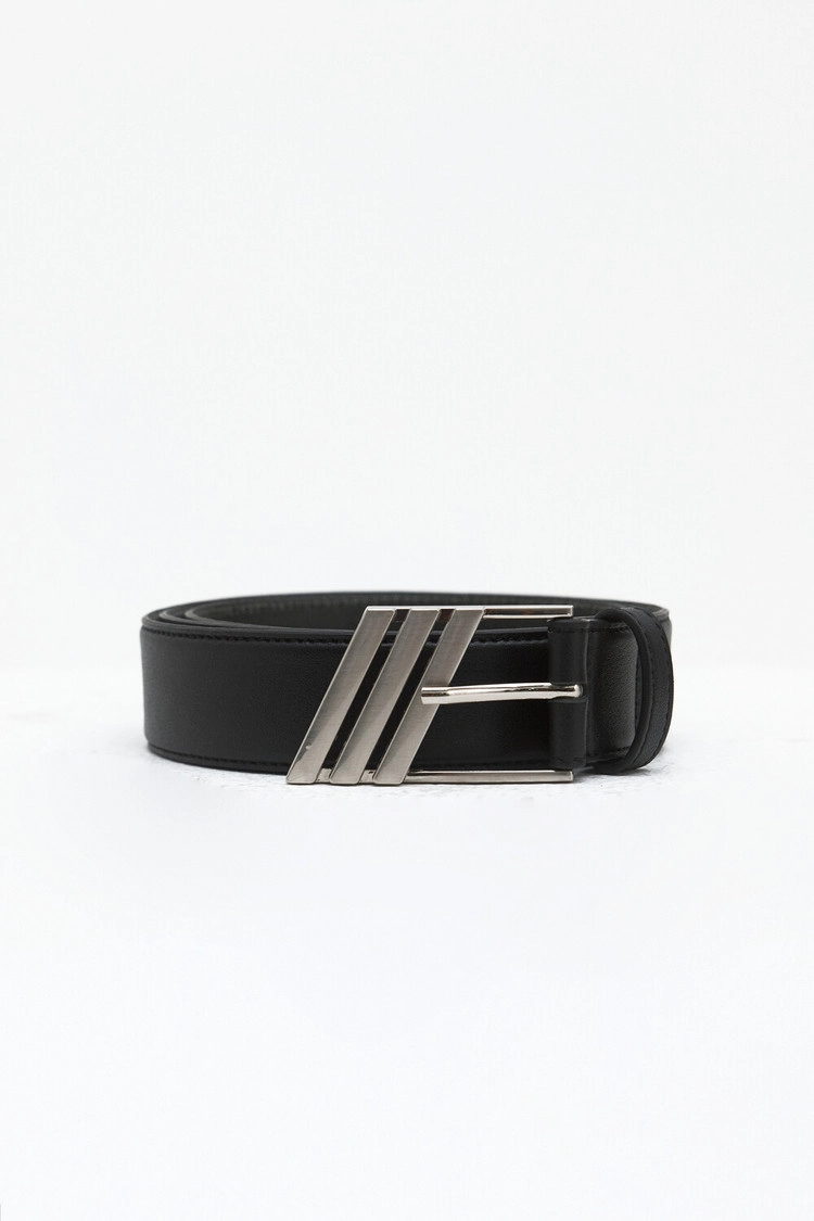 DIA BUCKLE LEATHER BELT - BLACK