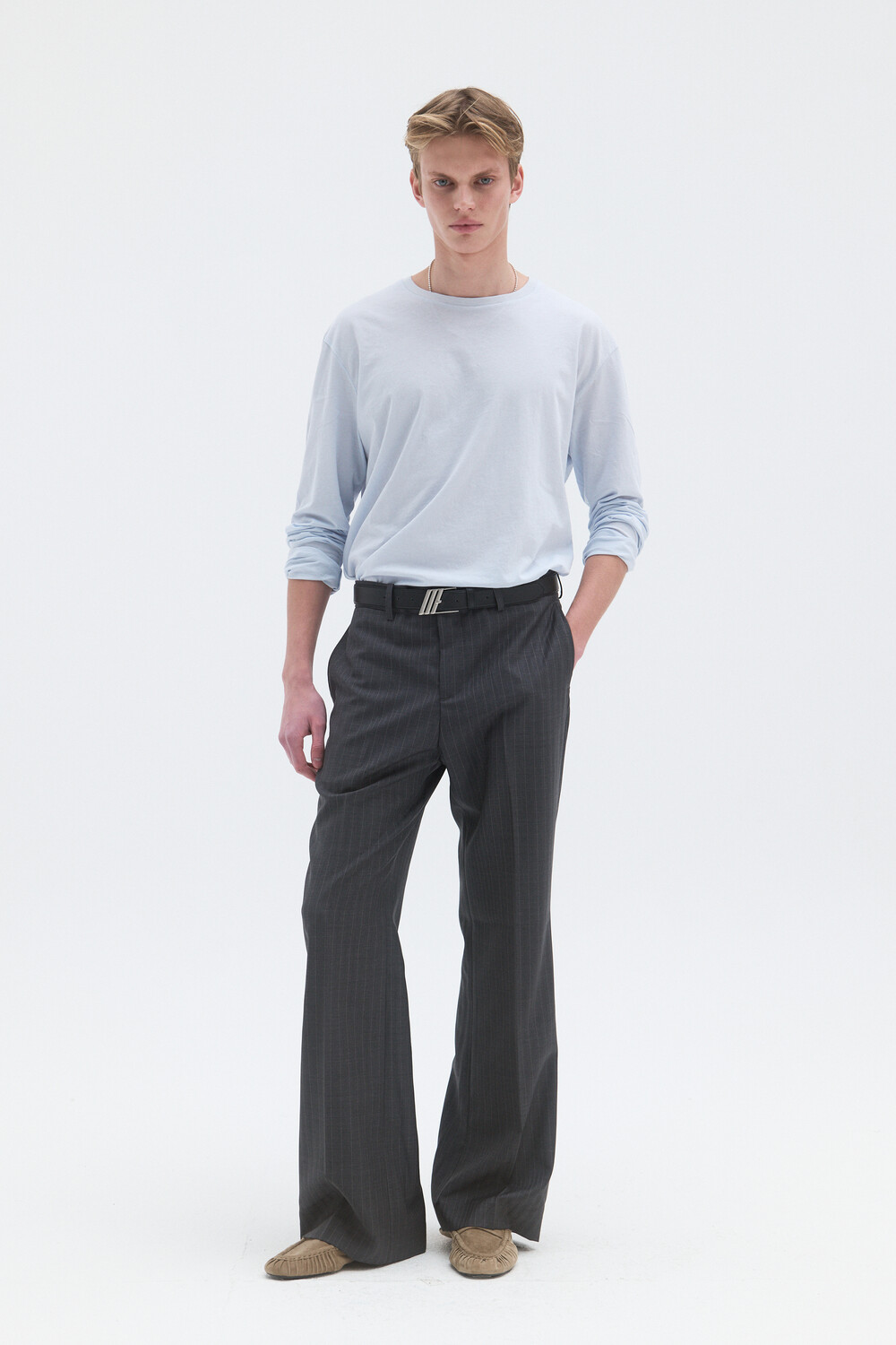 -브러쉬텍스쳐 가공을 한 버클로 제작된 벨트