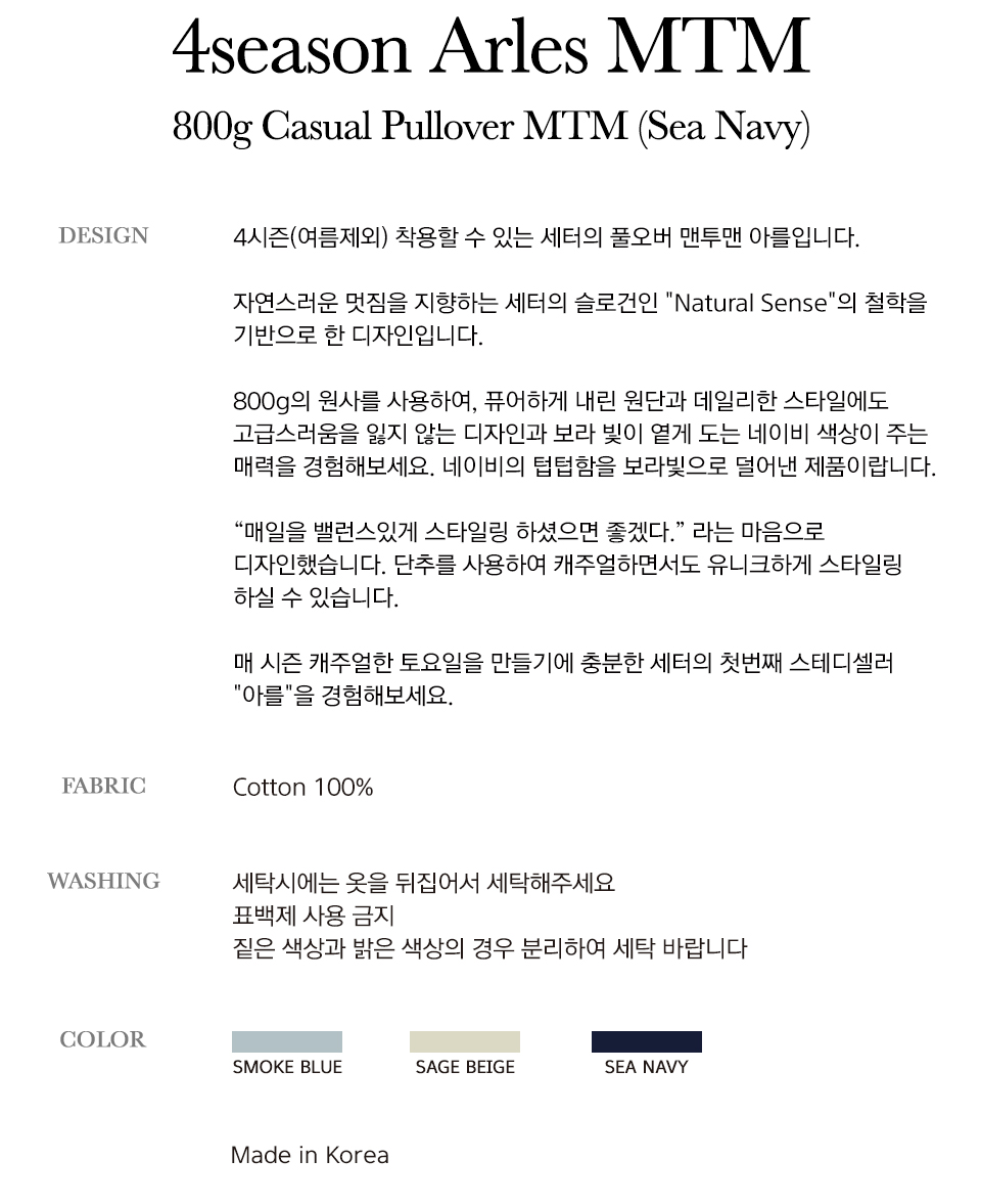 4시즌(여름제외) 착용할 수 있는 세터의 풀오버 맨투맨 아를입니다.