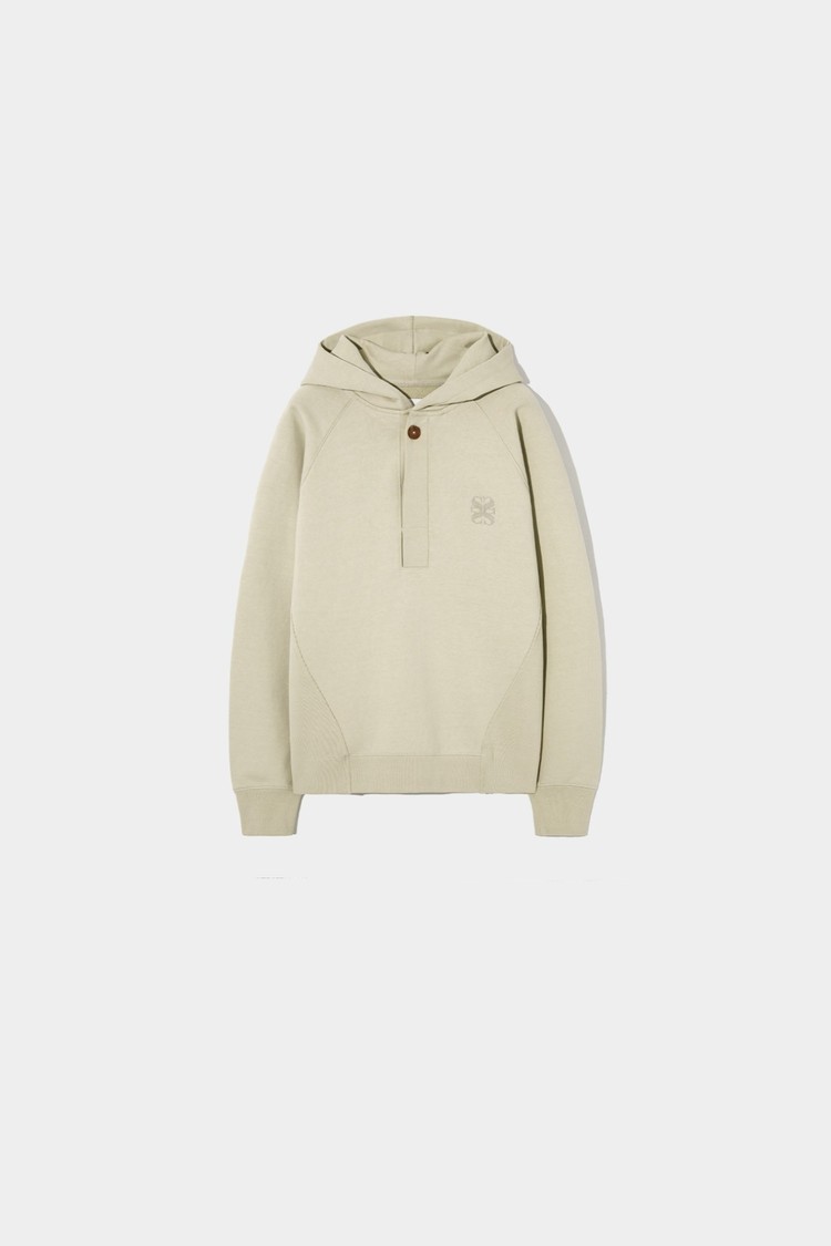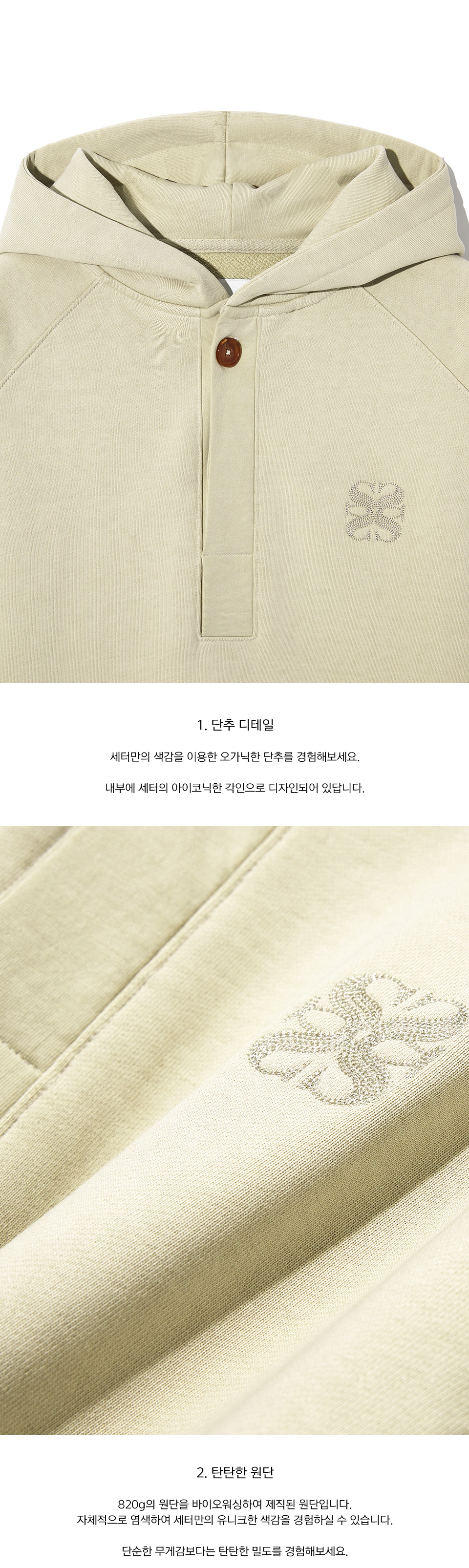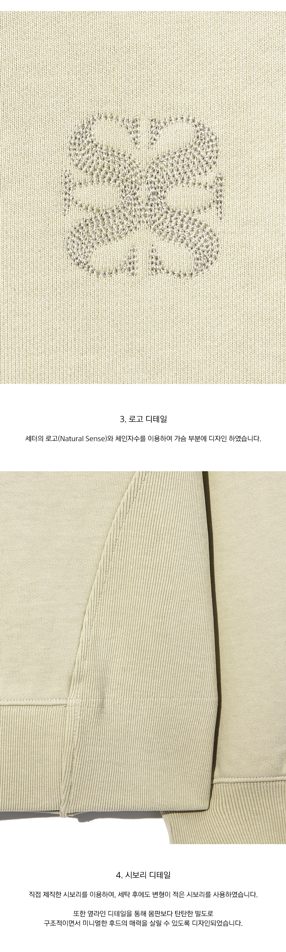 자연스러운 멋짐을 지향하는 세터의 슬로건인 "Natural Sense"의 철학을 기반으로 한 디자인으로, 미니멀한 절개를 바탕으로 구조적으로 만든 후드 풀오버입니다.