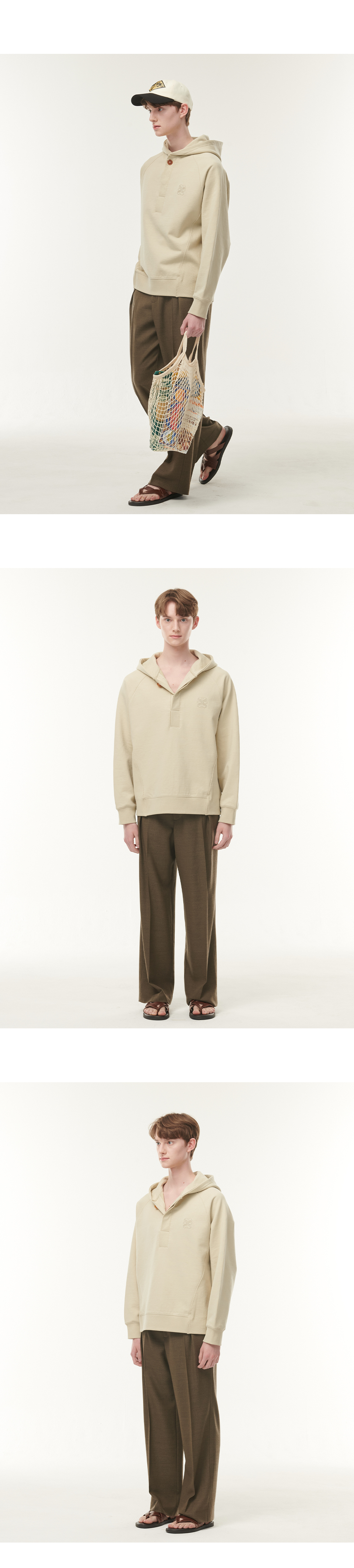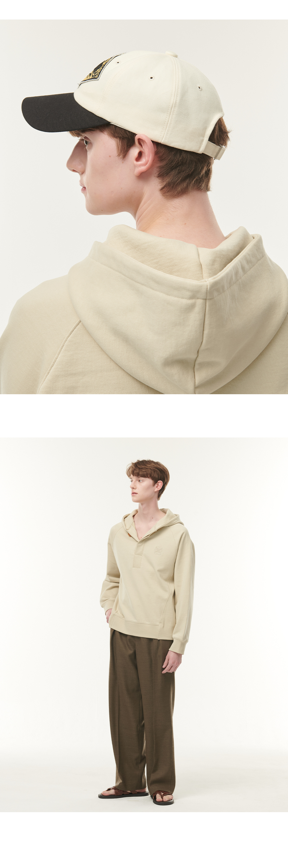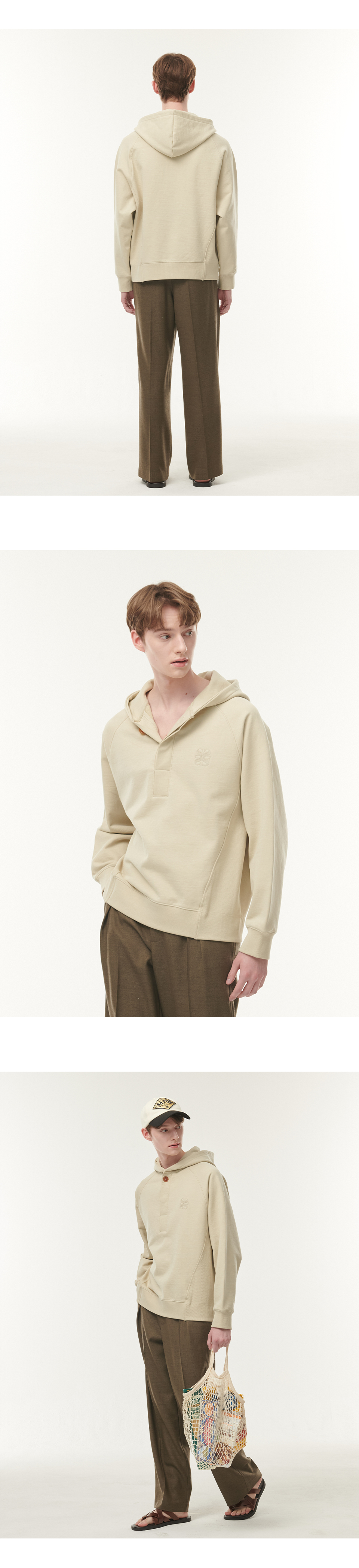 자연스러운 멋짐을 지향하는 세터의 슬로건인 "Natural Sense"의 철학을 기반으로 한 디자인으로, 미니멀한 절개를 바탕으로 구조적으로 만든 후드 풀오버입니다.