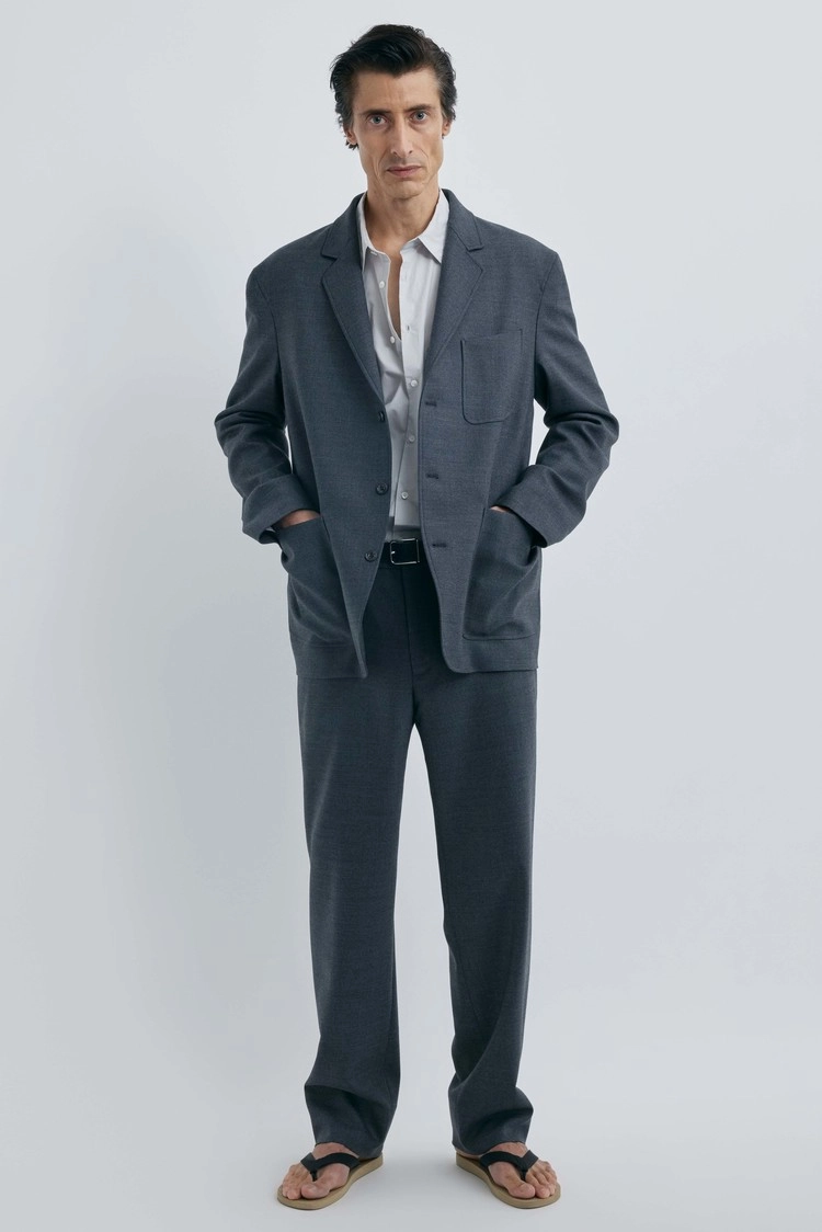 클래식한 스포츠 자켓을 현대적인 감각으로 풀어낸 아이템입니다. 어깨 패드를 없애 몸의 곡선을 따라 자연스럽게 흐르는 라인이 특징이며, 정장보다는 편안하고 캐주얼 자켓보다는 갖춰 입은 듯한 '세미 루즈 핏'을 선사합니다.